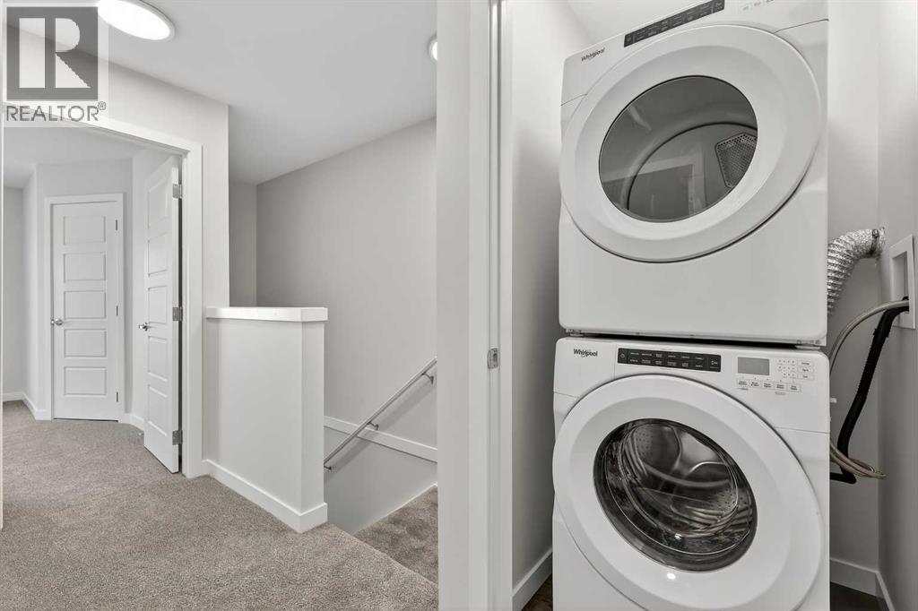 OPEN HOUSE on Saturday AND Sunday from 12-5pm. Please go to the Show Home located at 96 Creekside Drive SW for access.StreetSide proudly presents this exceptionally popular interior-unit townhome, where expansive living areas meet modern comforts and sophisticated finishes. The thoughtfully designed floorplan features three spacious upper-level bedrooms and two and a half well-appointed bathrooms, complemented by a versatile lower-level den perfect for a home office or quiet retreat. The heart of the home is an inviting open-concept main floor, anchored by a large gourmet kitchen featuring a functional breakfast bar for casual dining. This bright living space transitions seamlessly to a private balcony, offering a perfect setting for outdoor relaxation. The interior showcases high end craftsmanship, including modern dark slab-style cabinetry with a full bank of drawers for maximum storage. The kitchen is further elevated by polished white quartz countertops and a full suite of premium stainless steel appliances. Durable luxury vinyl flooring runs throughout the primary living areas, while the stairs and upper level are finished with plush carpet over an 8lb underlay for superior comfort. Additional conveniences include an attached double car garage, professionally maintained landscaping, and a lifestyle defined by maintenance free living. Life at Sirocco Gate East in Southwest Calgary is about more than just living—it’s about thriving. Imagine having a picturesque central green space at your doorstep, offering opportunities for both tranquil reflection and vibrant community events. Residents enjoy the luxury of sophisticated townhome living with the Rocky Mountains as a backdrop and easy access to both Stoney Trail and Macleod Trail. With daily essentials located in nearby shopping centers, this home offers the perfect blend of scenic serenity and urban convenience. (id:63190)