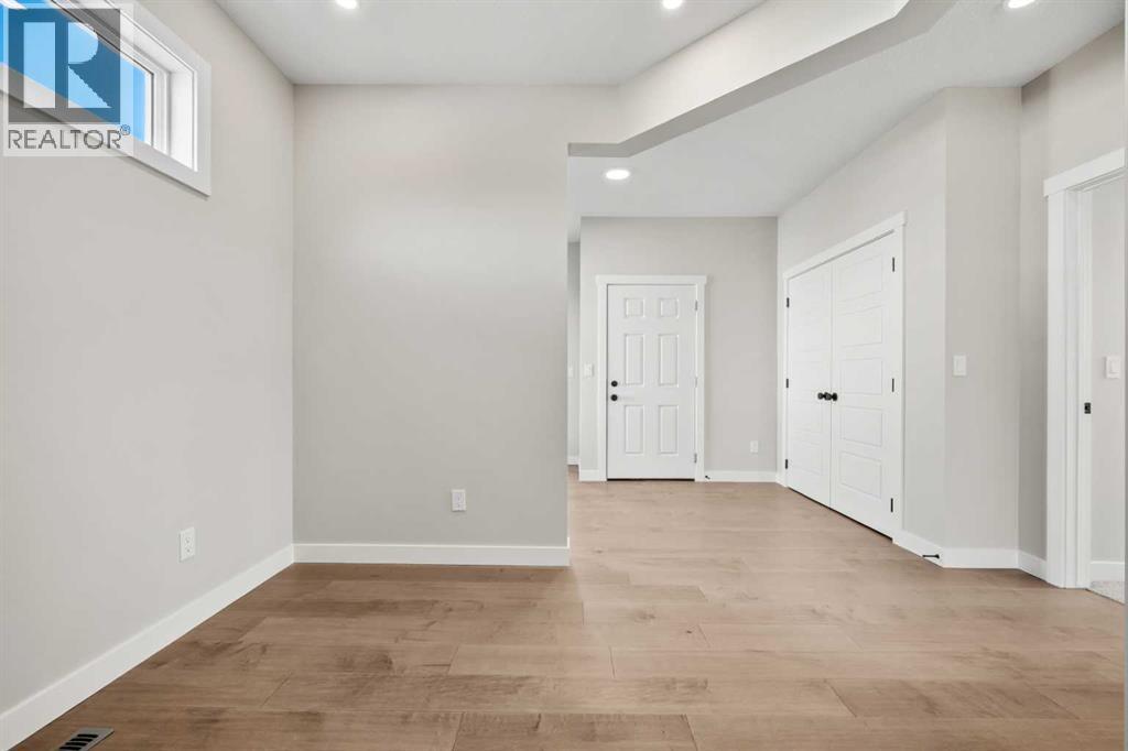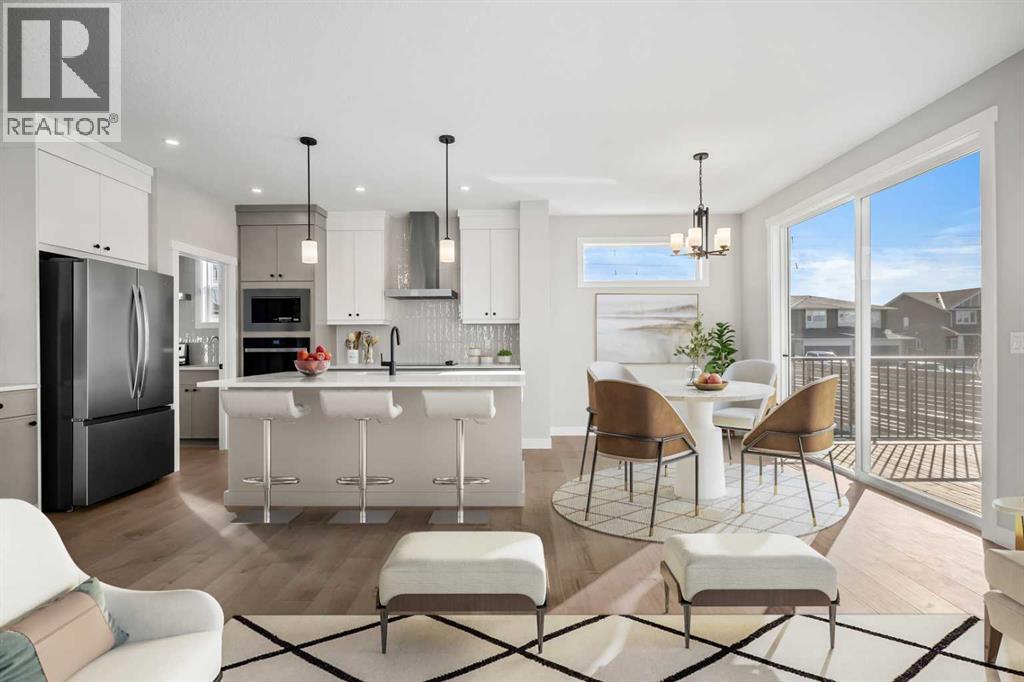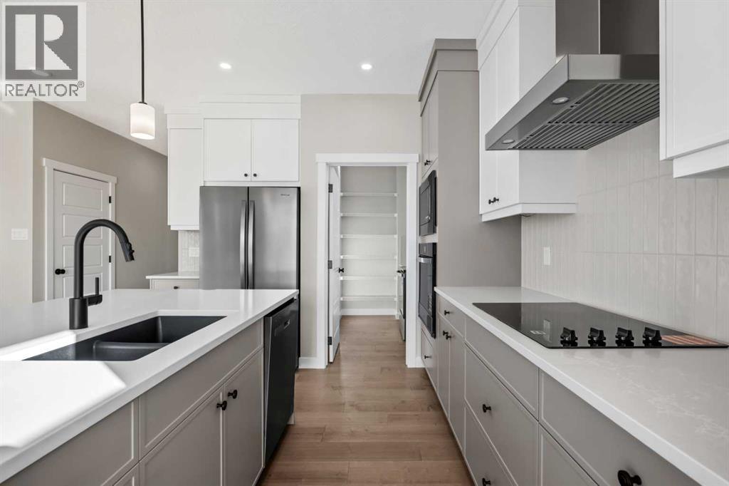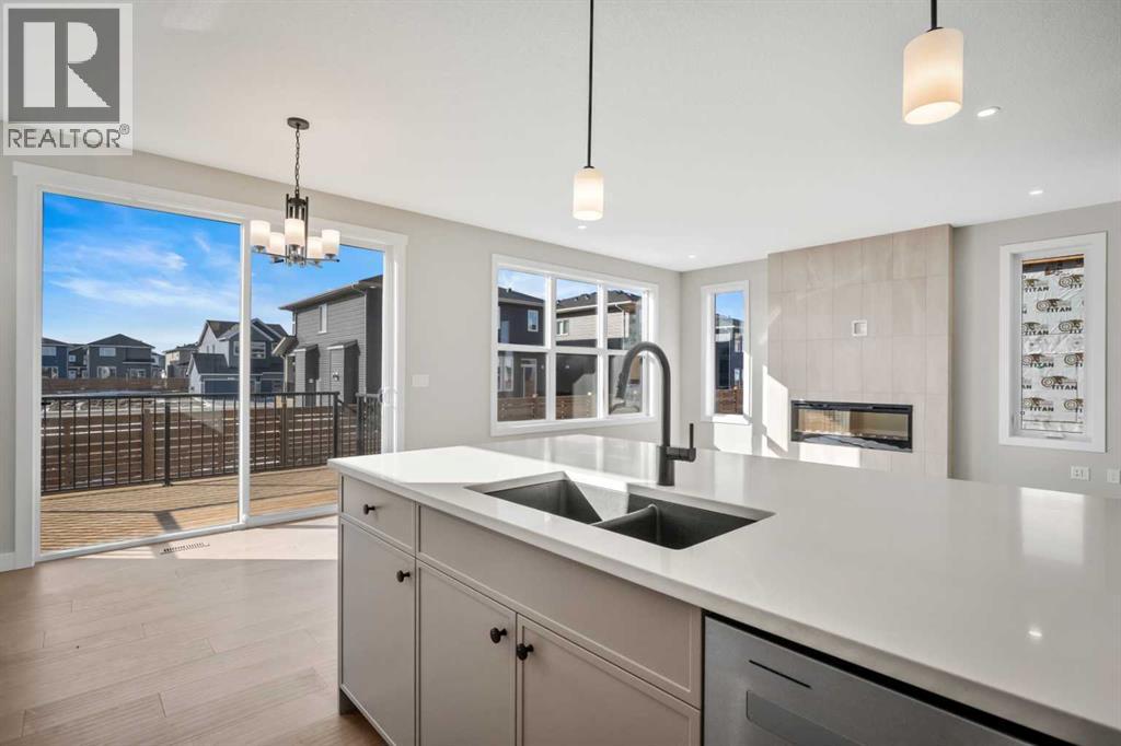 Welcome to 151 Dawson Wharf Mount, a beautifully designed two-storey home offering over 2,680 square feet of thoughtfully planned living space in the growing community of Dawson’s Landing in Chestermere. Built in 2025, this newly constructed residence combines modern design, generous space, and practical features that support comfortable family living and entertaining. Situated on a 46-foot lot, the home features five bedrooms, four bathrooms, and a triple attached garage, providing plenty of room for both daily life and hosting guests.The main floor welcomes you with an open and functional layout designed for both everyday comfort and gatherings. A spacious great room anchored by an electric fireplace creates a warm and inviting focal point, while large windows allow natural light to fill the living space. The kitchen is thoughtfully designed for cooking and entertaining, featuring built-in appliances and a separate spice kitchen that provides additional preparation space and keeps the main kitchen organized. A bedroom and full bathroom on the main level add flexibility, making it ideal for guests, extended family, or a home office setup.Upstairs, the home continues to impress with four additional bedrooms and a well-planned layout that balances privacy and shared living areas. The primary bedroom offers a relaxing retreat complete with a spacious walk-in closet and a luxurious five-piece ensuite featuring a glass and tile shower. The upper floor also includes a central bonus room that can be used as a media space, playroom, or additional family lounge. A convenient laundry room with sink adds functionality to the upper level and simplifies everyday routines.The home also includes several practical features that add long-term value and convenience. A side entrance and basement rough-ins provide excellent potential for future development, allowing the next owner to customize additional living space if desired. Outside, a rear deck with stairs to grade creates a comfortable setting for outdoor dining or relaxing during the warmer months. The triple attached garage and ample driveway parking ensure there is plenty of space for vehicles and storage.Living in Dawson’s Landing offers the opportunity to enjoy a welcoming and expanding community in Chestermere. The neighborhood features parks and green spaces and is just a short drive from the amenities of Chestermere Lake, schools, shopping, and everyday services. Residents benefit from the peaceful feel of a newer community while still maintaining convenient access to Calgary and surrounding areas, making Dawson’s Landing an attractive place to call home for families and professionals alike. Book your private showing today! (id:63190)