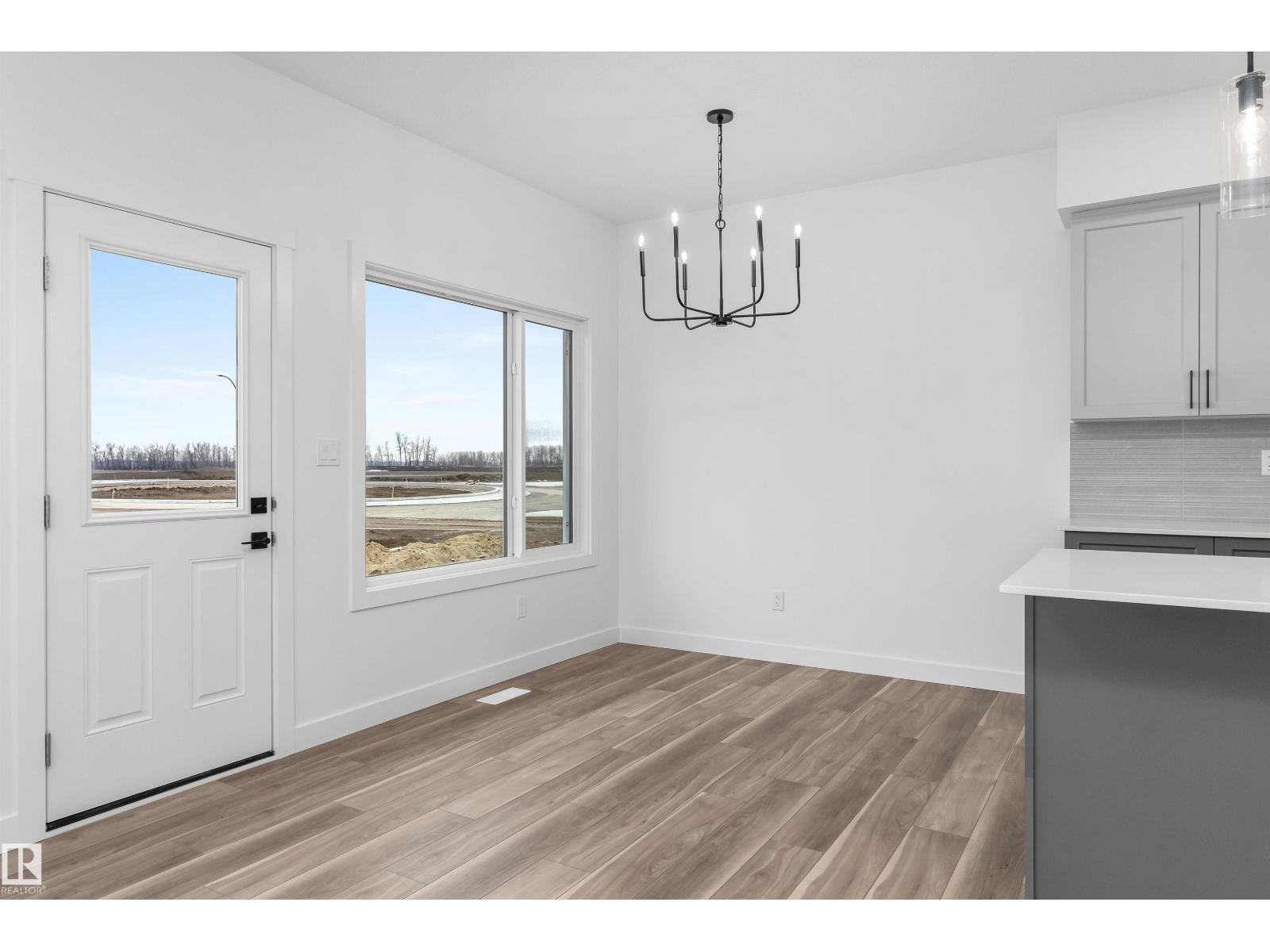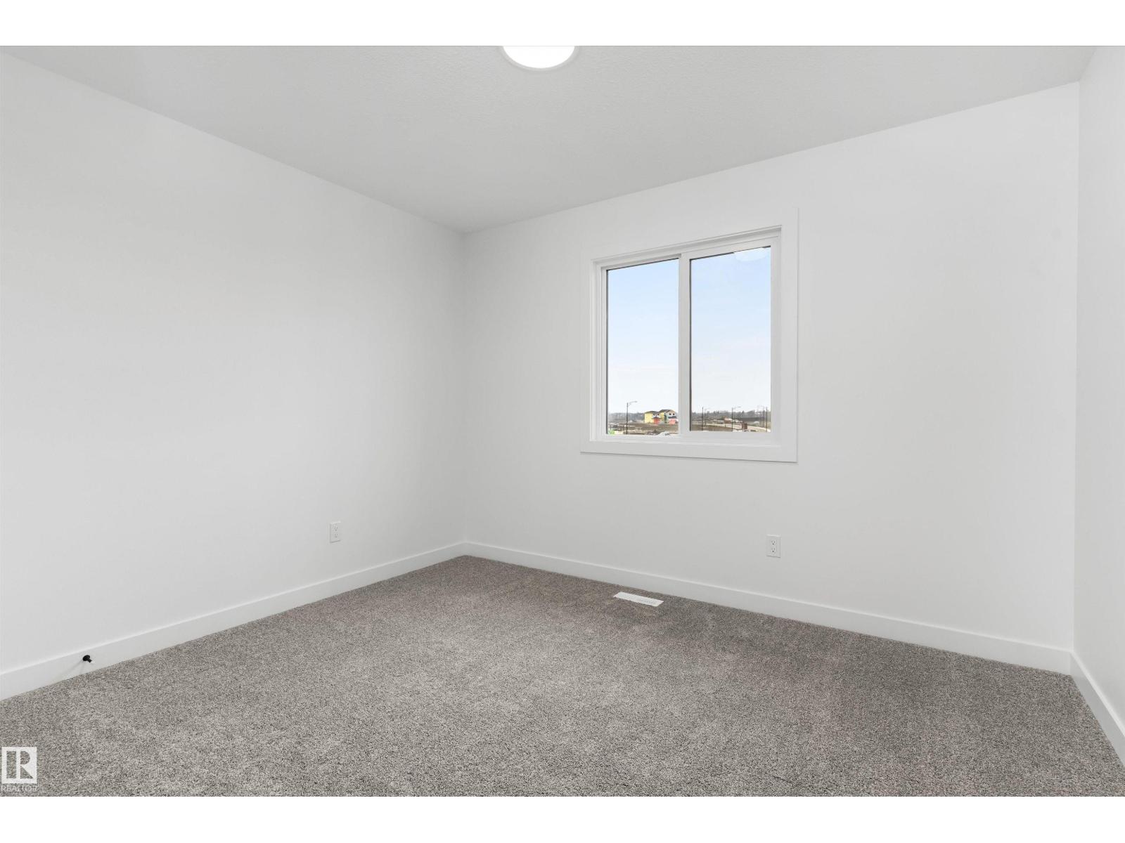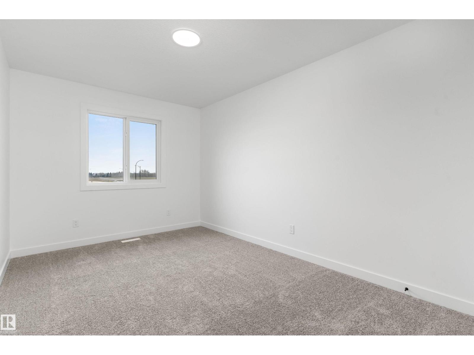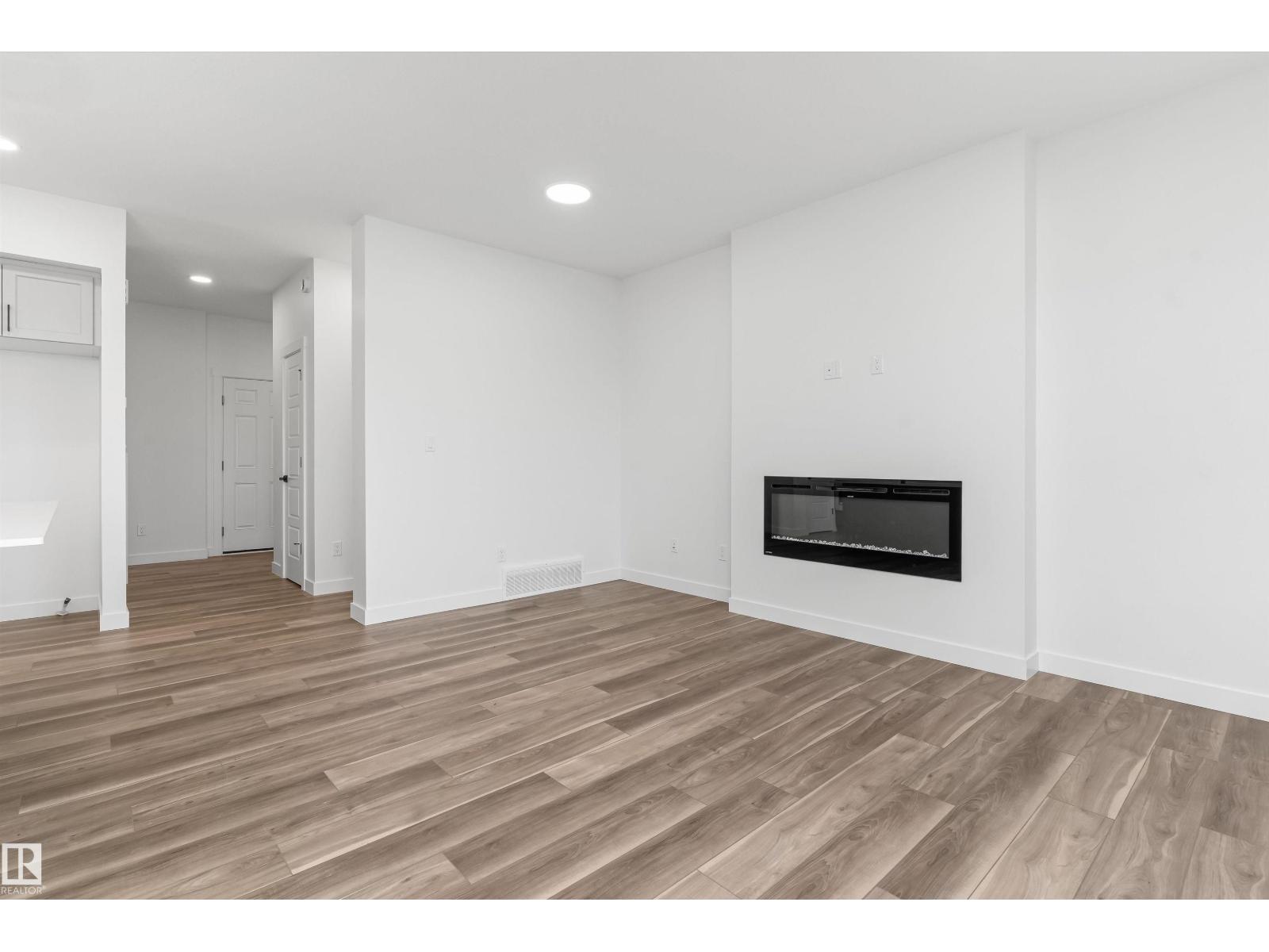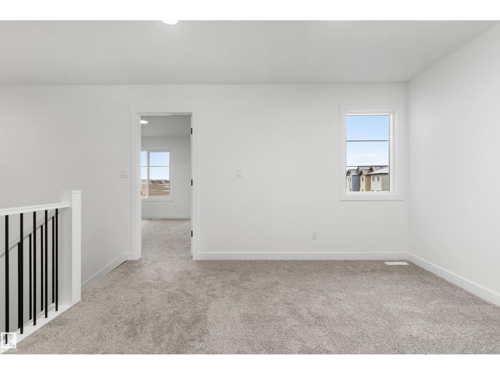Built by Sterling Homes, this front-attached home in Rivers Edge offers bright, modern living in a nature-inspired west Edmonton community. Triple pane windows and 9’ ceilings create an airy main floor that features a welcoming foyer and an open kitchen with quartz counters, a large island, built-in microwave, chimney hood fan, full-height backsplash, and a corner pantry. The great room includes an electric fireplace and large rear windows, with a garden door leading to the backyard. A half bath completes the main level. Upstairs, the primary suite offers a walk-in closet with a window and a 4-piece ensuite with double sinks and a glass-door shower. A bonus room, full bath, upper-floor laundry, and two additional bedrooms complete the layout. With luxury vinyl plank flooring, upgraded railings, a separate side entrance, a double garage with floor drain, and basement rough-ins, this home blends comfort and convenience in a growing riverside neighbourhood. (id:63190)