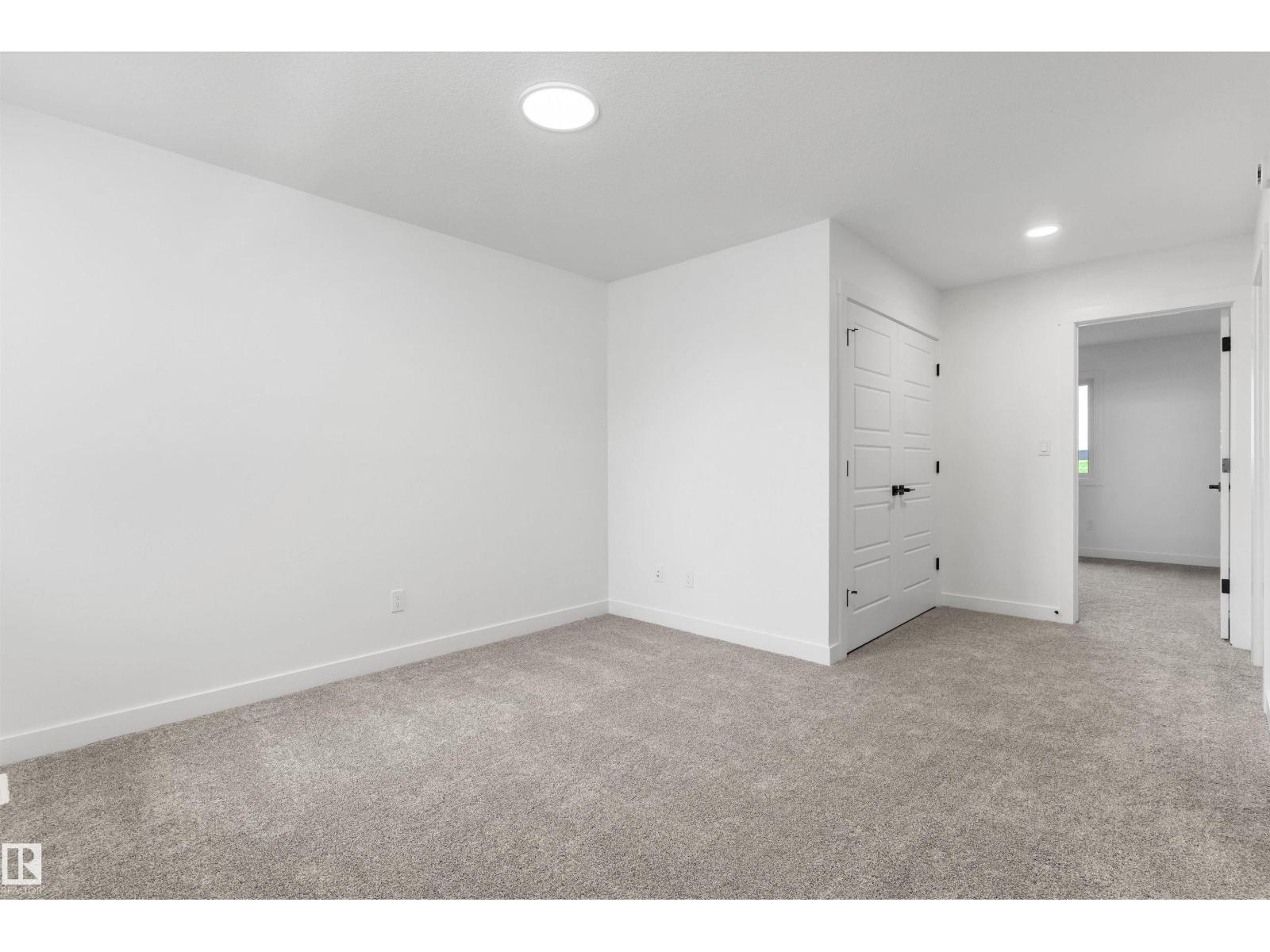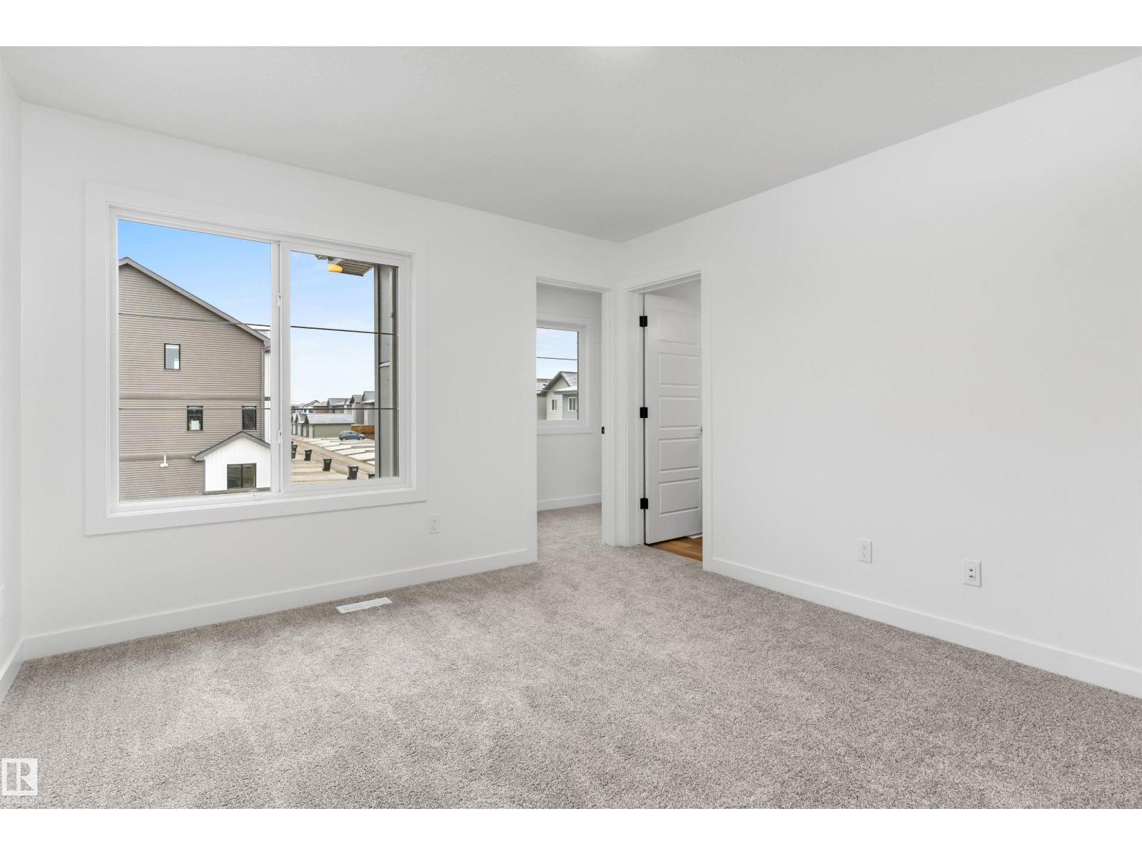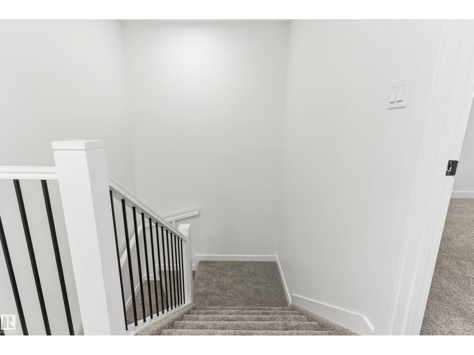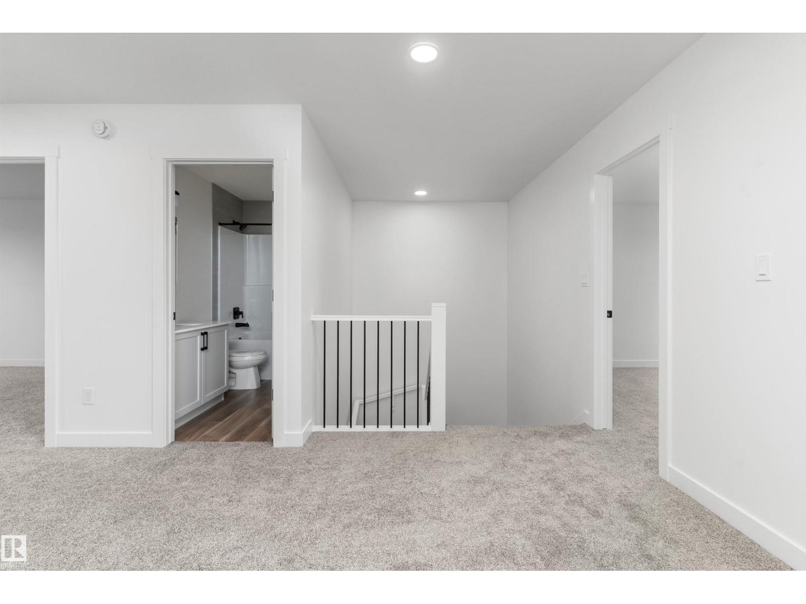 Built by Sterling Homes, this front-attached home in Rivers Edge offers bright, modern living in a nature-inspired west Edmonton community. Triple pane windows and 9’ ceilings create an airy main floor that features a welcoming foyer and an open kitchen with quartz counters, a large island, built-in microwave, chimney hood fan, full-height backsplash, and a corner pantry. The great room includes an electric fireplace and large rear windows, with a garden door leading to the backyard. A half bath completes the main level. Upstairs, the primary suite offers a walk-in closet with a window and a 4-piece ensuite with double sinks and a glass-door shower. A bonus room, full bath, upper-floor laundry, and two additional bedrooms complete the layout. With luxury vinyl plank flooring, upgraded railings, a separate side entrance, a double garage with floor drain, and basement rough-ins, this home blends comfort and convenience in a growing riverside neighbourhood. (id:63190)