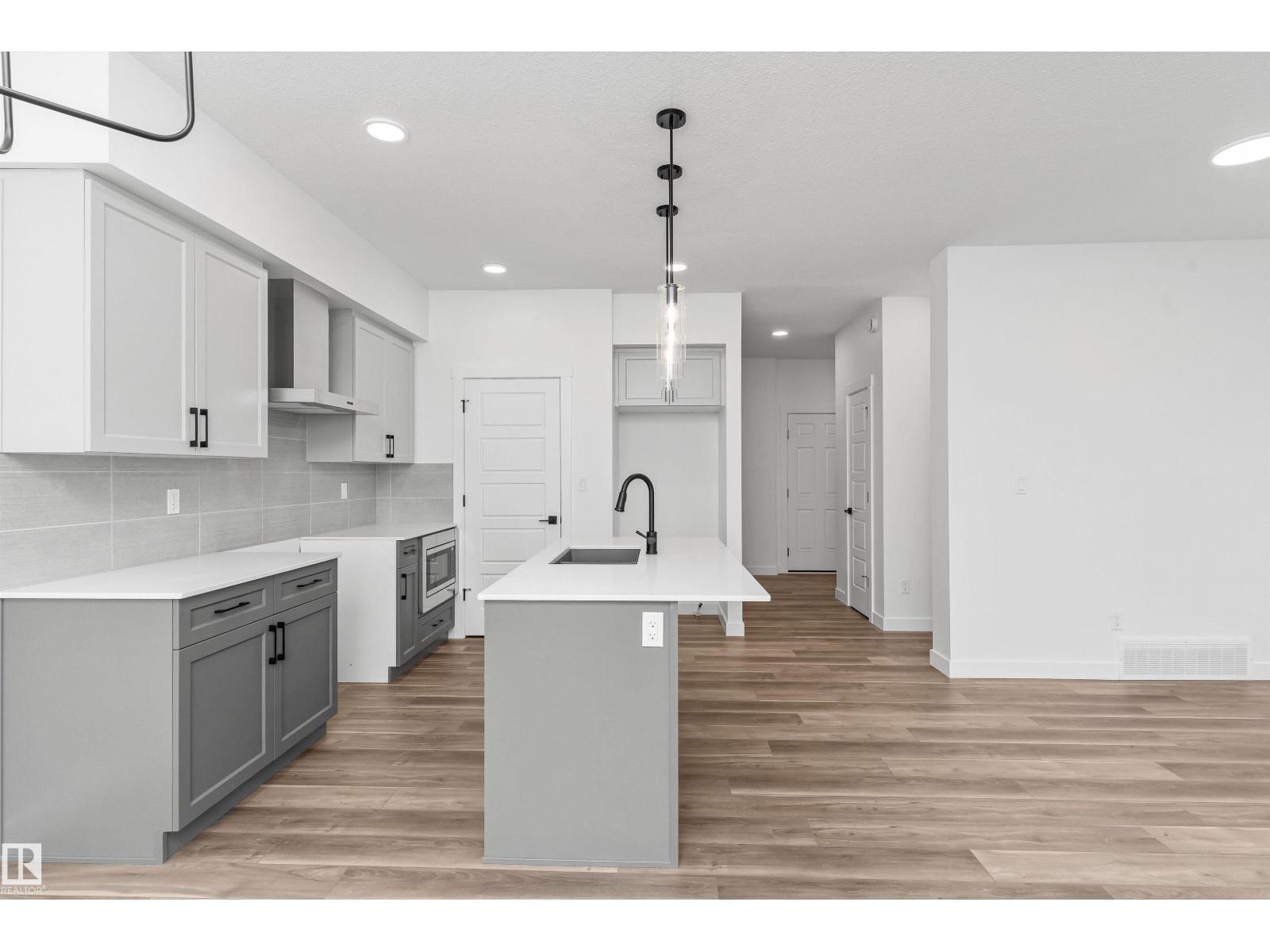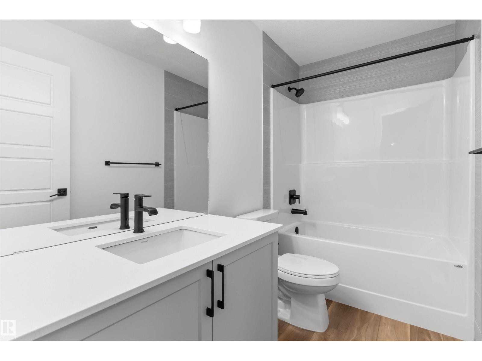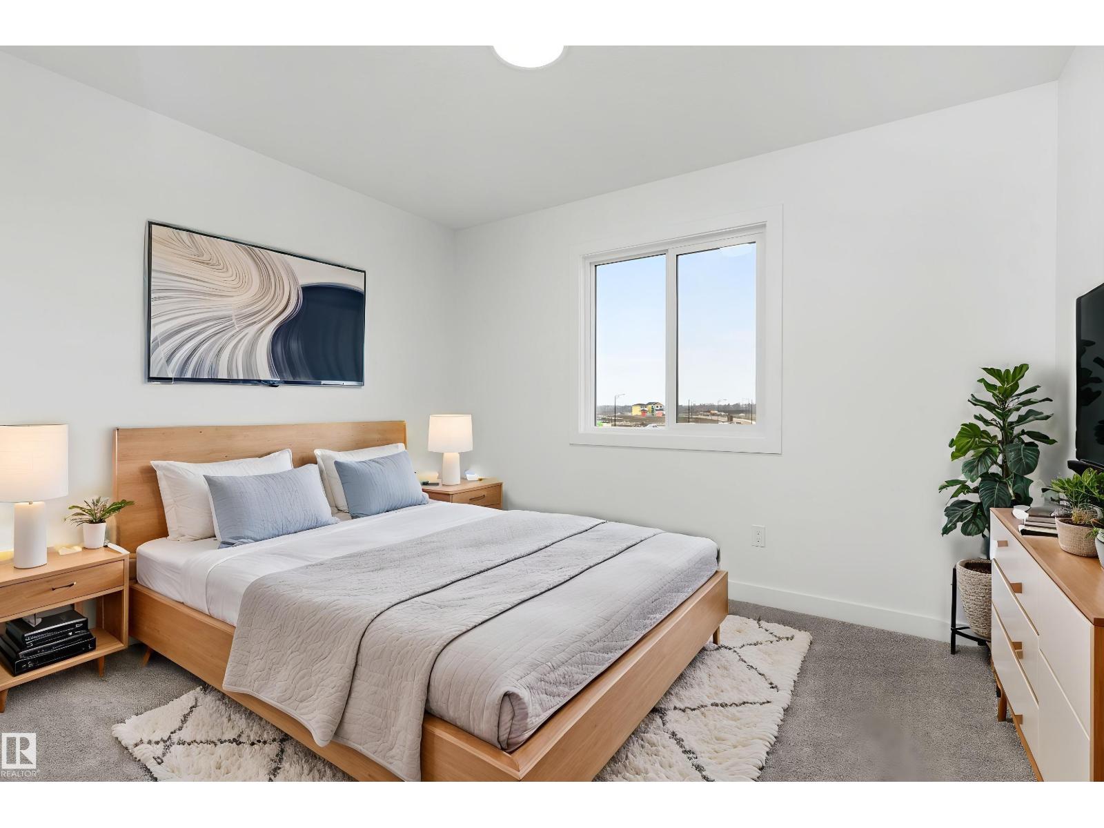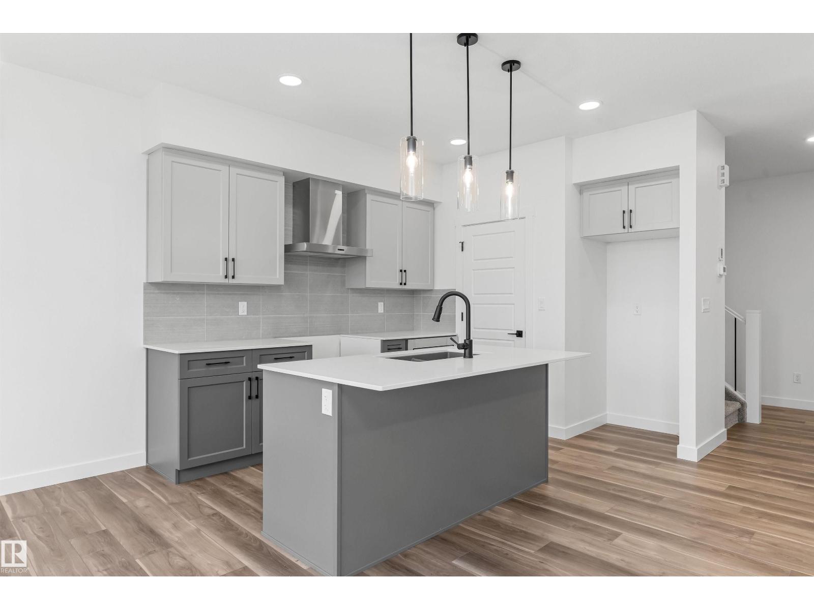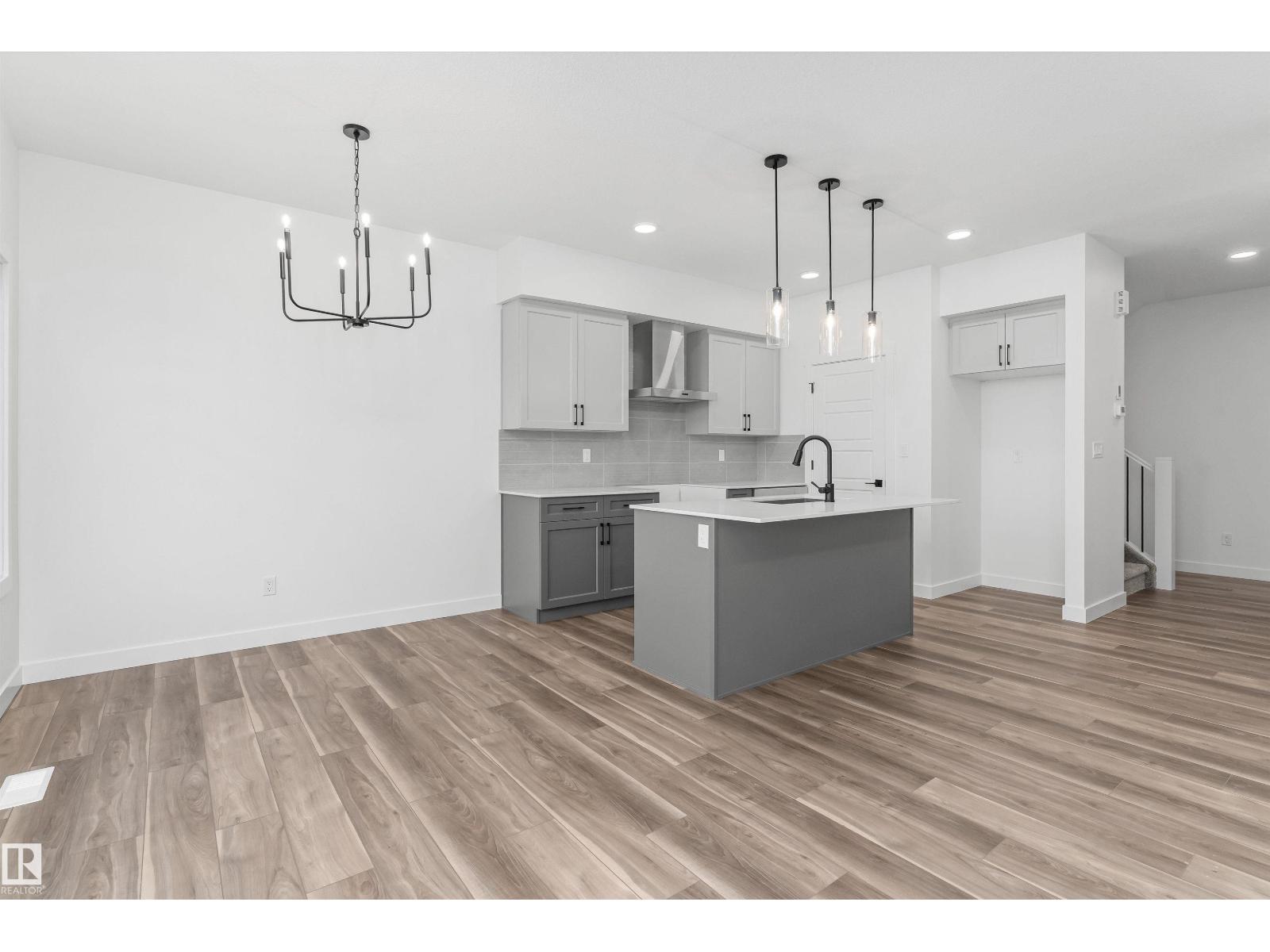Built by Sterling Homes, this front-attached home in Rivers Edge offers bright, modern living in a nature-inspired west Edmonton community. Triple pane windows and 9’ ceilings create an airy main floor that features a welcoming foyer and an open kitchen with quartz counters, a large island, built-in microwave, chimney hood fan, full-height backsplash, and a corner pantry. The great room includes an electric fireplace and large rear windows, with a garden door leading to the backyard. A half bath completes the main level. Upstairs, the primary suite offers a walk-in closet with a window and a 4-piece ensuite with double sinks and a glass-door shower. A bonus room, full bath, upper-floor laundry, and two additional bedrooms complete the layout. With luxury vinyl plank flooring, upgraded railings, a separate side entrance, a double garage with floor drain, and basement rough-ins, this home blends comfort and convenience in a growing riverside neighbourhood. (id:63190)