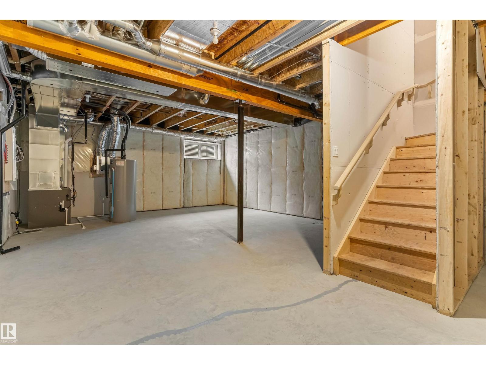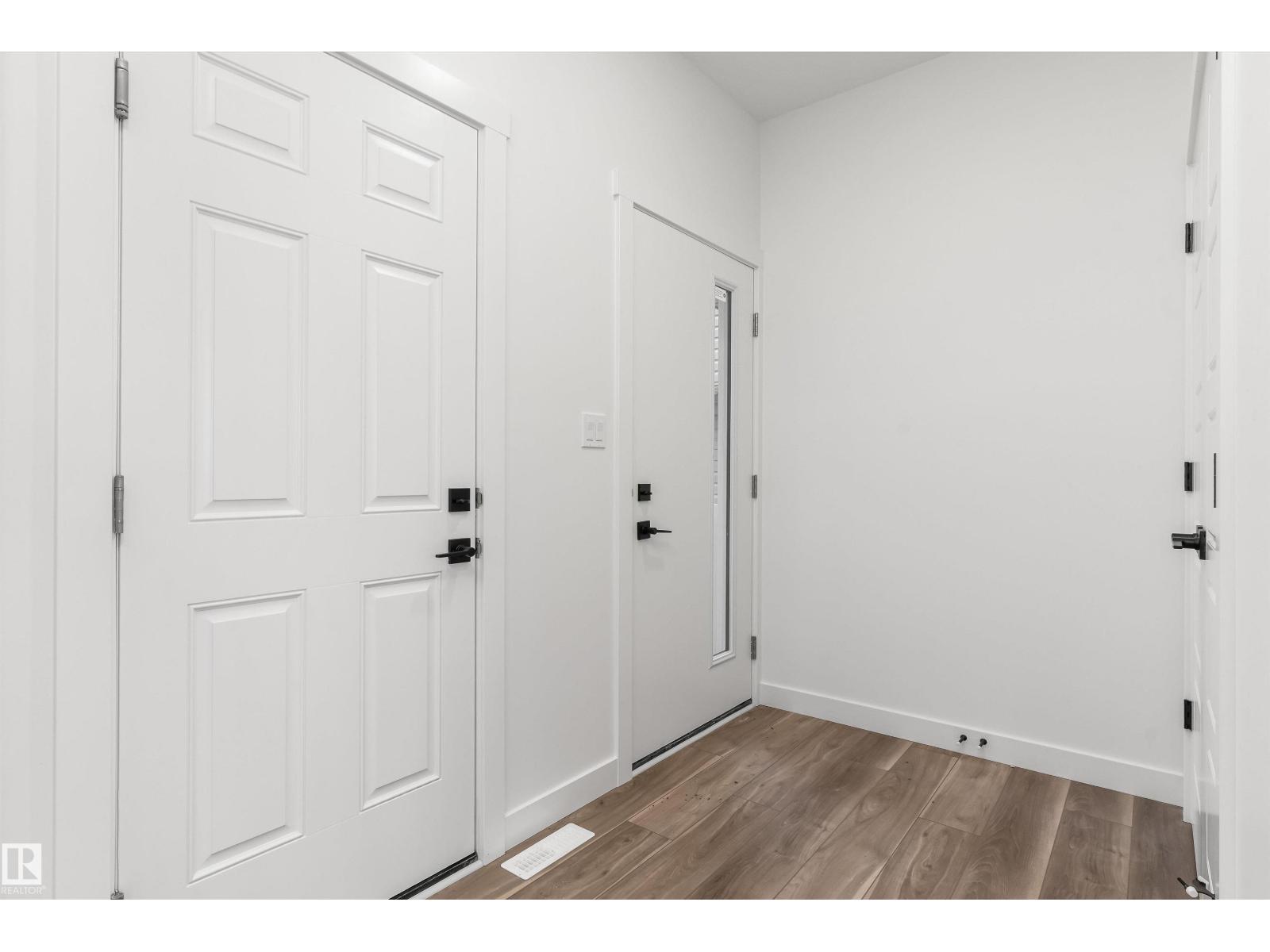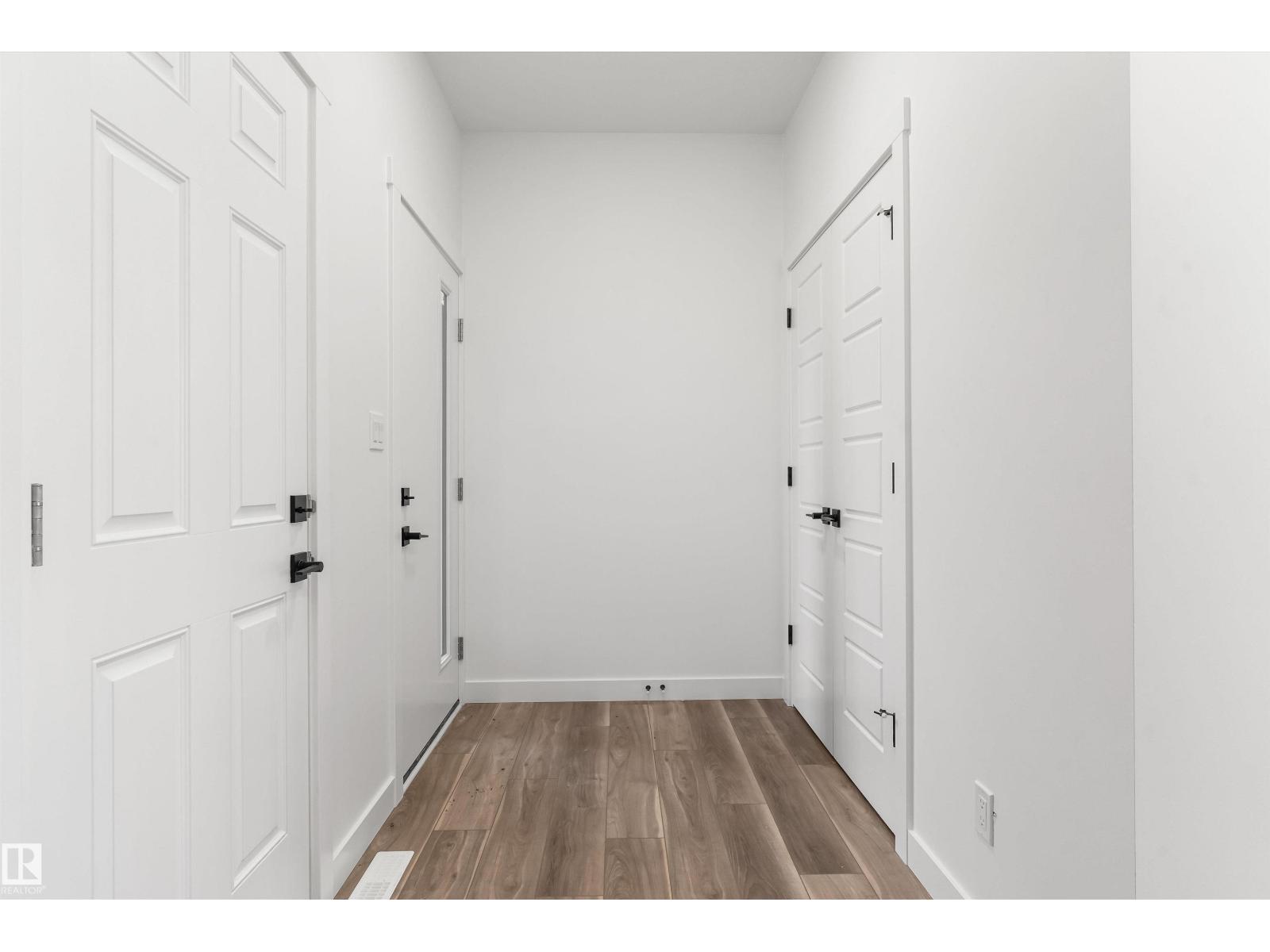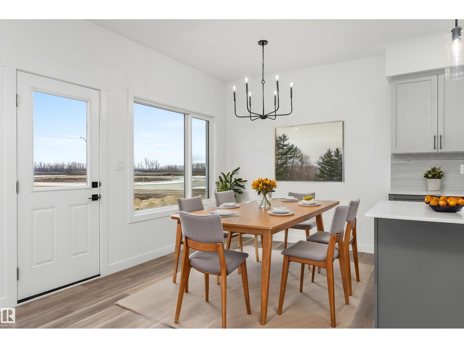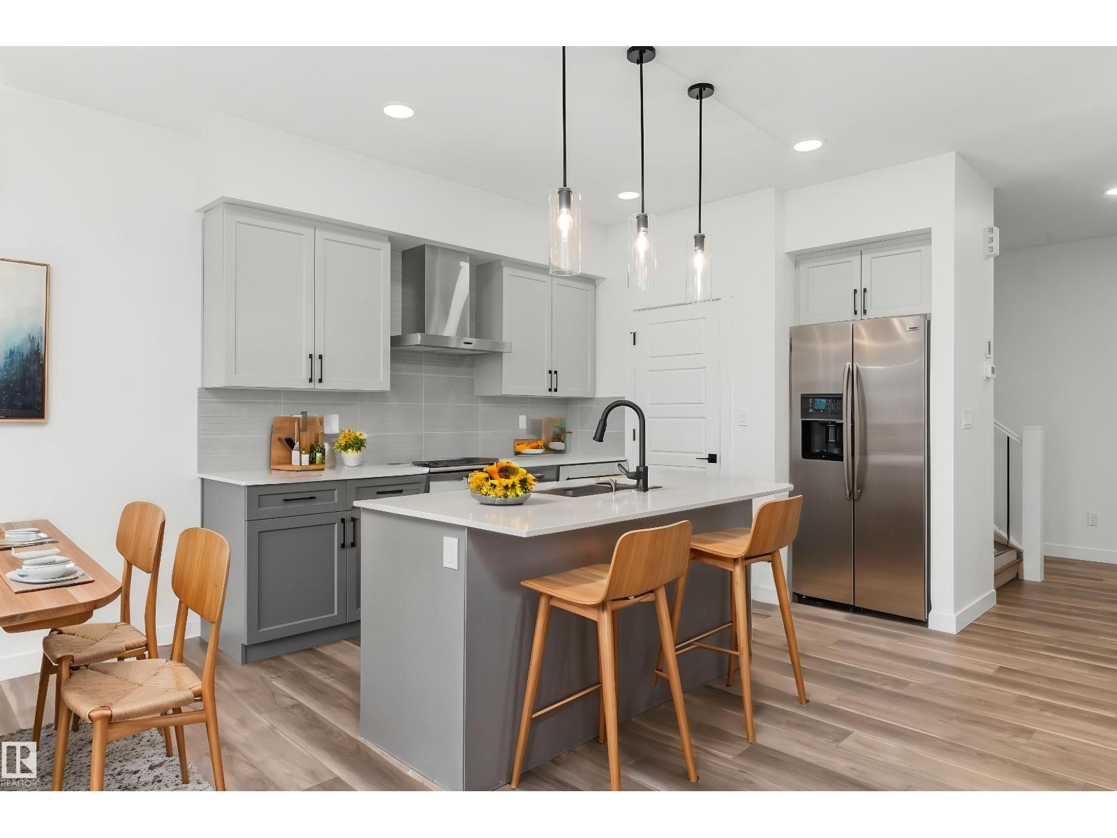 Built by Sterling Homes, this front-attached home in Rivers Edge offers bright, modern living in a nature-inspired west Edmonton community. Triple pane windows and 9’ ceilings create an airy main floor that features a welcoming foyer and an open kitchen with quartz counters, a large island, built-in microwave, chimney hood fan, full-height backsplash, and a corner pantry. The great room includes an electric fireplace and large rear windows, with a garden door leading to the backyard. A half bath completes the main level. Upstairs, the primary suite offers a walk-in closet with a window and a 4-piece ensuite with double sinks and a glass-door shower. A bonus room, full bath, upper-floor laundry, and two additional bedrooms complete the layout. With luxury vinyl plank flooring, upgraded railings, a separate side entrance, a double garage with floor drain, and basement rough-ins, this home blends comfort and convenience in a growing riverside neighbourhood. (id:63190)