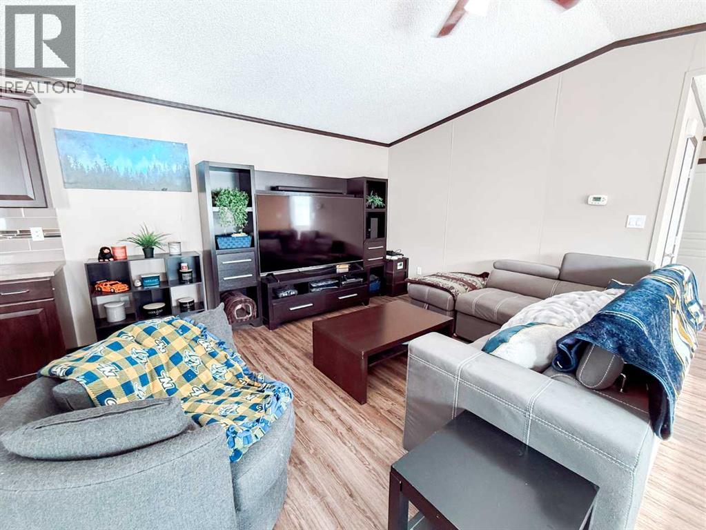 Beautifully cared-for manufactured home that was purchased and became an official home to the current owner in 2019! Located in Triple L Mobile Home Park, in the County of Grande Prairie, it offers peaceful living with convenient access to local amenities. This well-maintained home features newer vinyl plank flooring throughout, central air conditioning, and a large south-facing deck with built-in seating, perfect for enjoying sunny afternoons. Inside you’ll find three good-sized bedrooms, including a spacious primary suite with walk-in closet and private 4-piece ensuite. Two additional bedrooms are ideal for family, guests, or a home office and are complemented by a main 3-piece bathroom with tub. The bright south-facing living room welcomes plenty of natural light, while the dining area features French doors leading directly to the deck with built in seating, creating a seamless indoor-outdoor flow. The functional kitchen includes all appliances, a walk-in pantry, and a convenient island with plug-ins, making meal prep and entertaining easy. Outside, the shed at the back of the property is included, and the home backs onto open farm fields, offering a peaceful and serene setting. Located in Triple L Mobile Home Park, residents enjoy a family-friendly community with a playground just around the corner, plus easy access to nearby amenities in Grande Prairie including schools, shopping, restaurants, walking trails, and major commuter routes. A wonderful opportunity for comfortable, affordable living in a quiet park setting. (id:63190)
