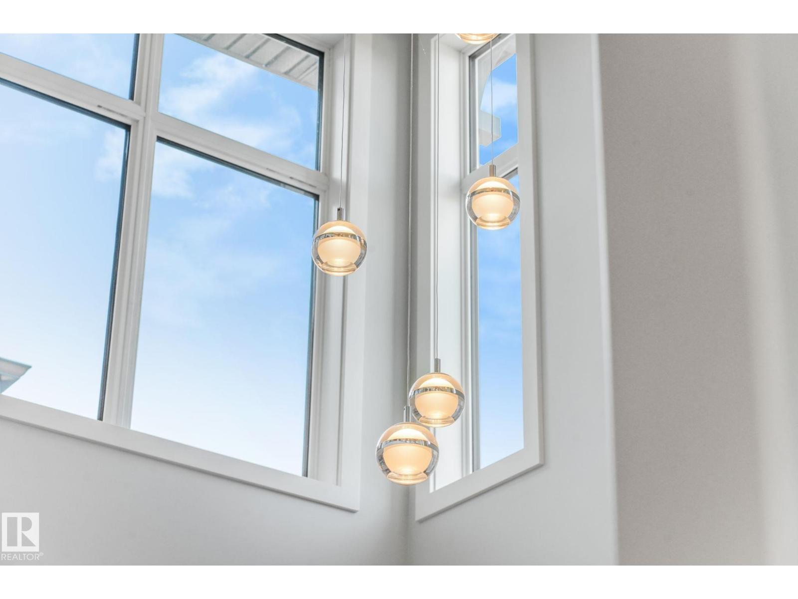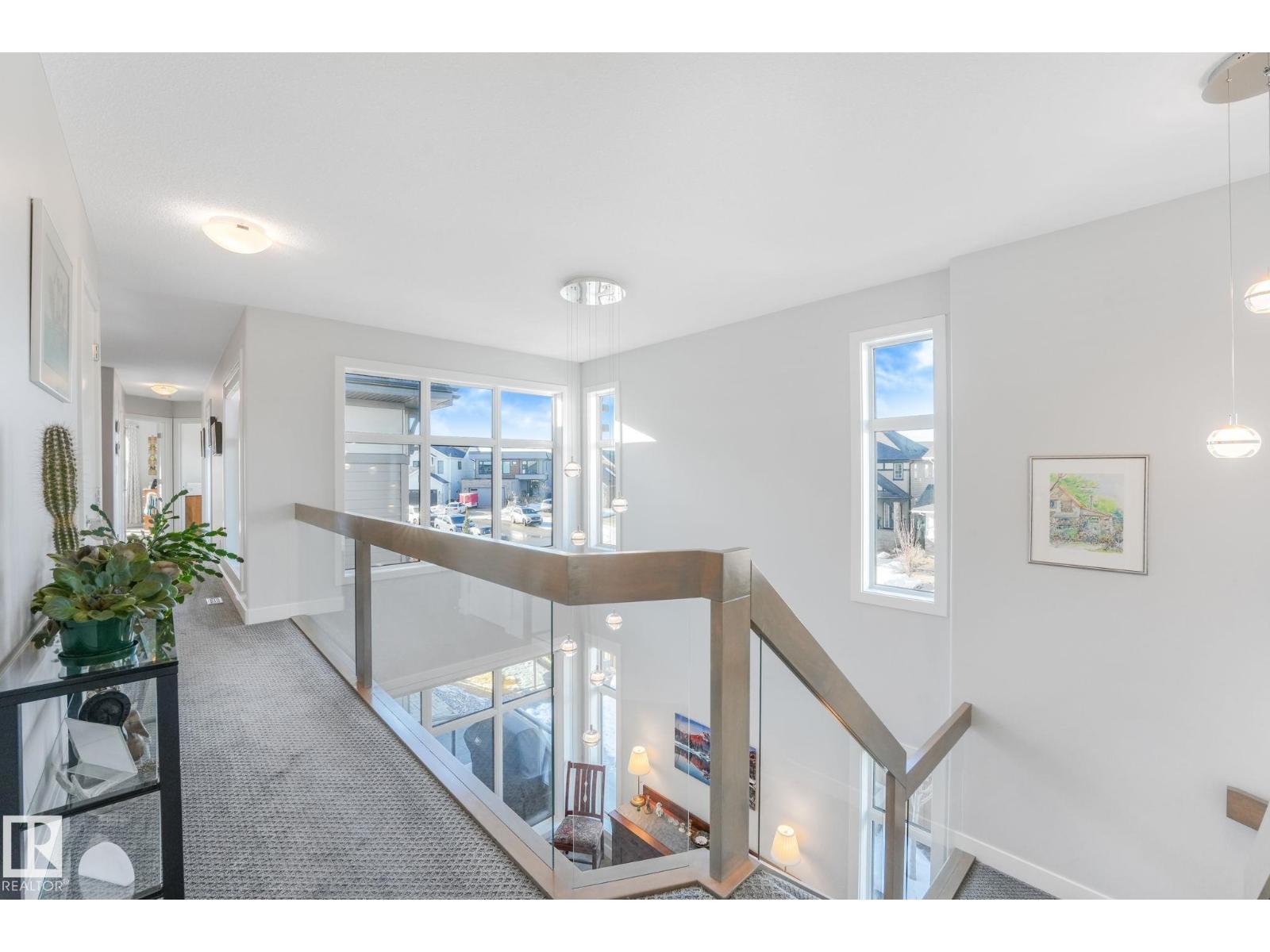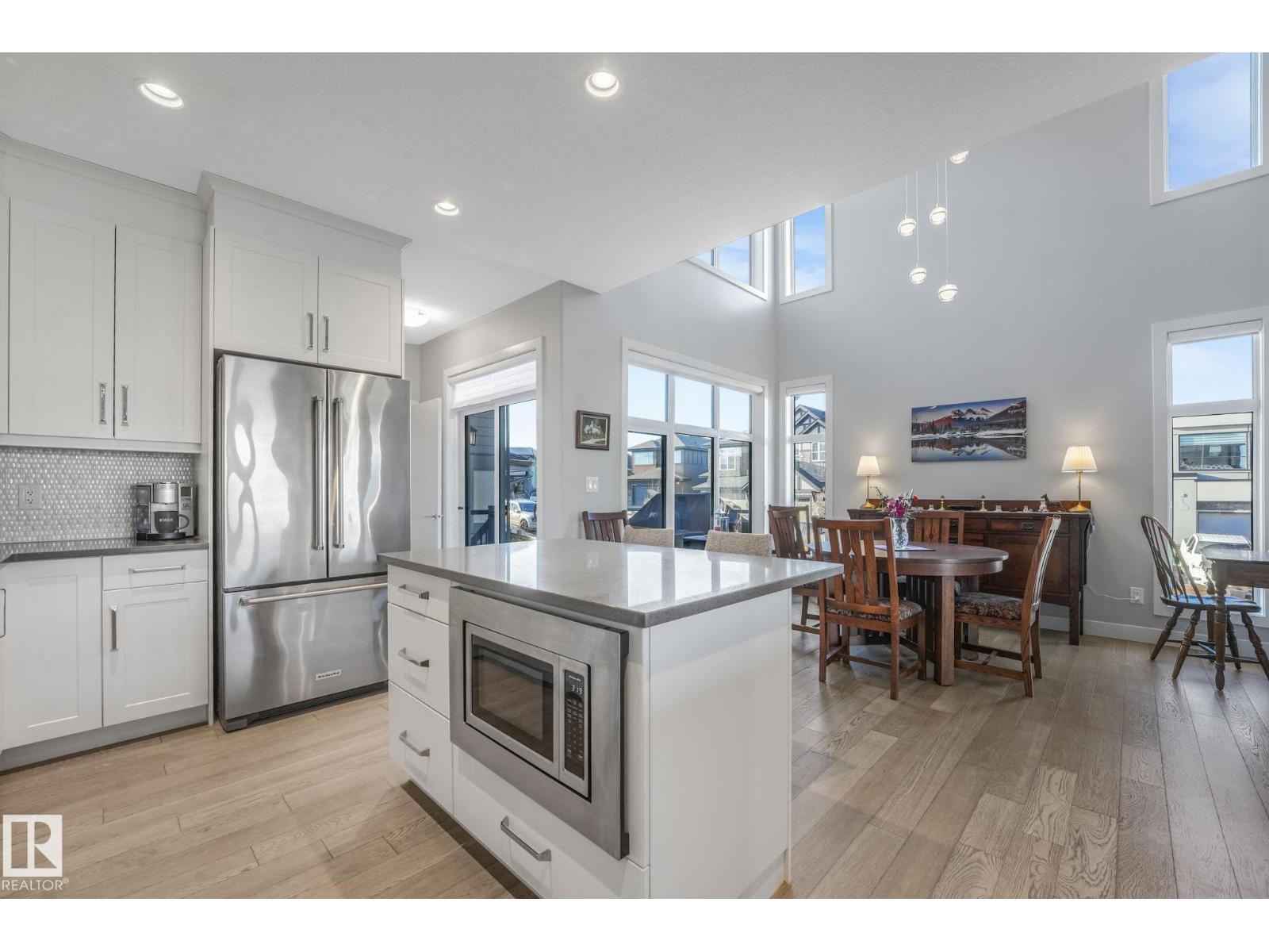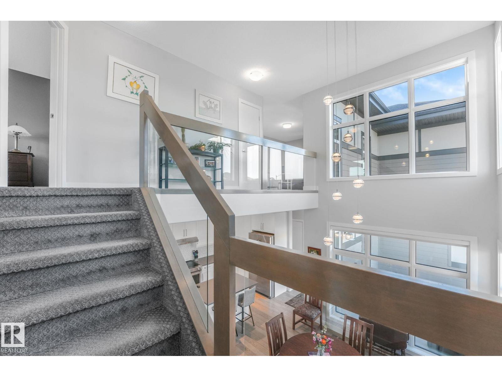 Next level living! Step up a class into a luxurious 2000sf home amidst the high end neighbourhood of Hays Ridge, surrounded by Jagare Ridge Golf Course. This gorgeous home features engineered hardwood flooring, massive windows on 3 sides, an open-to-above dining room with an 18' ceiling suspending an elegant chandelier. Incredible kitchen with light cabinets, grey quartz counters, penny tile backsplash, high end appliances & bar seating at the island AND peninsula overhang. Great boot room/laundry area at the back of the home near the double attached garage (with epoxy floor & 240V wiring roughed in for E.V.). Upstairs is a bonus room, primary bedroom with walk-in closet, huge bathroom - tub, shower & 2 sinks! 2 more bedrooms & another full bath up. The basement has a large window & roughed in bathroom ready for finishing. Big SW yard with upgraded private patio and manicured lawn & garden beautifully landscaped. A/C, central vac. Unbeatable location - walk to all amenities & enjoy life to the fullest! (id:63190)