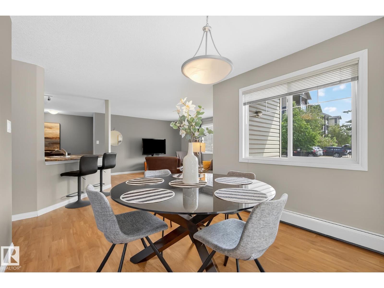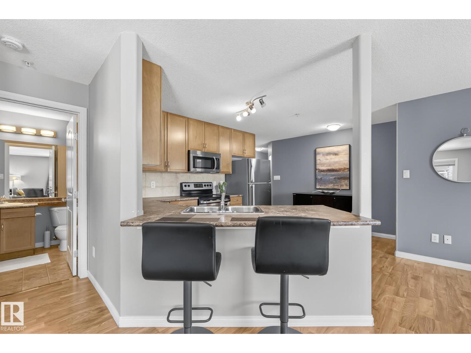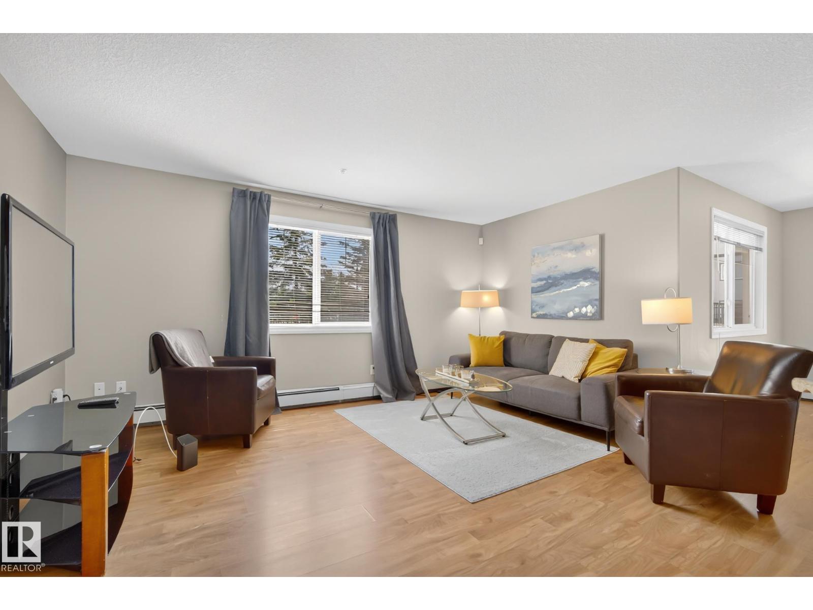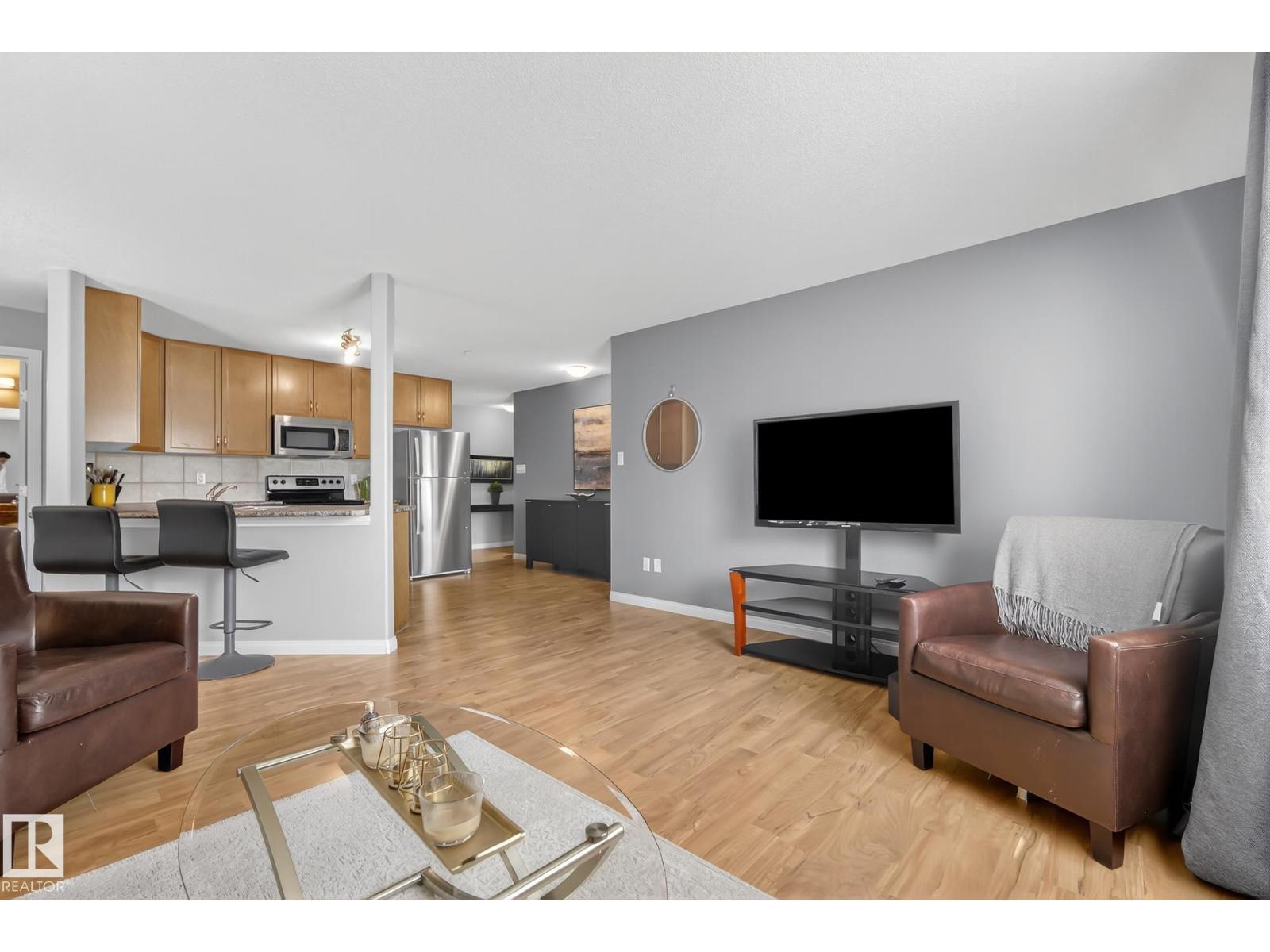 This bright and spacious corner suite in South Terwillegar offers a level of privacy and natural light that is rare in condo living. The open-concept layout features a functional kitchen that opens into the dining and living areas, creating a clean and inviting space for everyday life. The primary bedroom serves as a quiet retreat with its own private ensuite, while the well-proportioned second bedroom and additional bathroom provide the versatile space needed to suit any lifestyle. You will also enjoy the convenience of in-suite laundry and heated underground parking. Residents have access to building amenities including a fitness room and social room. Located just minutes from local shopping, schools, and restaurants, this home is a practical and well-situated choice for any buyer. (id:63190)
