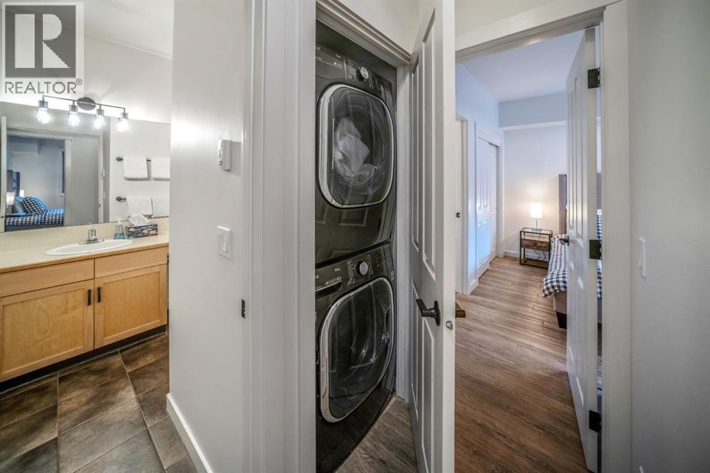 Positioned within the popular Grizzly Lodge at The Lodges of Canmore, this spacious short term rental use, three-bedroom, two-bathroom condominium offers an exceptional opportunity to generate income while owning a retreat in the Canadian Rockies. Offered at $1,450,000 + GST. With 1,188 sqft of single-level living, the residence is thoughtfully configured to accommodate up to eight guests—ideal for the strong demand from visitors exploring Banff National Park, Lake Louise, and the Bow Valley.Recently refreshed with new flooring, lighting, and paint, the home presents a welcoming alpine aesthetic designed for both guest comfort and owner enjoyment. The open living and dining areas extend to a generous private balcony, providing space to relax after a day of skiing, hiking, or exploring the mountains. Two owner lock-offs in the kitchenallow convenient storage of personal items while the property is operating as a vacation rental.For investors, the property offers compelling performance potential with gross pro-forma revenue estimated at approximately $185,000+ annually, supported by Canmore’s thriving year-round tourism market.Guests and owners alike benefit from the resort-style amenities at The Lodges of Canmore, including an outdoor pool, hot tubs, fitness centre, and secure underground parking. From this central location, visitors can walk to Main Street, local shops and restaurants, or access the extensive Bow River trail network just steps away.Combining strong revenue potential with the lifestyle of the Canadian Rockies, this turnkey property offers the rare ability to generate meaningful income while maintaining a personal mountain base for your own escapes to Canmore. (id:63190)