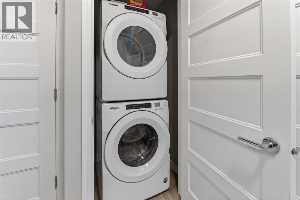 Welcome to Greenwich, one of Calgary’s most exciting and up-and-coming communities. This fully upgraded TOP FLOOR condo offers 2 bedrooms, 2 bathrooms, and over 800 SQFT of thoughtfully designed modern living. An open concept layout that seamlessly combines the spacious dining area with the large living room creates the perfect space for relaxation and entertainment. Offering 9 foot ceilings, in-floor heat that will keep you warm all winter and air-conditioning to keep you cool in the summer. The stunning kitchen is complete with upgraded stainless steel appliances, ample white cabinetry, quartz countertops, and large quartz island. The kitchen island serves as a focal point, ideal for hosting dinner parties or gathering with friends. Luxury Vinyl Plank flooring adds an elegant touch, while two primary suites situated on opposite ends of the condo ensure privacy and comfort for all. The true primary suite boasts a large size, a walk through closet and a walk-in shower. The second bedroom is a generous size with access to the 4 pc bathroom. This condo has breathtaking WEST facing views of the Rocky Mountains and an incredible amount of natural sunlight from the large windows. Enjoy the spacious patio complete with a gas line for your BBQ and plenty of room for outdoor furniture—perfect for relaxing and taking in beautiful summer sunsets. Additional features include in-suite laundry, a storage unit, and underground TITLED parking complete with additional storage cage for convenience. Located just steps away from the Calgary Farmers Market, shopping destinations, coffee shops, parks, pathways, outdoor skating rinks, and fitness facilities, this condo offers the epitome of urban living. Bowness Park is within easy reach, perfect for outdoor enthusiasts and Downtown Calgary a mere 18-minute drive away. (id:63190)