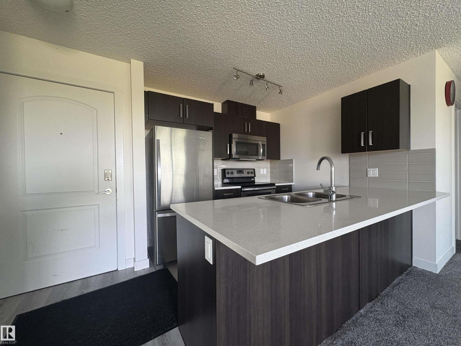 Corner Unit and Parking Facing. Modern 2-Bedroom Air-Conditioned Condo in Walker. This bright and spacious 2-bedroom, 2-bathroom CORNER unit on the third floor features an open-concept layout, a modern kitchen with stainless steel appliances, and a private balcony. The primary bedroom includes a walk-through closet and ensuite, while the second bedroom is conveniently located near the main bath. Enjoy in-suite laundry, a versatile storage space, and under-ground parking.The building offers great amenities, including a fitness center and a social room. Located in the heart of Walker, you’re minutes from shopping, schools, parks, and Anthony Henday Drive. This unit has received numerous updates in recent years including new flooring, new carpets and a lot more. Don’t miss this fantastic opportunity! (id:63190)