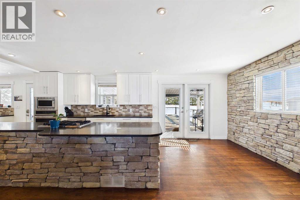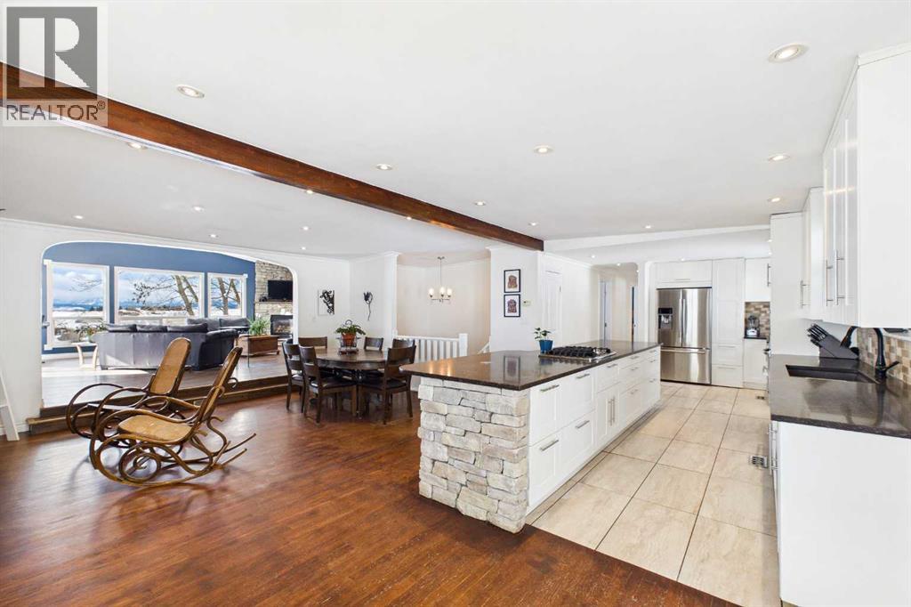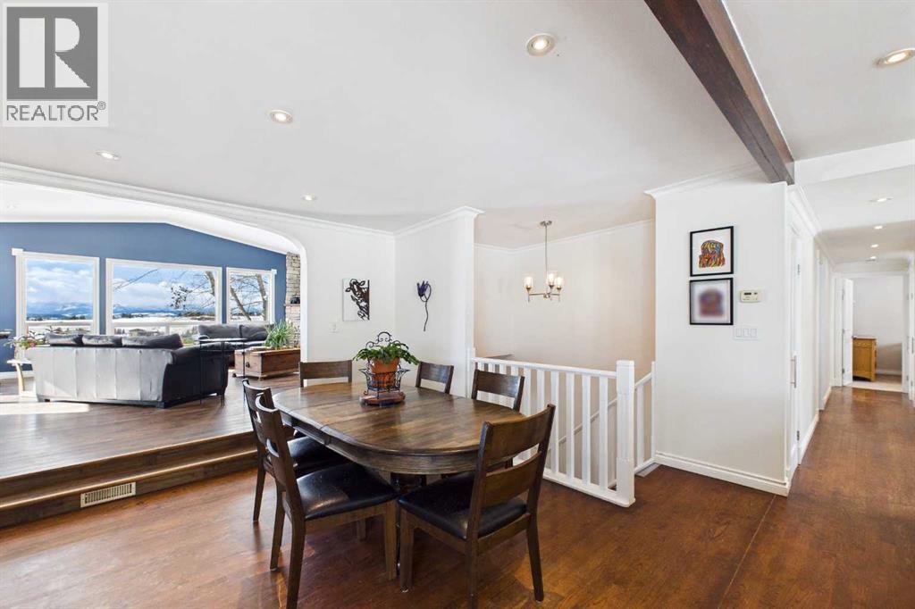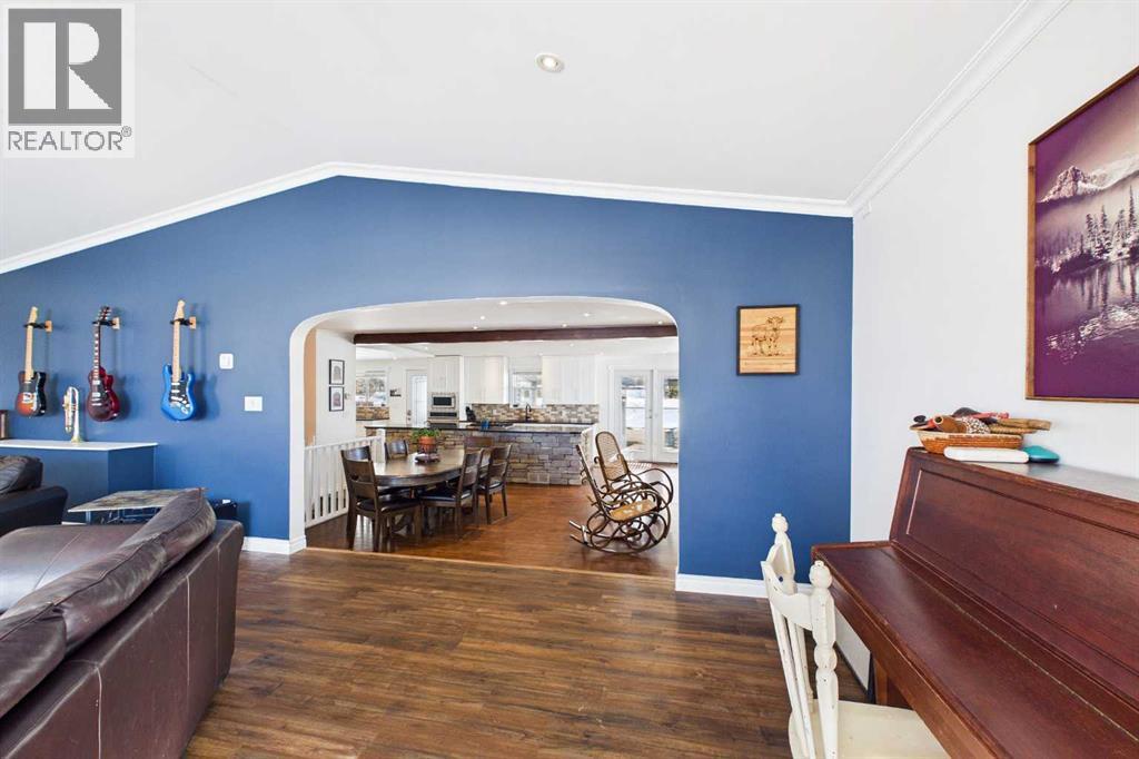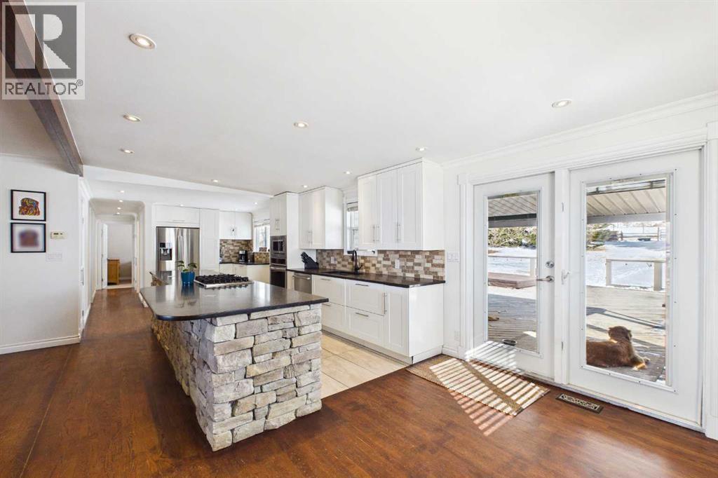 Welcome to an exceptional acreage opportunity offering space, privacy & breathtaking scenery.This beautifully renovated walkout bungalow sits on 8.06 picturesque acres & captures stunning, unobstructed mountain views right from every level of the home. Whether you’re looking for a peaceful country retreat, space for animals, or room for your family to grow, this property offers the perfect blend of comfort, functionality & rural charm. Inside, the home features 6 spacious bedrooms & a thoughtfully updated interior designed for modern living while embracing the warmth of country life. The kitchen speaks for itself with a massive island, quartz counters, tons of cabinetry, pantry & a coffee station area, This kitchen effortlessly blends highend modern utility with the rugged, organic textures of a mountain retreat. The open-concept design is defined by its crisp white cabinetry, dark stone surfaces, and a striking floor-to-ceiling fieldstone feature wall. All the bathrooms have been updated & in convenient locations. Large windows fill the home with natural light &perfectly frame the sweeping mountain views, creating a bright & inviting atmosphere throughout the main living areas. 3 cozy fireplaces bring ambience to every level of this home. 2 wood burning fireplaces and one natural gas fireplace. The layout offers both comfortable everyday living & plenty of space for entertaining family and friends. There are 3 decks to enjoy the outdoor life and views. The walk-out basement provides additional versatile living space with direct access to the outdoors, making it ideal for gatherings, extended family living, a recreation area, media room & a private retreat for guests. With multiple living spaces and generous bedroom sizes, the home offers flexibility to suit a variety of lifestyles. Step outside and experience the true beauty of acreage living. The 8.06-acre parcel offers wide open space, privacy & endless potential for outdoor enjoyment. The property has been home to cows, donkeys & chickens, making it well suited for hobby farming or those who appreciate the charm & rewards of rural life. There’s a 20x50ft garden area, gazebo and additional outbuildings. Imagine starting your mornings with coffee while watching the sunrise over the mountains & ending your evenings under expansive prairie skies. With incredible views, room for animals & a beautifully updated home already in place, this property offers a rare opportunity to enjoy the best of country living while still being within reach of nearby amenities. Acreage properties like this are increasingly hard to find offering the perfect combination of land, views & a move-in-ready home. Whether you’re dreaming of a hobby farm, a private family retreat, or simply more space to live and breathe, this remarkable property delivers a lifestyle that is truly special. Roof 15 years old, septic field/tank 2022, furnace 2023, H2O tank 2025 (id:63190)