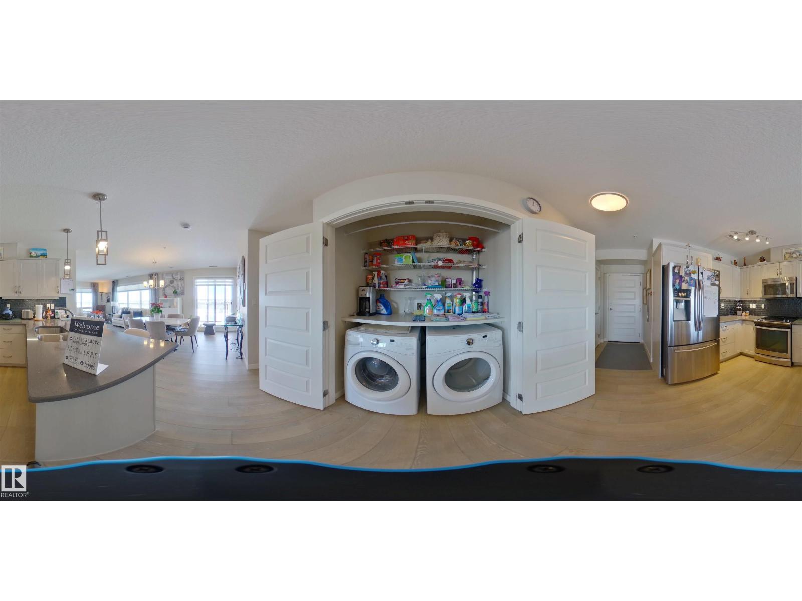 This unit is filled w/ abundant natural light w/open-concept layout.The kitchen is beautifully upgraded w/white cabinetry, stainless steel appliances, quartz countertops, & a large peninsula. High-end engineered hardwood flooring flows throughout, enhanced by large windows highlighing stunning views.Relax on the extensive private balcony & enjoy views onto a park to the east & the skyline of downtown to the north.The spacious living and dining areas are ideal for entertaining.The primary bedroom features a gorgeous view, a walk-through closet leading to a 4-piece bath w/a walk-in shower.The 2nd bedroom has a private 3-piece ensuite.This unit also offers central A/C, an underground parking & plenty storage spaces.Conveniently located near public transit(LRT) & w/easy access to shopping, dining & pharmacies.The building has so many unique amenities such as social room, restaurant, guest room, hair salon, car wash, workshop & more. (id:63190)
