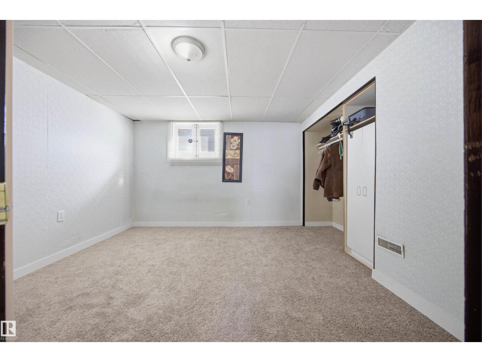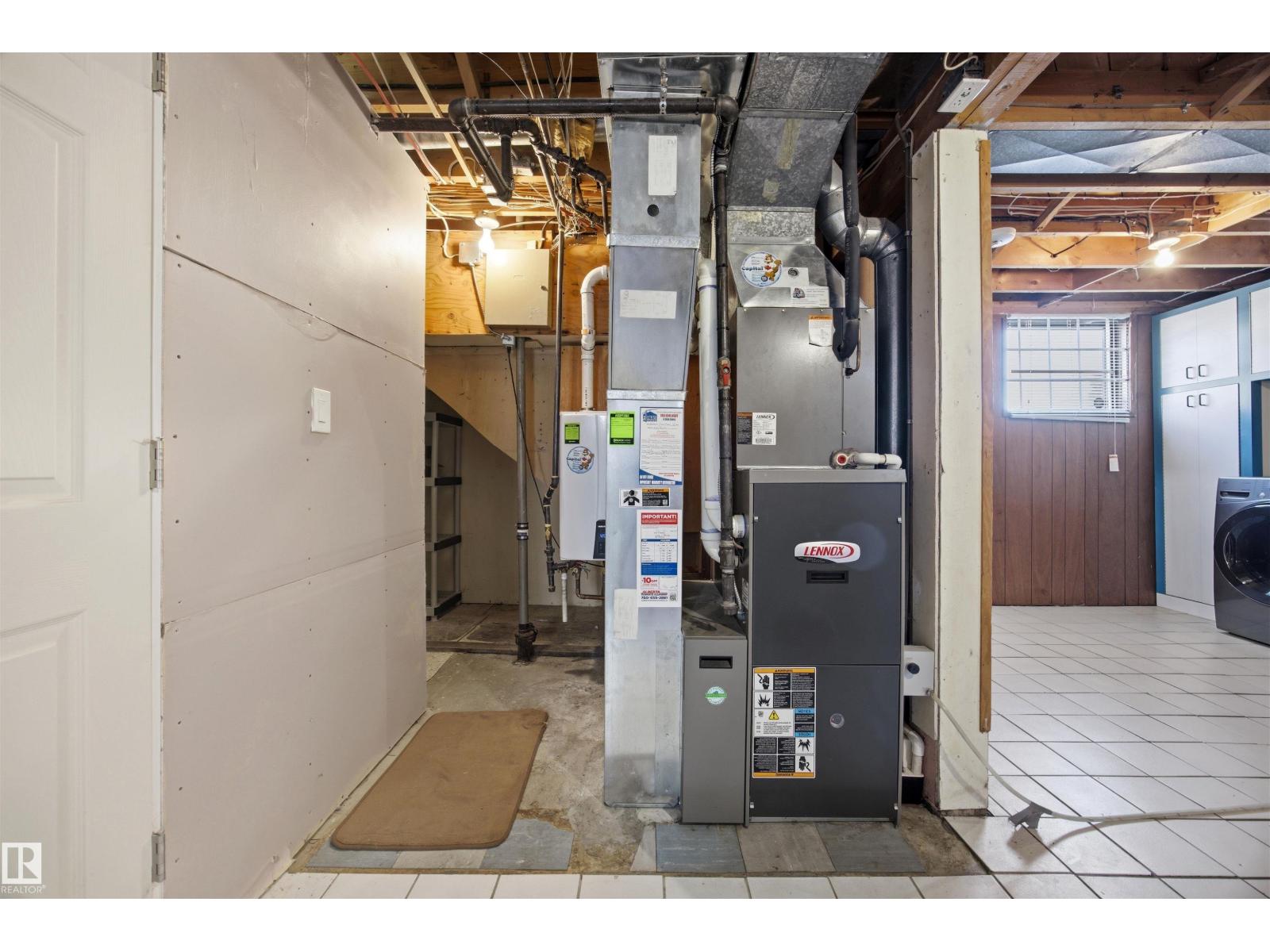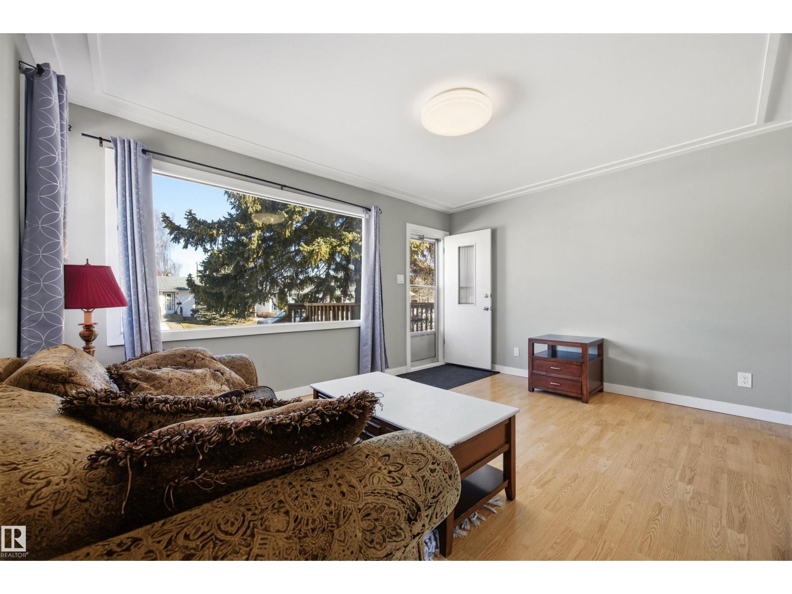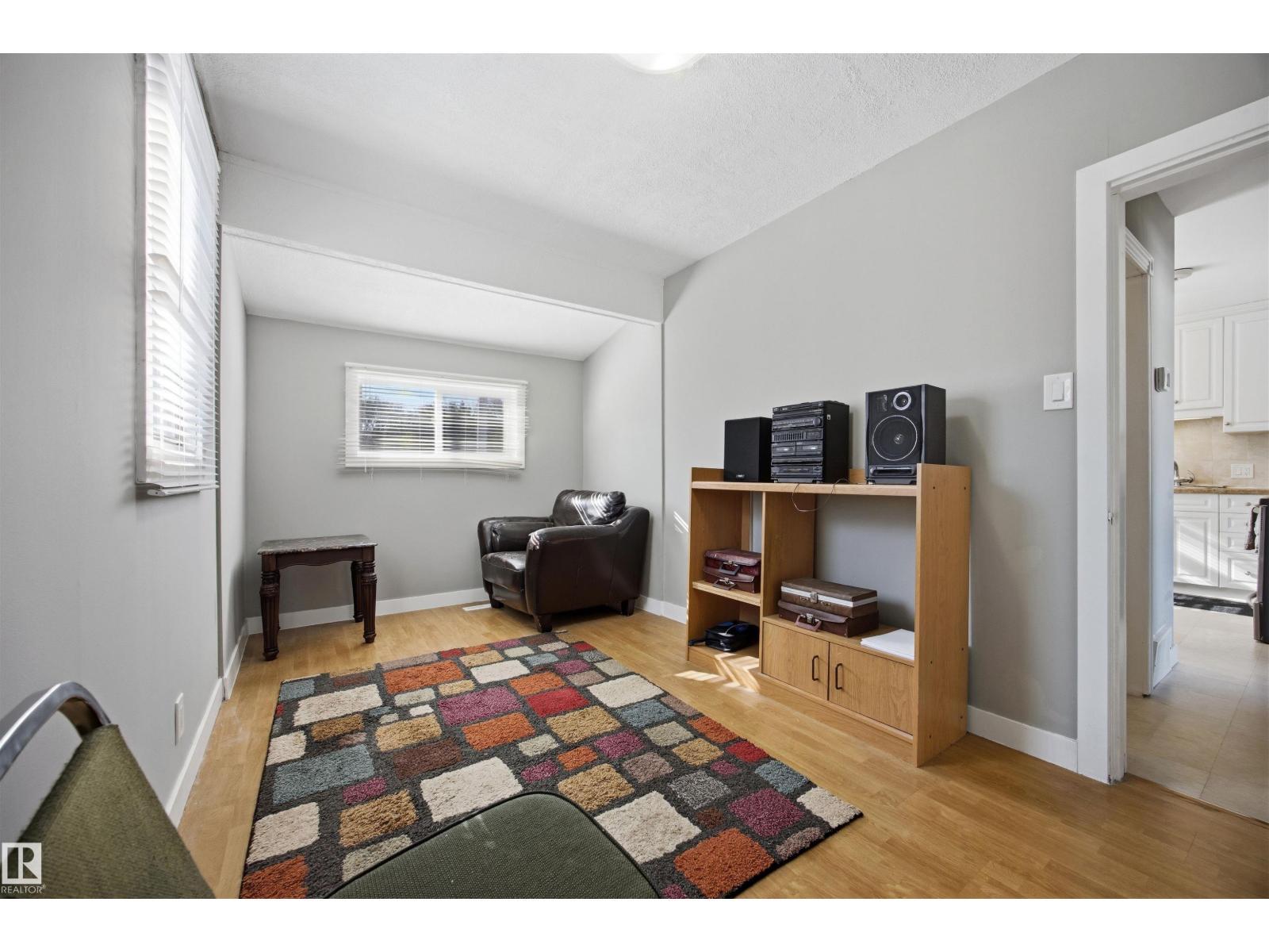 Well-cared-for 770 SqFt 2 + 2 Bungalow in Beverly Heights located on a quiet residential street & a ~6,000 SqFt lot. Features include paved front & rear driveway for multiple vehicles/RV, a landscaped yard with an updated front porch, & spacious living area with built-in wall unit. The kitchen offers stainless steel appliances, upgraded cabinets & eating nook with a south-facing window. The main floor includes 2 large bedrooms & full bath with walk-in bath/shower. The fully finished basement adds 2 more bedrooms, second full bath, newer LG SS Washer & Dryer, & reinforced windows. Upgrades include High-Efficiency Lennox Furnace, Central A/C, Tankless Hot Water, newer shingles & ADT security system. Enjoy a large (south-facing) landscaped backyard with concrete patio, planters, updated fencing, 2 sheds & a single detached garage. In a mature neighbourhood and < 10 min drive to shopping, downtown, Yellowhead Trail, & Anthony Henday Drive. Walking distance to Public Transit (~2 mins) & River Valley (~10 mins) (id:63190)