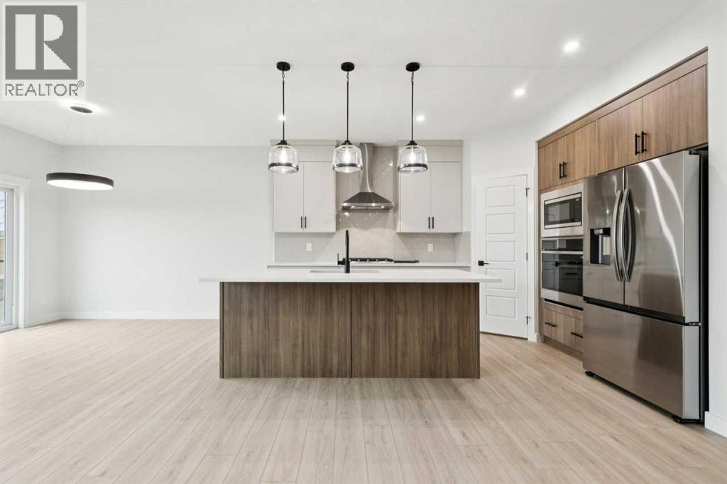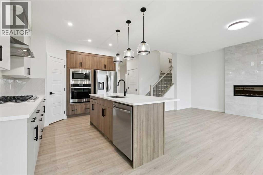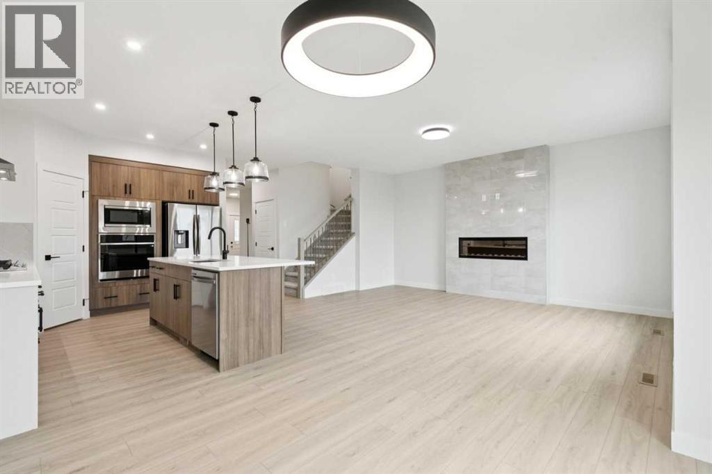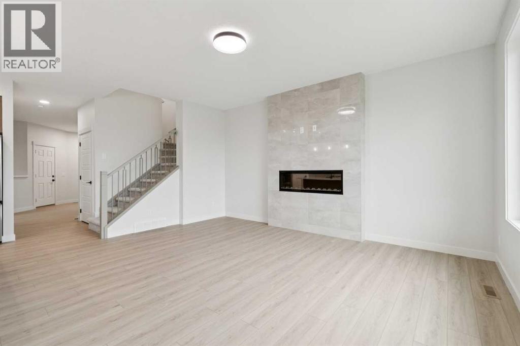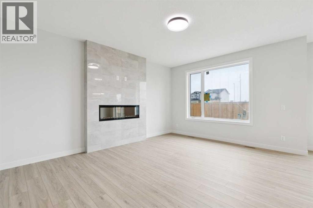 Welcome to the Madison by NuVista Homes, located at 57 Southborough Square in the growing Southbow community of Cochrane. This beautifully designed 2,040 sq. ft. two-storey home offers 3 bedrooms and 2.5 bathrooms with a spacious and functional layout. The open-concept main floor features luxury vinyl plank flooring, a modern kitchen with quartz countertops, tall upper cabinetry, and an upgraded Samsung gourmet appliance package. The bright great room is anchored by an electric fireplace with full tile surround, while a versatile flex room provides space for a home office or additional living area. Upstairs, a large bonus room, convenient laundry, and a spacious primary bedroom complete with a walk-in closet and private ensuite. Two additional bedrooms finish the upper level. Additional highlights include 9’ foundation and main floor ceilings, a side entrance for potential future basement development, and an 11’ x 10’ rear deck ideal for outdoor BBQ's. (id:63190)