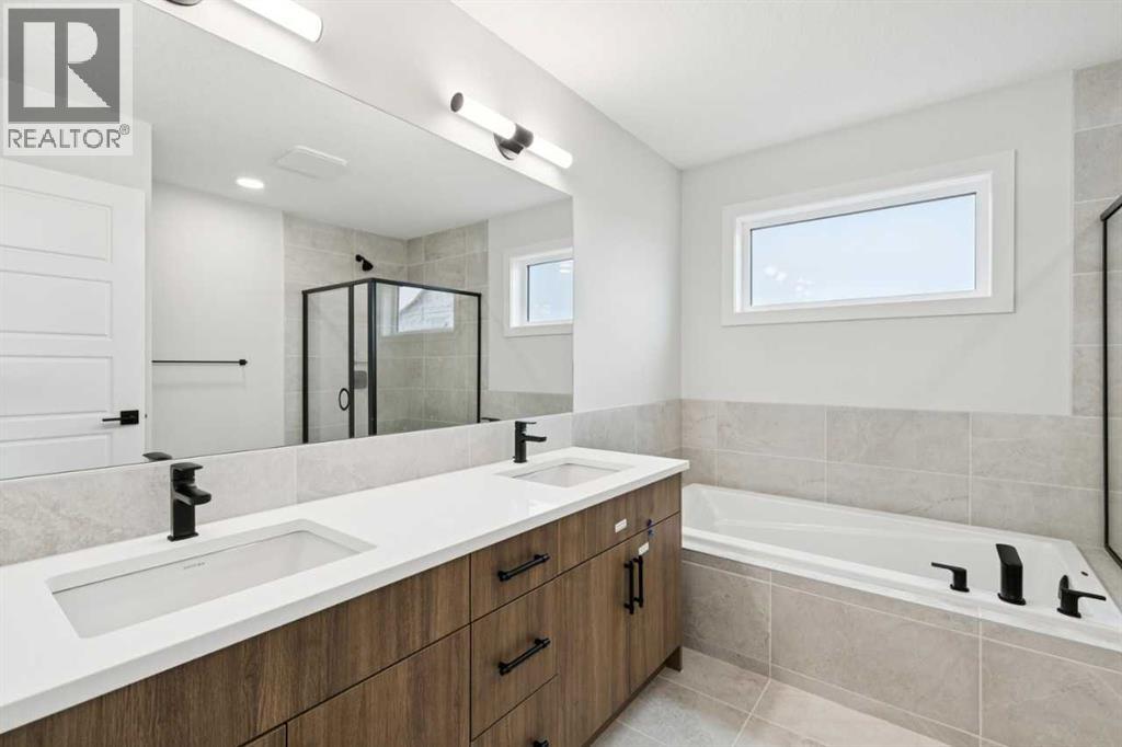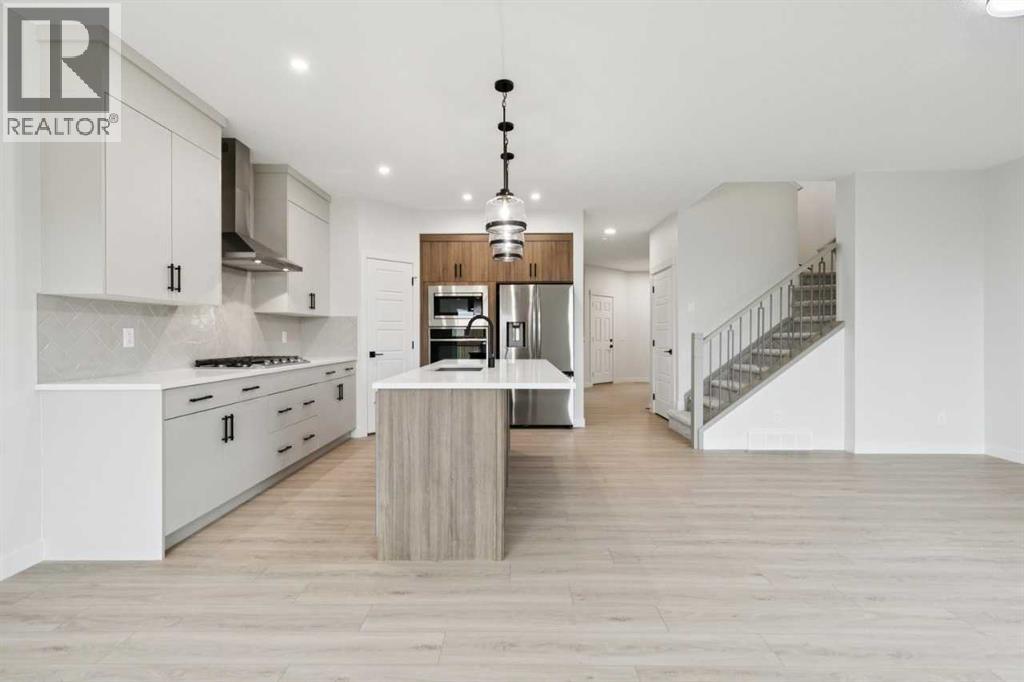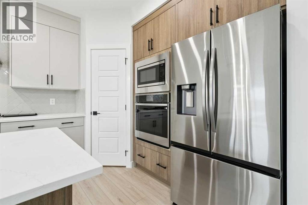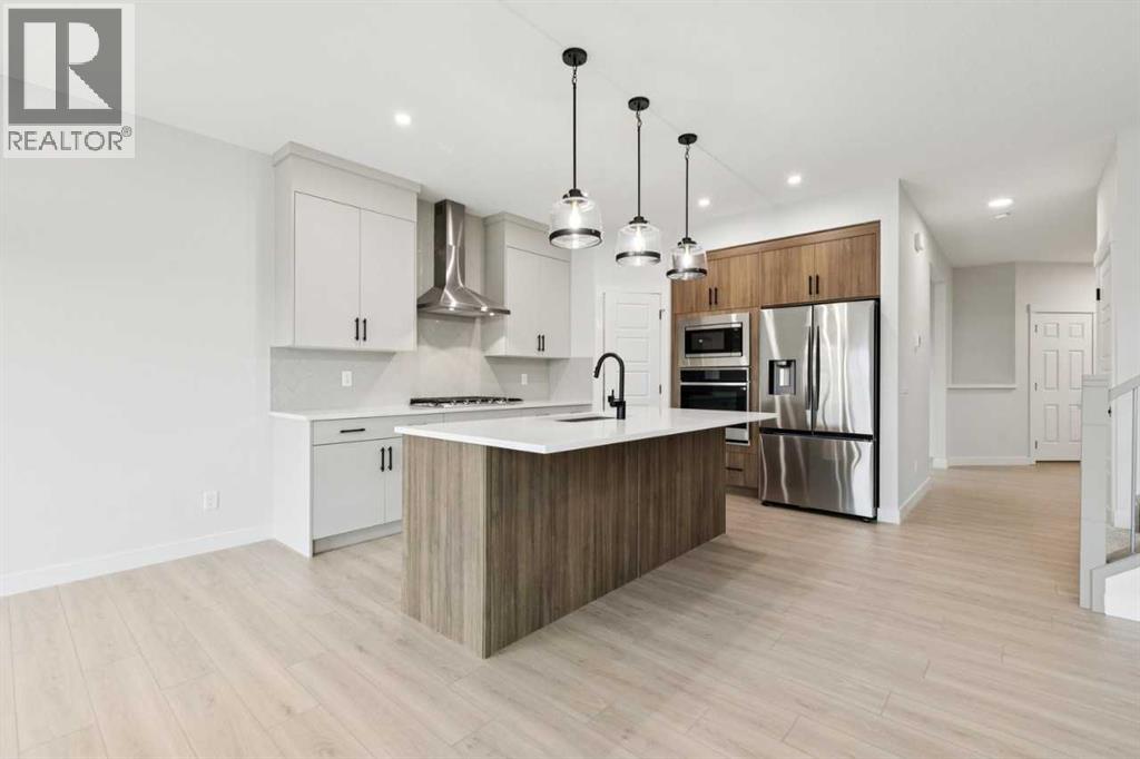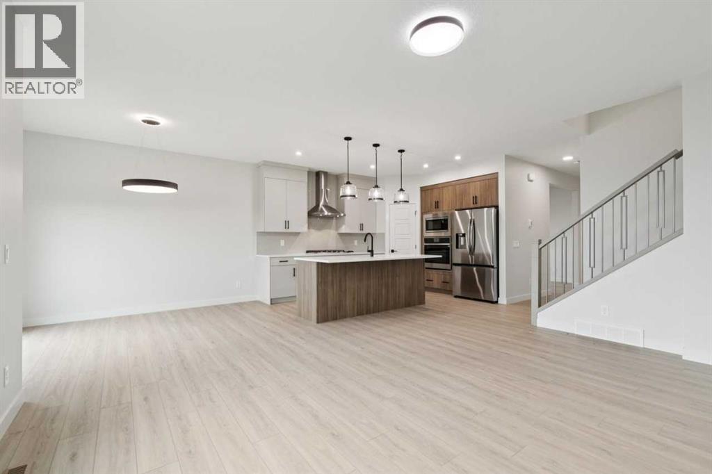 Welcome to the Madison by NuVista Homes, located at 57 Southborough Square in the growing Southbow community of Cochrane. This beautifully designed 2,040 sq. ft. two-storey home offers 3 bedrooms and 2.5 bathrooms with a spacious and functional layout. The open-concept main floor features luxury vinyl plank flooring, a modern kitchen with quartz countertops, tall upper cabinetry, and an upgraded Samsung gourmet appliance package. The bright great room is anchored by an electric fireplace with full tile surround, while a versatile flex room provides space for a home office or additional living area. Upstairs, a large bonus room, convenient laundry, and a spacious primary bedroom complete with a walk-in closet and private ensuite. Two additional bedrooms finish the upper level. Additional highlights include 9’ foundation and main floor ceilings, a side entrance for potential future basement development, and an 11’ x 10’ rear deck ideal for outdoor BBQ's. (id:63190)