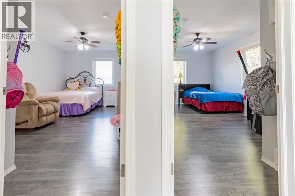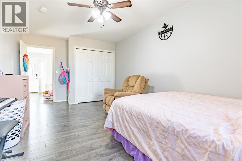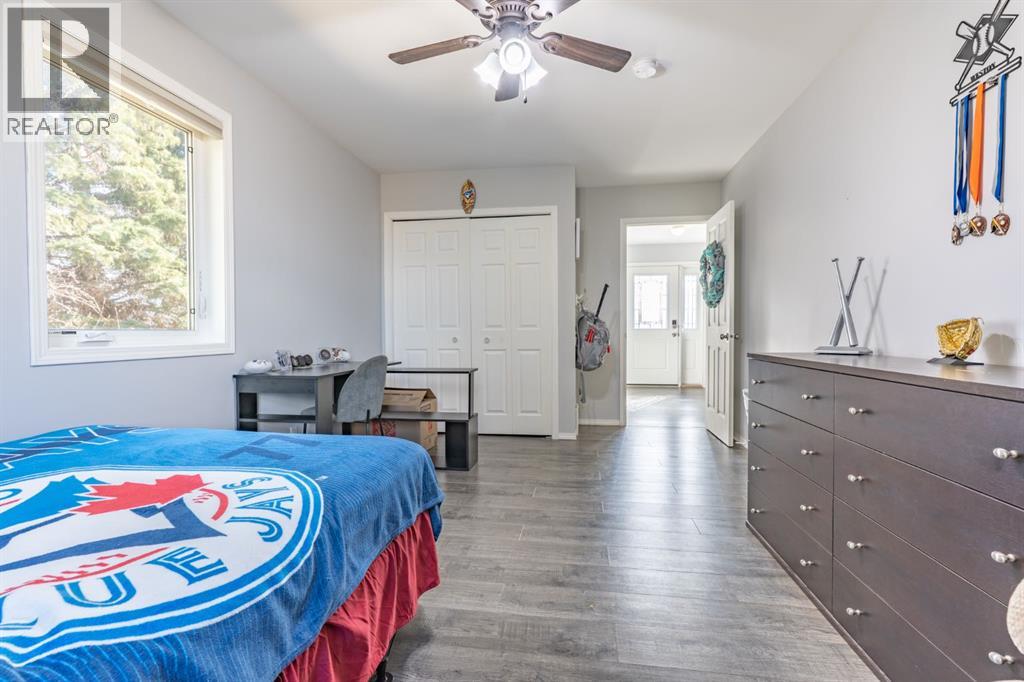 If you’ve been dreaming of wide open skies and peaceful prairie views without sacrificing convenience, this beautiful acreage may be exactly what you’ve been waiting for. Tucked away just 6 minutes from the city limits of Medicine Hat, this peaceful 4.94 acre acreage welcomes you with a long driveway, mature trees, and a sense of privacy that instantly sets the tone for country living. Step up onto the expansive deck and take in the incredible prairie landscape stretching out before you. It’s the perfect place to enjoy your morning coffee, host summer BBQs, or simply relax and watch the wide open skies that make acreage living so special. Inside, the home offers 1,871 sqft of living space, including a thoughtfully designed addition completed in 2016, all conveniently laid out on one level. A spacious entryway welcomes you in with plenty of room for coats, boots, and even a small sitting or play area where you can enjoy the natural light coming through the windows. Just off the entry is the laundry room, while the hallway leads to the bright kitchen and dining area that creates a warm and functional gathering space. The adjoining living room features vaulted ceilings, a cozy gas fireplace, and a built-in counter area, perfect for a laptop workspace or organizing daily life. Down the hall you’ll find 4 bedrooms plus an office, including the primary bedroom with its own ensuite, along with three additional bedrooms and a full bathroom. At the end of the home is a functional mudroom that opens to the deck, complete with a walk-in closet for additional storage. The property also features a 21 x 16 attached oversized single garage AND 23 x 29 double detached garage with radiant heat. The home is serviced by a cistern for household water and SMRID irrigation for the yard. Additional features include two furnaces, central air conditioning, composite decking and a large patio area. The perfect setup for horses, ponies and chickens! A private slice of prairie living, just min utes from the city. (id:63190)
