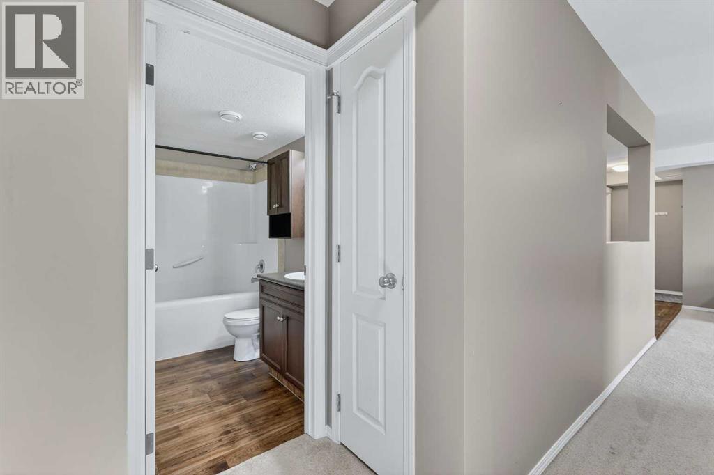 Experience carefree living in this adorable and affordable 2 bedroom unit in Bayside Villas. This ground floor unit offers convenient single level living with no stairs for those looking for accessible living. Plus it includes a covered patio area that is ideal for enjoying the outdoors while still being protected from the elements. Your pets will love it too - pets are welcome in this complex with board approval. This bright and sunny unit is spacious with an open layout. The large kitchen has plenty of cupboard and counter space and an opening in the wall between the kitchen and living room allows for lots of natural light. The kitchen is open to a nice sized dining area and is right next to your comfortable living room where you’ll enjoy a large window and direct access to your outdoor space. There are 2 bedrooms down the hall as well as a 4 pc bath with tub. You’ll love the convenience of in-suite laundry in this really large laundry room that also gives you extra room for storage. Plus there is additional storage space in the utility room. The high efficiency furnace is roughed in for air conditioning making it an easy addition in the future. There is one assigned parking stall conveniently located right in front of the unit plus ample visitor parking. Don’t worry about bringing your snow shovel because your condo fees include snow removal as well as common area maintenance, heat, insurance, parking (including power to your stall to plug in during winter,) reserve fund contributions, water and visitor parking. Bayside Villas is ideally located close to everything you need. Shopping, dining, recreation facilities, schools, parks, pathways and more. This unit is part of the Town of Strathmore’s Perpetual Affordable Housing (PAH)Program and buyers must be pre-approved. Ask agent for more details on this program. You’re going to love living here. (id:63190)
