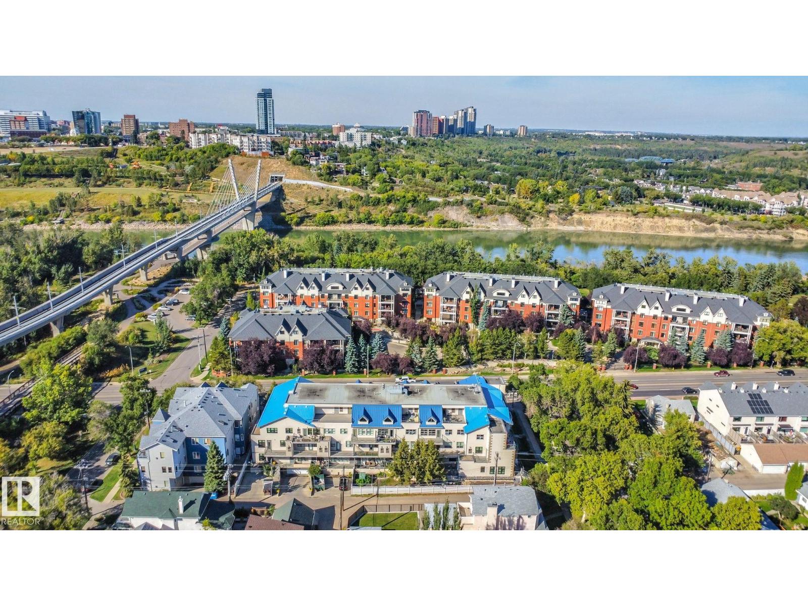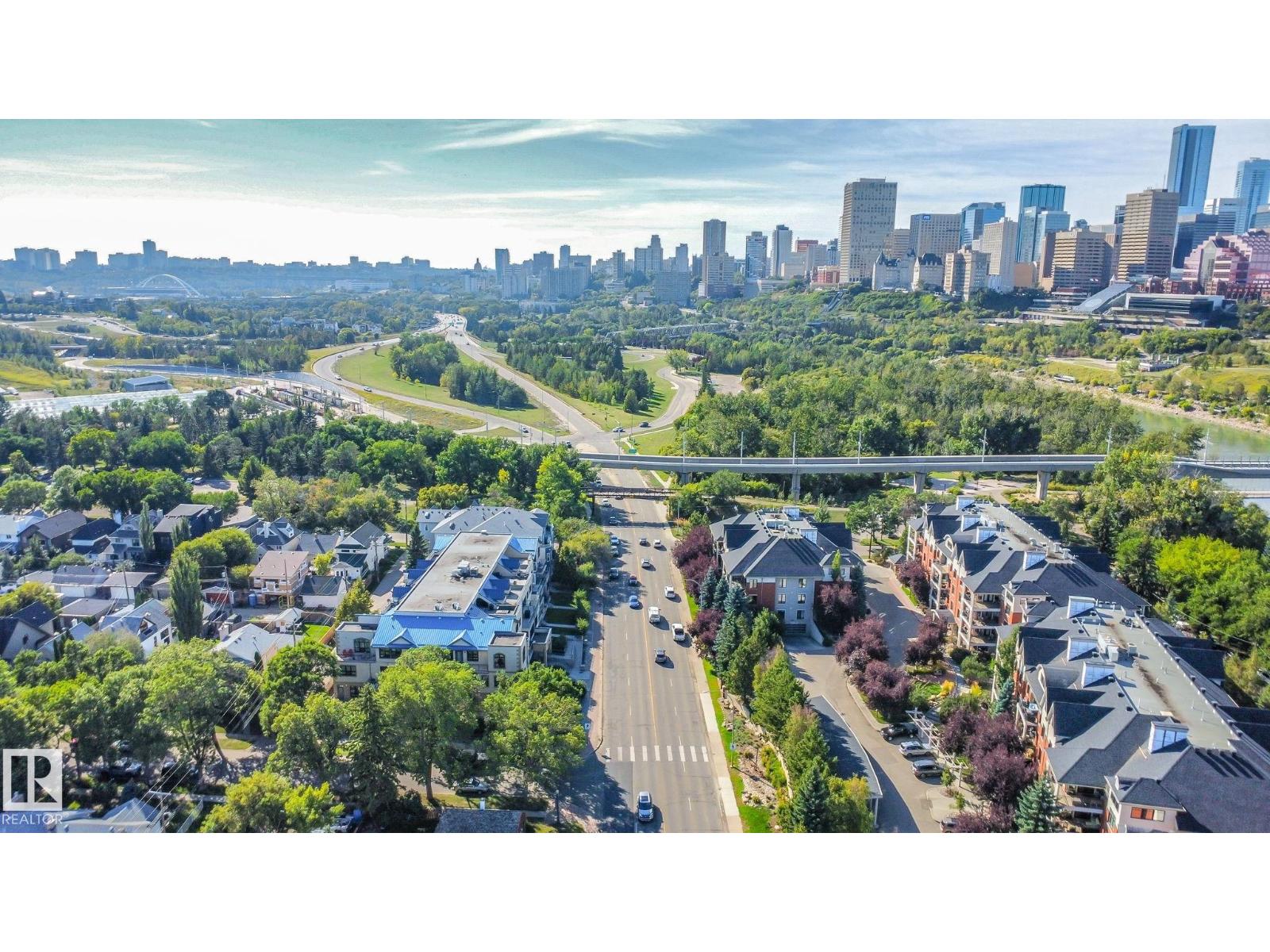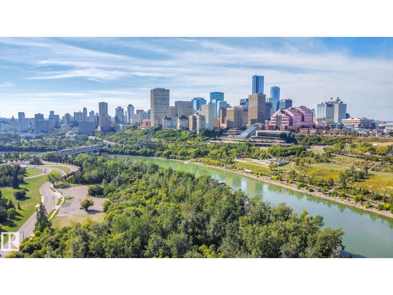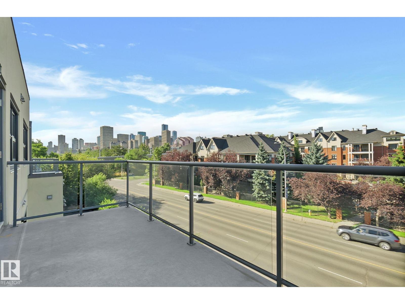 Experience elevated city living in this stylish 2-bedroom executive condo with flexible loft space and spectacular rooftop patio overlooking the Edmonton skyline. Ideally located just steps from the LRT, Muttart Conservatory, the North Saskatchewan River Valley, walking trails, parks, and downtown, this home offers the perfect blend of urban convenience and outdoor lifestyle. The main level features two spacious bedrooms, two full bathrooms, in-suite laundry, and a sleek modern kitchen with granite countertops & stainless steel appliances. Upstairs, the versatile loft provides the perfect space for a home office, fitness area, or additional lounge. The PRIVATE ROOFTOP PATIO is a true highlight, offering an incredible setting to relax or entertain while taking in panoramic city views. Upstairs, the large storage room has been converted into a high-end walk-in closet, ideal for clothing, shoes, and seasonal storage. One titled heated underground parking stall included. This property has it all! (id:63190)