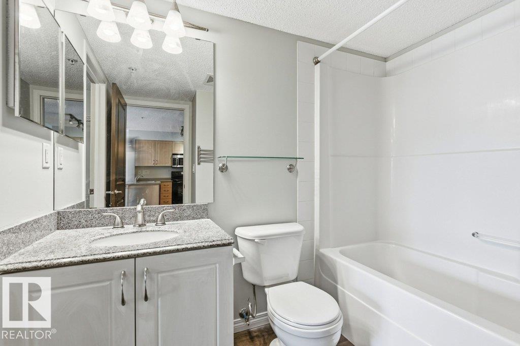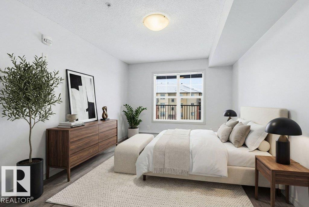 Great value in this modern 1 bedroom condo. Step up to the 3rd floor of Rutherford Village. This unit features an open concept layout with newer vinyl plank flooring throughout. The kitchen features modern appliances, a functional layout and ample counterspace. There is a great space for your dining table and all the room you would need for your home entertainment setup in the living room. Step onto the sizeable balcony complete with a natural gas hook up. The primary bedroom has a walk through closet and a pocket door into the main 4pc bathroom. This unit also features in-suite laundry, heated underground parking and a storage locker in the parkade. This building is located steps away from shopping and quick access onto the Anthony Henday for a convenient commute. (id:63190)