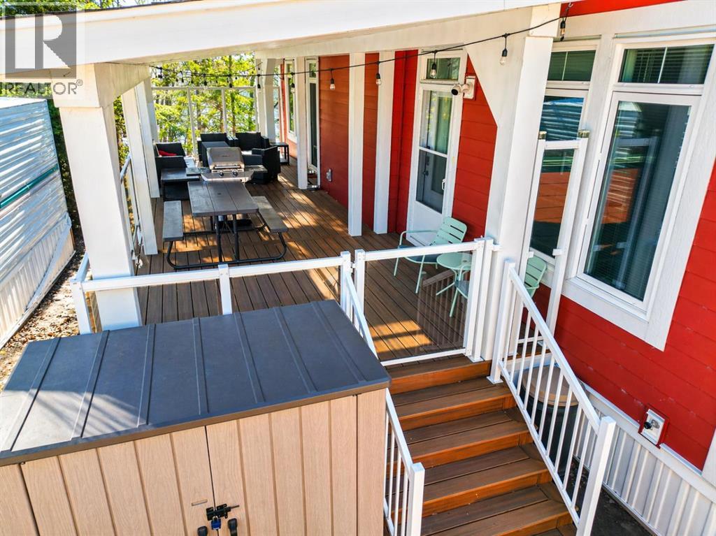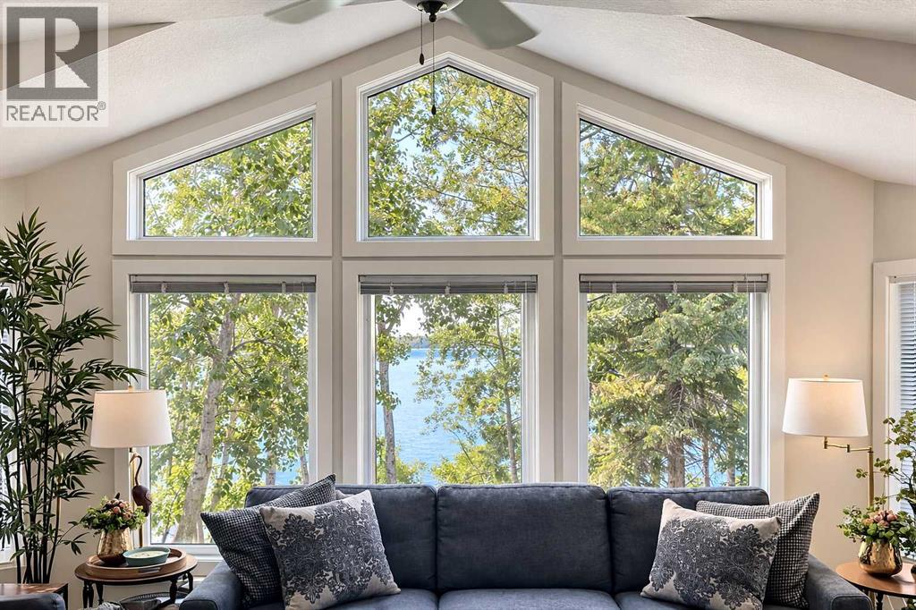 Welcome to this beautiful rare lakeside home at Gleniffer Lake Golf & Country Club ~ located on a large lot in Phase 1, which is a 3 season Phase. Situated right on the shores of Gleniffer Lake, this property offers stunning lake views, mature trees for privacy and wind protection, and direct access to the water.Built in 2016 with quality 2x6 construction and drywall interior, this well-maintained home offers a bright and spacious layout designed to maximize the views. The open-concept kitchen and living room feature large windows overlooking the lake, filling the home with natural light. The kitchen includes a large center island perfect for entertaining, while the cozy propane fireplace creates a warm and inviting living space. This lake home features 2 bedrooms, 2 bathrooms, and a separate laundry room with stacked washer and dryer, offering comfort and convenience for full-time summer living or a relaxing weekend getaway.Step outside onto the large covered deck with glass railing and new composite decking (2023)—the perfect place to enjoy your morning coffee while taking in the peaceful Gleniffer Lake views. Under the home and deck you will find ample storage space for outdoor gear and lake toys. A finished bunkhouse provides additional sleeping space for guests, making this property ideal for hosting family and friends. A pathway leads directly from the property down to the lake, allowing easy access to all the recreation Gleniffer Lake has to offer, including boating, fishing, and swimming. Included with the property are: fridge, stove, built-in dishwasher, microwave hood fan, stacked washer and dryer, window coverings, propane fireplace, beds and mattresses, BBQ, bunkhouse and beds, ceiling fan, storage shed, propane pig, and two fobs. If you’re looking for a lake property at Gleniffer Lake Golf & Country Club with incredible views, extra guest space, and one of the largest lots in Phase 1, this is a must-see opportunity. (id:63190)