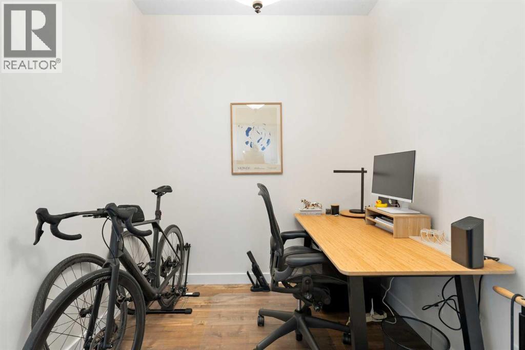 Top-floor end unit with unobstructed downtown views in the heart of Bridgeland. This quiet and secure 2 bedroom, 2 bathroom plus den condo offers the perfect blend of style, function, and location. With no one living above you, enjoy added privacy and natural light throughout the bright, open floor plan. Hardwood floors run through the main living spaces, while the kitchen features granite countertops, ample cabinetry, a breakfast bar, pantry, and stainless steel appliances including a new dishwasher. The den with French doors provides an ideal home office or flexible bonus space. The open concept living and dining room includes a cozy corner gas fireplace and a west-facing balcony with stunning city views. The two spacious bedrooms are located on opposite sides of the unit, ideal for privacy. The generous primary suite features a walk-through closet and 4-piece ensuite, while the second bedroom sits conveniently beside the main 4-piece bath. Additional features include in-suite laundry with full-size washer and dryer, assigned parking and storage locker in the secure heated parkade, and pet-friendly bylaws with board approval. Located steps to Bridgeland’s best restaurants, cafes, shops, the C-Train, river pathways, and more, this home offers the ultimate inner-city lifestyle. (id:63190)