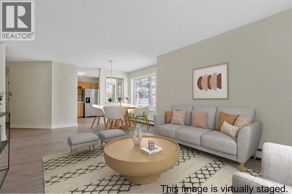 Discover comfortable living in this premium ground-floor end unit filled with natural light from numerous windows. The unit has all new vinyl plank flooring, new baseboards, and fresh paint throughout, giving the home a clean and updated feel. With 1,070 sq ft, this bright home has 2 bedrooms and 2 bathrooms. The large primary bedroom has two double closets and an ensuite bathroom. A second bedroom works well for a roommate, guests, or hobbies, along with a 4-piece main bathroom nearby. The kitchen is easy to move around in, with plenty of storage and natural light, and the dining area has a west-facing window overlooking the treed green space. The living room provides a comfortable area to relax or gather with friends and family, with easy access outside. Step outside to a covered porch with a gate that opens directly to the beautifully maintained grounds, creating a peaceful and convenient outdoor space. A practical layout provides an in-suite laundry room with plenty of storage and central vacuum for easy cleaning. This unit also comes with a titled underground parking space and an assigned storage locker.Dreamview Village is a welcoming 55+ condominium community known for its supportive atmosphere and strong sense of connection. The beautifully landscaped grounds feature a pond, walking paths, and beautiful mountain and city views. Residents enjoy a secure, well-managed building where pride of ownership is clear throughout the property. The complex has a car wash bay, garbage chutes on each floor, and plenty of visitor parking. A guest suite is available for visiting family and friends.The clubhouse is a wonderful gathering place for residents. Spend time in the library, attend exercise classes, join hobby groups such as knitting or crafts, or enjoy board games and bingo. The space also has billiards, shuffleboard, and tables for puzzles beside large south-facing windows overlooking the grounds and mountain views. Activities at the clubhouse are well atten ded and create great opportunities to connect with neighbours. A well-equipped woodworking workshop is available for residents who enjoy working with their hands. Social events bring neighbours together, with Friday afternoon potlucks and regular social hours.Public transportation is located just steps from the building entrance, making it easy to get around. Everyday conveniences are close by. The Melcor YMCA, Crowfoot Library, grocery stores, restaurants, shopping, pharmacies, gas stations, and a movie theatre are all about 5 minutes away. This home provides comfortable living in a vibrant and welcoming community.Schedule your appointment today to experience everything this wonderful home and community have to offer. (id:63190)