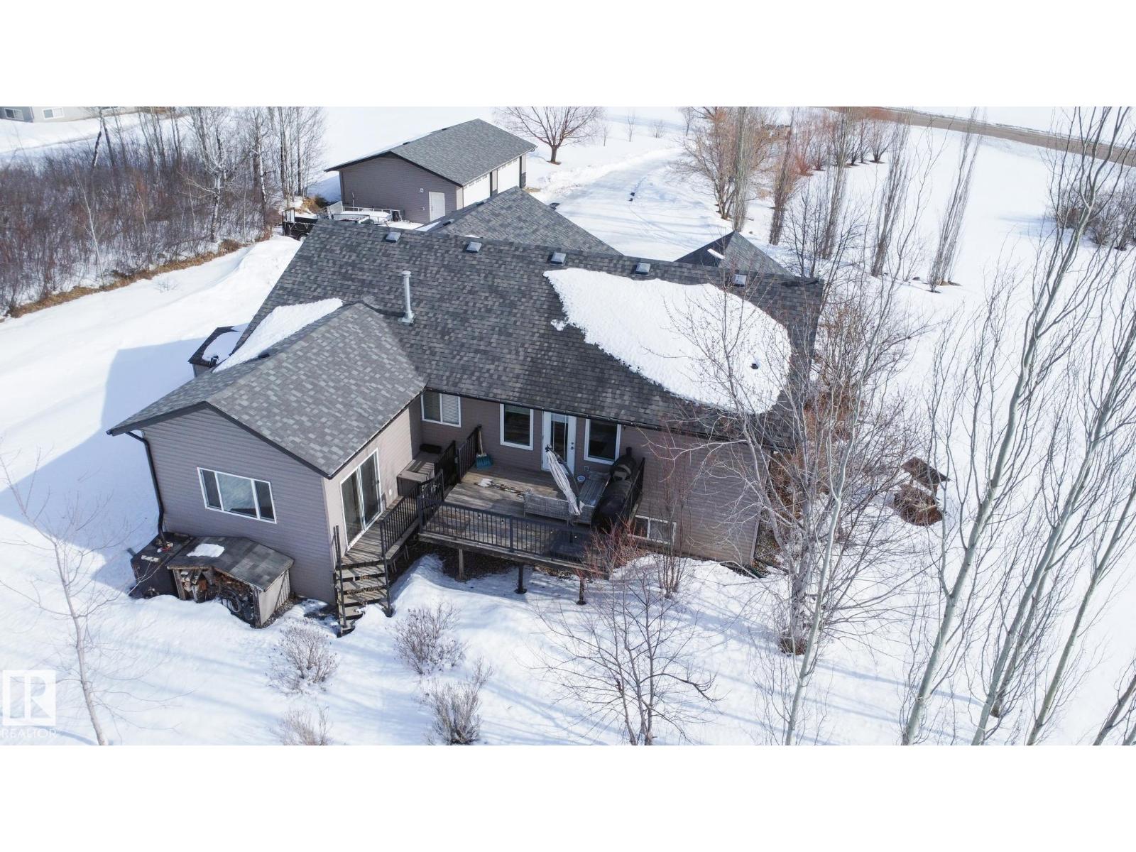 Welcome to this beautifully maintained 1600+ sq ft home situated on 3.2 acres in the desirable Moose Lake Meadows subdivision, just minutes from town and close to the golf course. Offering the perfect blend of space, comfort, and functionality, this property is ideal for families, hobbyists, or anyone seeking the tranquility of acreage living with convenient access to amenities. Inside, you’ll find 4 bedrooms plus a den and 3 bathrooms, including a 3-piece ensuite off the primary bedroom. The home features vaulted ceilings that create an open, airy feel, along with generous living and entertaining spaces. Downstairs, the wet bar provides the perfect setup for hosting family and friends, while the dedicated hot tub room offers a private retreat to relax year-round. The exterior is just as impressive with a triple attached garage and a 27’ x 42’ detached garage, giving you ample space for vehicles, toys, storage, or a workshop. A paved driveway leads to the property with a beautifully landscaped yard. (id:63190)