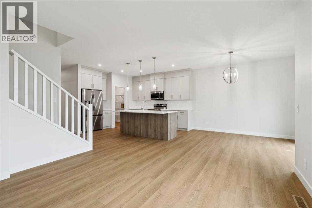 Welcome to the Pineview by NuVista Homes, located at 85 Southborough Square in the growing Southbow community of Cochrane. This thoughtfully designed 2,040 sq. ft. two-storey home offers 3 bedrooms and 2.5 bathrooms with a spacious and functional layout. The open-concept main floor features luxury vinyl plank flooring, a modern kitchen with quartz countertops and tall upper cabinetry, and a bright dining and great room anchored by an electric fireplace with full tile surround. A flex room on the main level adds versatility for a home office or additional living space. Upstairs, the primary bedroom includes a walk-in closet and private ensuite, alongside two additional bedrooms and a central media room. Additional highlights include 9’ foundation and main floor ceilings, a convenient side entrance for future basement development potential, an oversized garage with 2’ extra width, and an 11’ x 10’ rear deck perfect for outdoor entertaining. (id:63190)