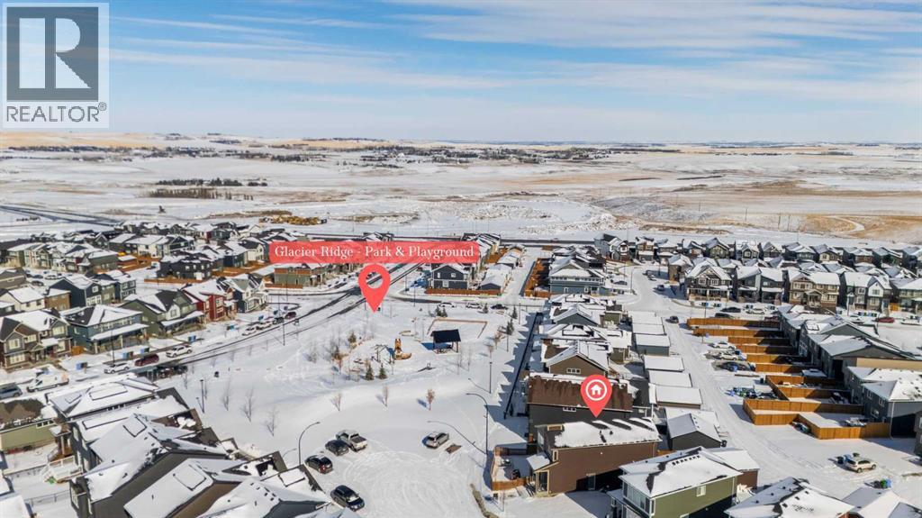 Welcome to 76 Edith Mews NW, superbly located on a large lot in a quiet cul-de-sac adjacent to green space and a park.This thoughtfully designed home offers over 2600 sqft of useful living space, including a fully finished basement with a separate side entrance, providing excellent flexibility for extended family or future possibilities. A standout feature of the main floor is the dedicated office space, which can easily function as an additional bedroom if needed, along with the convenience of a full bathroom on the main level.The bright and inviting open-concept layout features high ceilings, engineered hardwood flooring, and a stylish electric fireplace that anchors the main living area. The modern kitchen is designed for both functionality and style, showcasing quartz countertops, stainless steel appliances, and a large central island—perfect for everyday living and entertaining.Upstairs, you will find a spacious primary retreat complete with a walk-in closet and a private ensuite, along with two additional generously sized bedrooms ana d convenient second-floor laundry.Additional highlights include four full bathrooms, air conditioning, and a detached oversized double-car garage.Located in the vibrant northwest community of Glacier Ridge, residents enjoy access to scenic parks, playgrounds, and walking paths, as well as a central community centre called “The Village.” Once complete, residents will enjoy year-round amenities, including additional playgrounds, a splash park, a hockey rink, an event room, and more—creating a place for everyone to gather, play, and celebrate.The community also offers convenient proximity to schools, shopping, dining, and major roadways including Shaganappi Trail, Sarcee Trail, and Stoney Trail, making commuting throughout the city quick and convenient.This move-in-ready home offers an exceptional combination of modern design, functional living space, and an outstanding location—perfect for families looking to enjoy one of Ca lgary’s newest and most desirable communities.Feel free to check out the 3-D virtual tour link and or call your favourite realtor today to book a private tour . (id:63190)