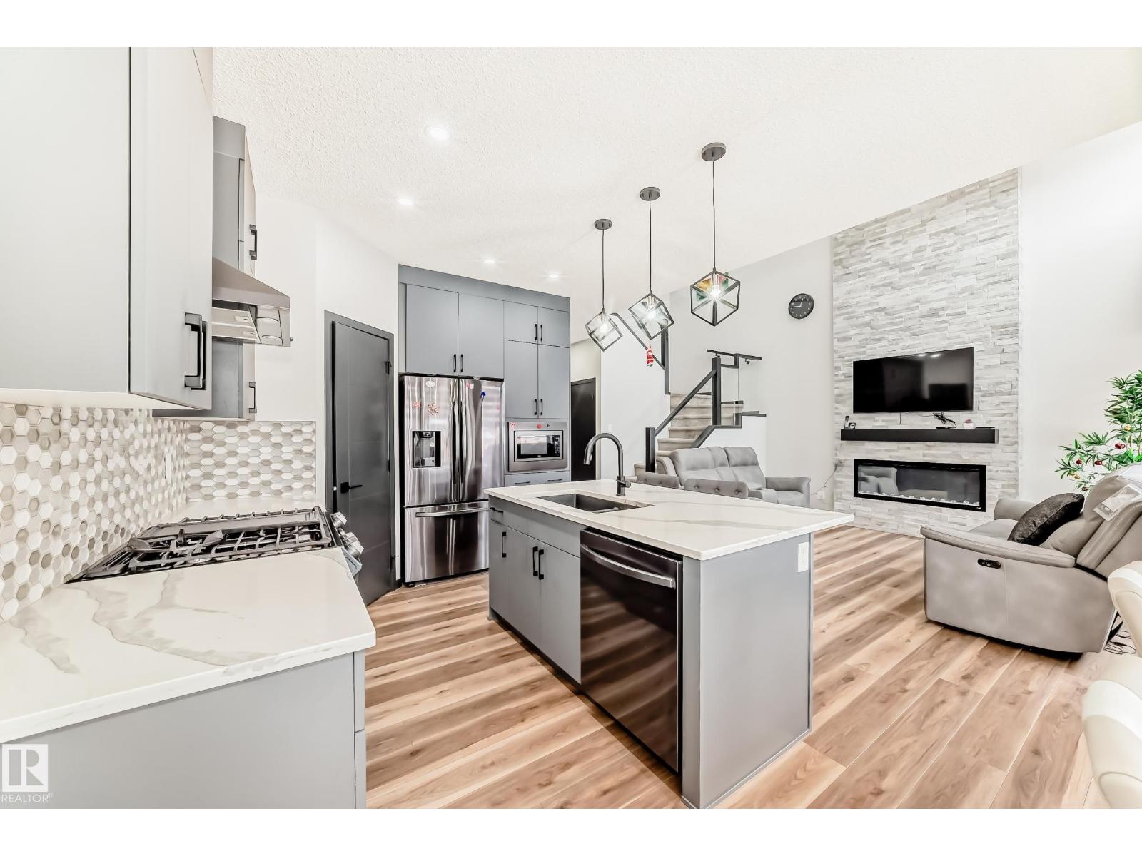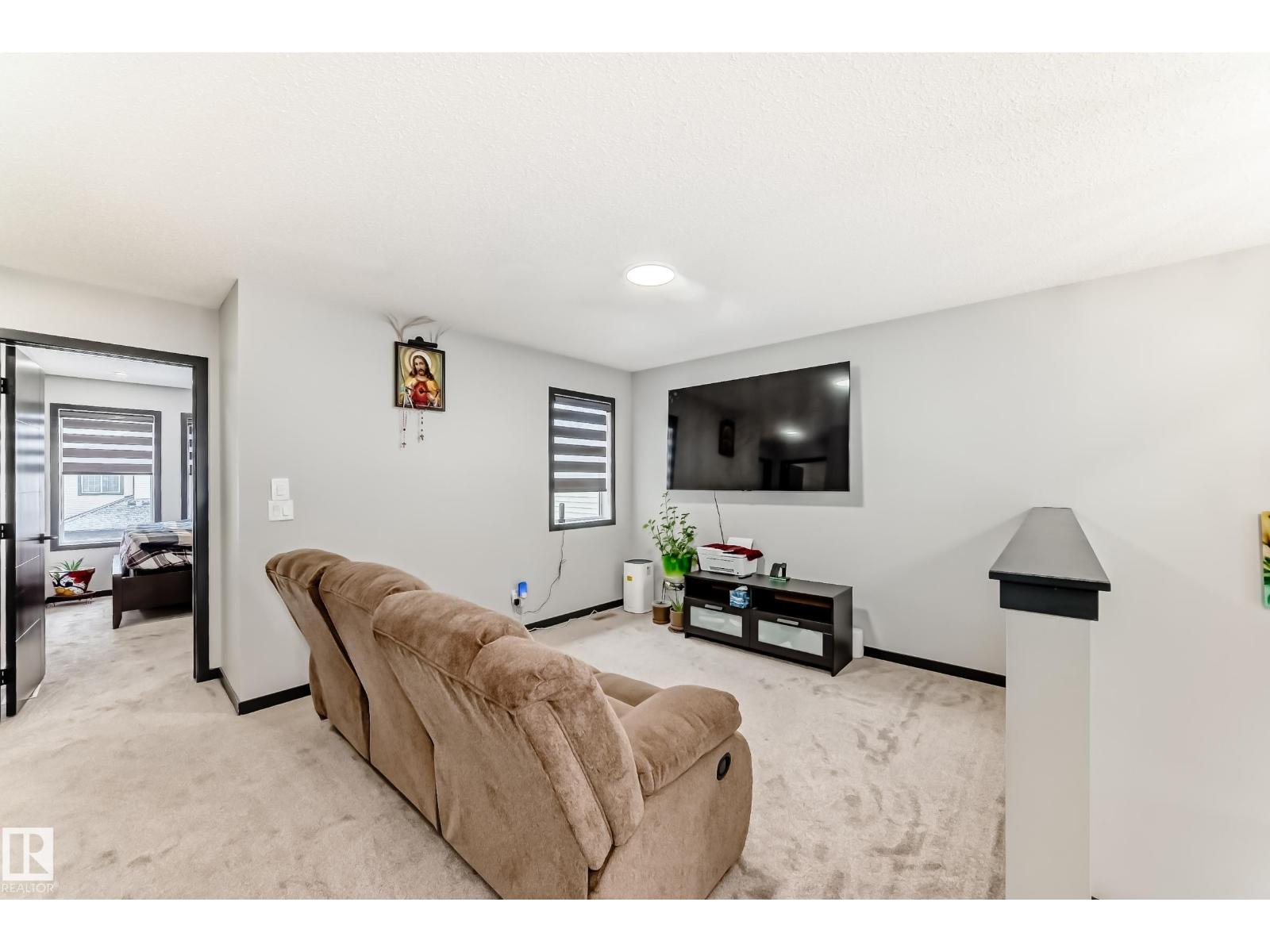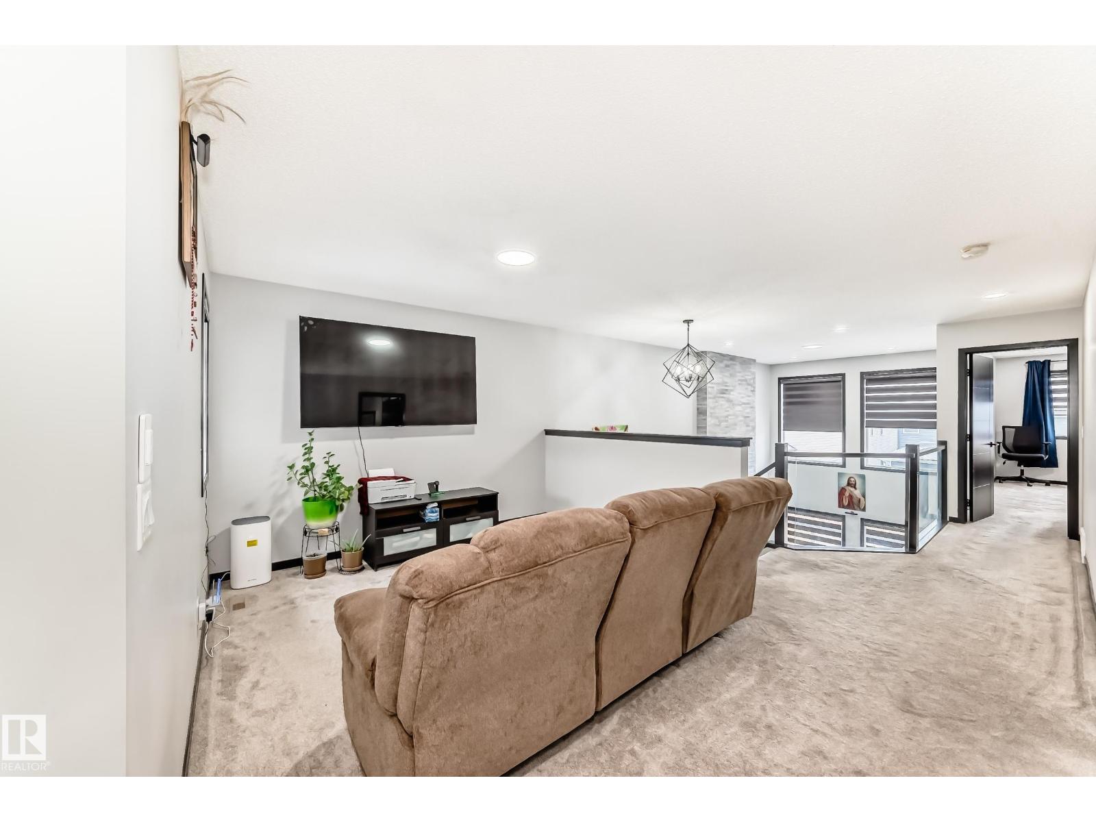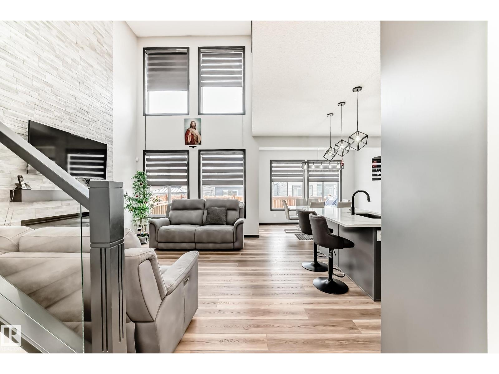 Welcome to this gorgeous single family home tucked away on a quiet street in the vibrant community of WALKER in Southwest Edmonton. The main floor features a large living room with OPEN TO BELOW design, designer kitchen with black appliances, bedroom and a full bathroom. The upper floor features a spacious bonus room, primary bedroom with 5pc ensuite, two other bedrooms, common bath and laundry. This home offers many upgrades CENTRAL AIRCONDITIONING, GLASS RAILING, HIGH END APPLIANCES, CULLUGHAN WATER PURIFIER, QUARTZ THROUGHT and much more. The basement with a SEPARATE ENTRANCE is ready for your future development plans. The beautiful backyard with a large deck is ideal for enjoying the evenings. This property is conveniently located to shopping, public transportation, schools, Anthony Henday and all other amenities. (id:63190)