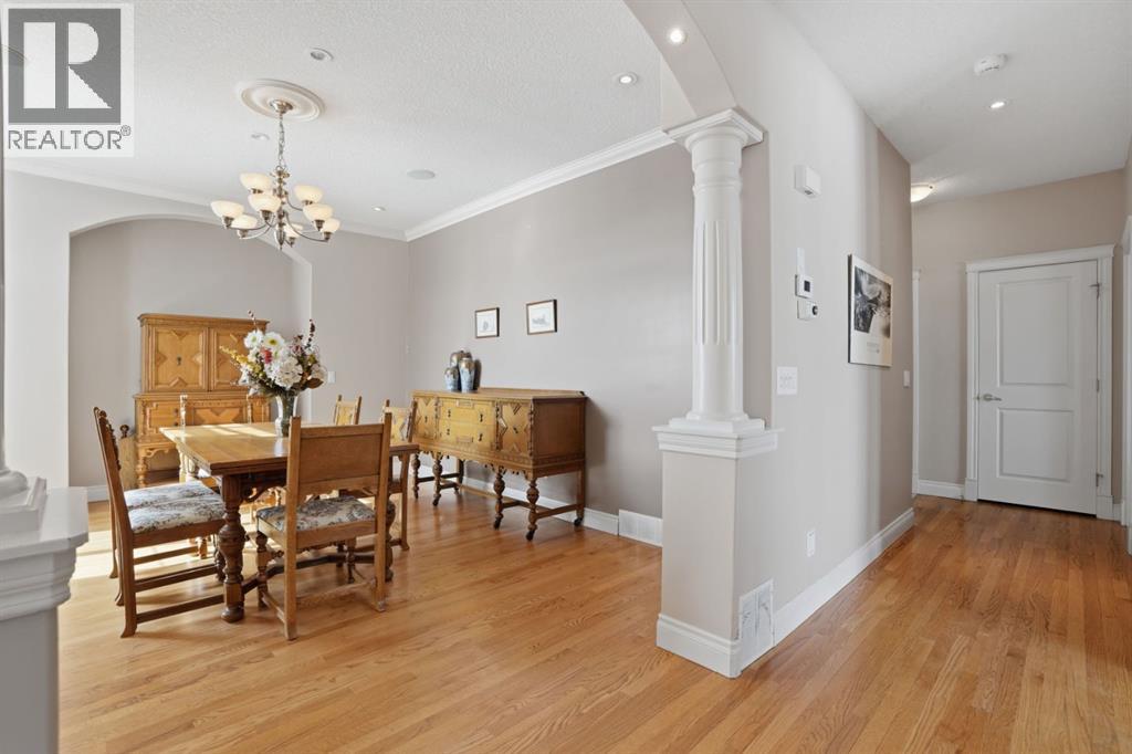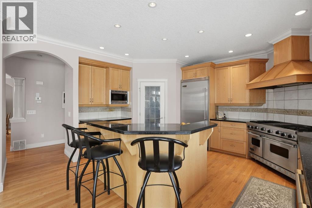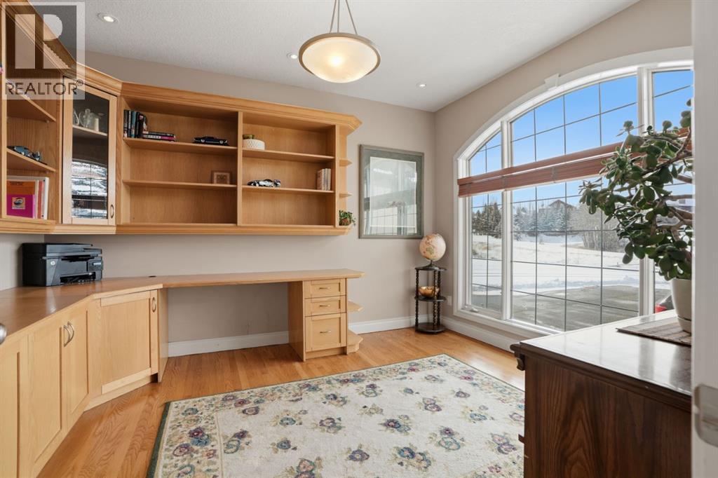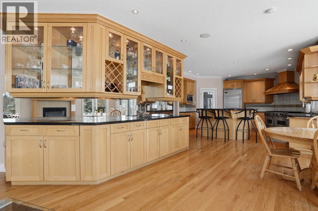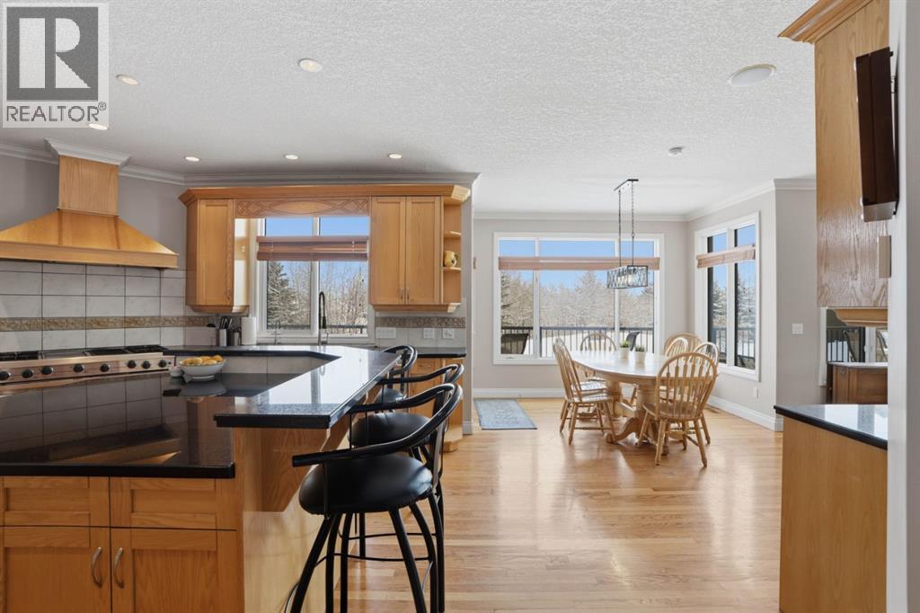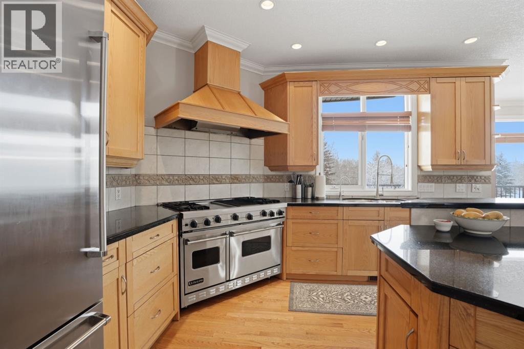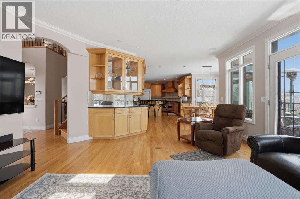 Welcome to 327 Rodeo Ridge in the prestigious golf course community of Springbank Links. This spectacular 7-bedroom estate home is nestled on a stunning private, treed lot, offering the rare combination of acreage-style privacy with significantly less upkeep, just minutes from Calgary. Thoughtfully designed across three fully finished levels, this exceptional home offers expansive and refined living space ideal for growing families and multi-generational living. The bright open-concept layout showcases rich hardwood flooring, elegant wrought iron railings, two gas fireplaces with stately mantles, and an abundance of natural light throughout. At the heart of the home is a beautifully situated gourmet kitchen featuring granite countertops, warm wood cabinetry, upgraded stainless steel appliances, and numerous built-ins. A convenient walk-through pantry connects seamlessly to the main living areas, while the bright breakfast nook overlooks the peaceful, private backyard. Entertain effortlessly in the formal dining room, gather in the inviting living spaces, or host guests at the main-floor wet bar. A main floor den provides the perfect setting for a private home office. Upstairs, the home offers four spacious bedrooms, including a luxurious primary retreat complete with a spa-inspired 4-piece ensuite featuring a jetted tub. Dual laundry areas on the upper and lower levels provide added everyday convenience. The fully developed walkout basement further enhances the home’s versatility, featuring a complete mother-in-law suite (illegal), two additional bedrooms, and generous living space—perfect for extended family, guests, or independent living arrangements. Additional highlights include a heated triple-car garage, quality craftsmanship throughout, and a mature, beautifully treed setting that offers exceptional privacy, fully landscaped with Hot Tub and Fire pit. Located in the highly sought-after Springbank Links community, residents enjoy championship golf, a pi ckleball court, year-round dining, and winter trail networks for walking, jogging, and cross-country skiing, all within the neighborhood. Families will appreciate the close proximity to Springbank Schools (K–12) with bus service available. Springbank High School was ranked in the top 5% of Alberta high schools by the Fraser Institute in 2024, making this an outstanding location for families focused on academic and athletic excellence. Just minutes away, Bingham Crossing offers convenient shopping, dining, and everyday services, while downtown Calgary remains an easy commute, allowing you to enjoy peaceful estate living without sacrificing city accessibility. This is a rare opportunity to own an elegant estate home in one of Springbank’s most prestigious golf course communities—where privacy, lifestyle, and convenience come together beautifully. (id:63190)