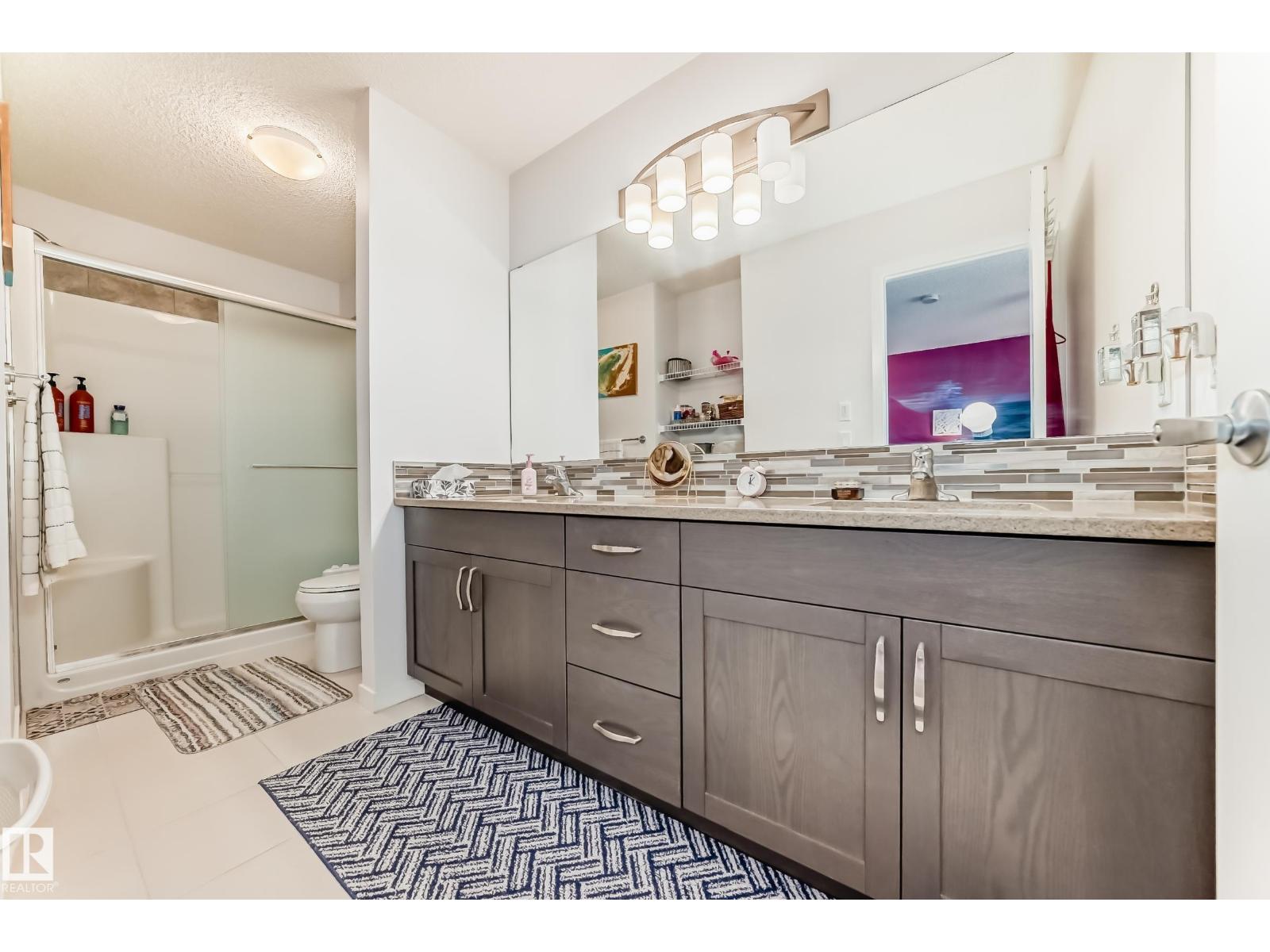 Welcome to this beautifully maintained duplex in the desirable community of Cavanagh! This well-designed home features 3 bedrooms, 3.5 bathrooms, & a fully finished basement. The main floor showcases a bright open-concept layout with 9 ft ceilings, a spacious living room, dining area, & a functional kitchen featuring quartz countertops, a gas stove, modern appliances, & a stylish glass door pantry. The upper level features a primary bedroom with a walk-in closet & private ensuite, along with two additional bedrooms, a full bath, upper-floor laundry, & a bonus room for added convenience. The fully finished basement provides additional living space with a den, living area & full bath, ideal for guests. Enjoy the landscaped & fully fenced backyard with a large deck & no neighbours at the back for added privacy. Complete with a double attached garage & located close to schools, parks, public transportation, & shopping amenities—an excellent opportunity for first-time buyers in a family-friendly neighbourhood. (id:63190)