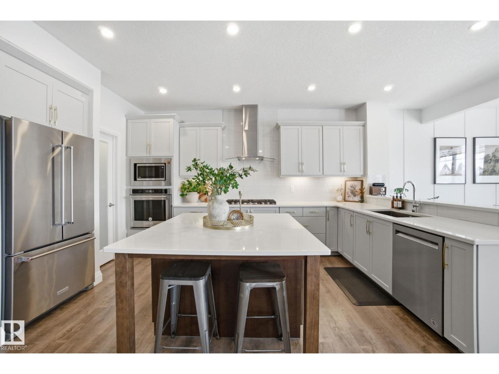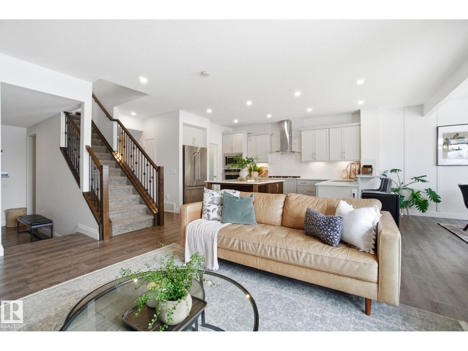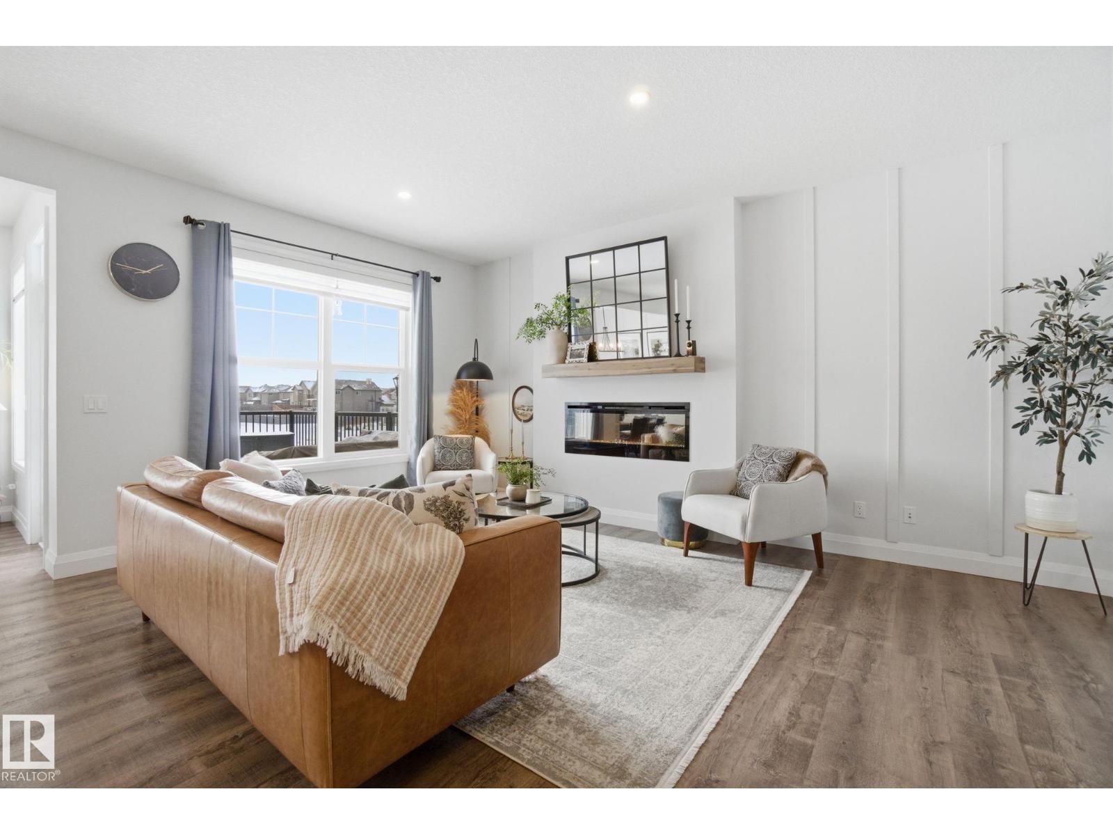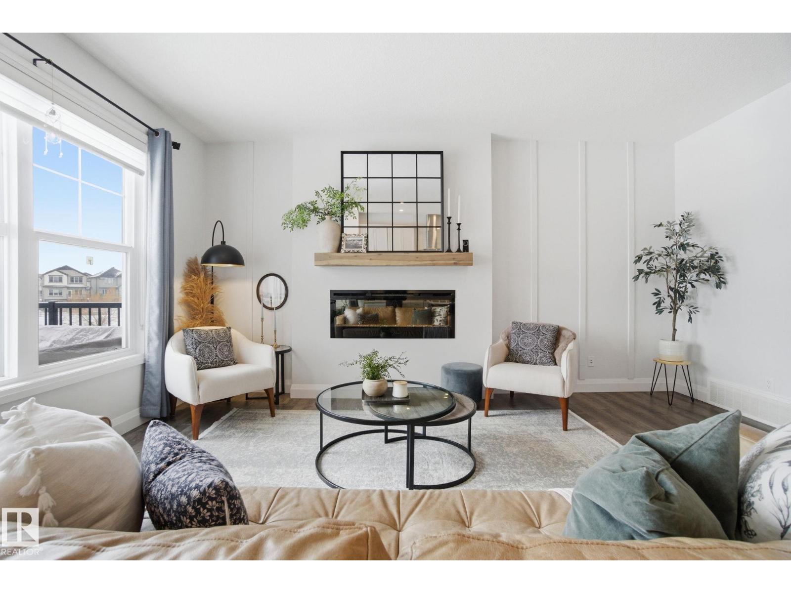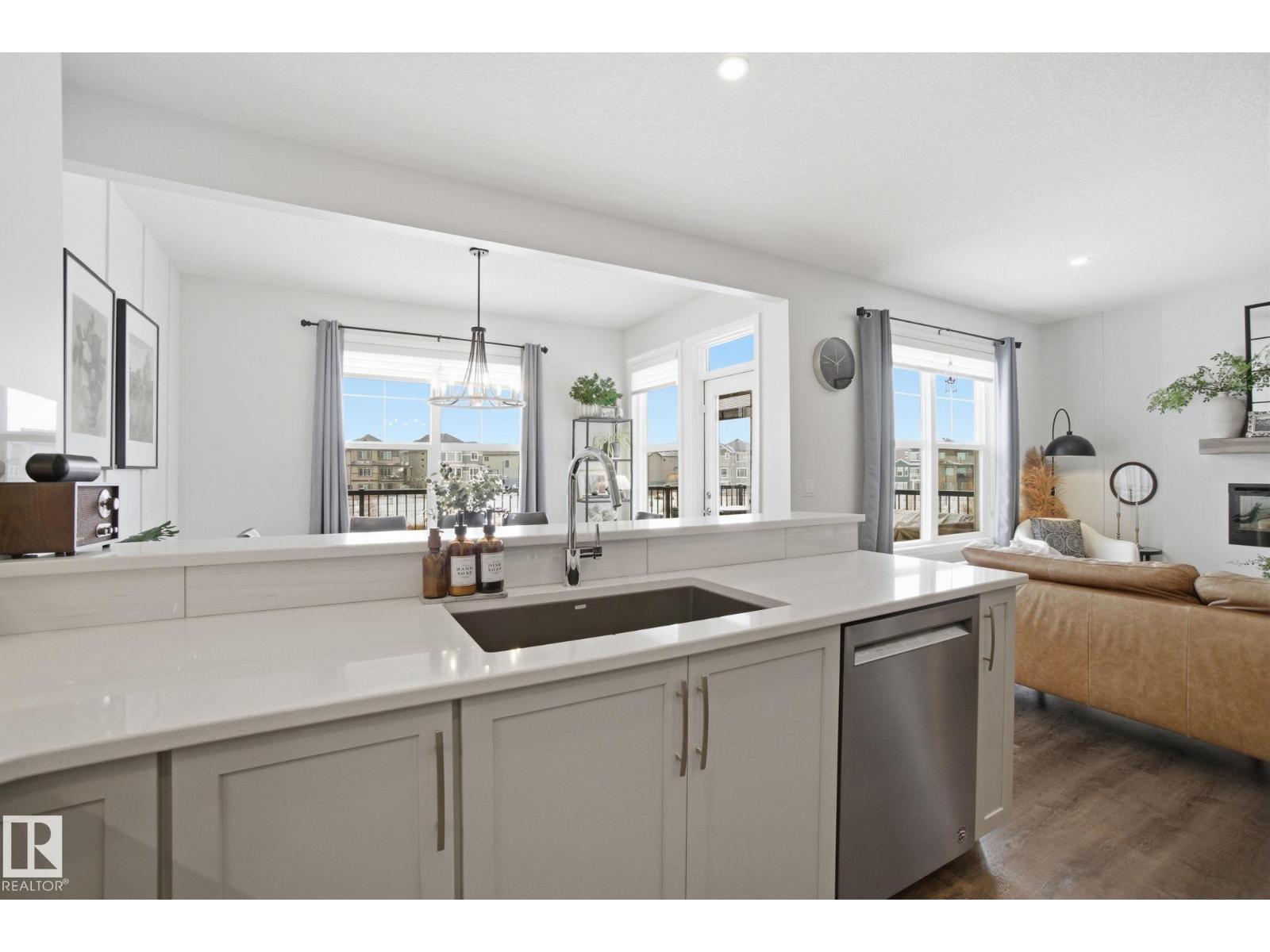 Discover this beautiful, move-in ready home in desirable Desrochers. Nestled on a quiet cul-de-sac and backing onto paved walkways and a picturesque pond, this 2,206 sq. ft. unit features an open-concept main floor flooded with natural light from south-facing windows. The bright white kitchen is appointed with stainless steel appliances and opens to a raised deck—perfect for morning coffee or entertaining. Upstairs offers three bedrooms, two full baths, a bonus room and convenient laundry. The finished walk-out basement expands your living space and leads to stamped concrete, a professionally landscaped yard and a cozy fire pit. A double attached garage with built-in shelving provides excellent storage. Enjoy easy access to shopping, groceries, restaurants, fitness studios, schools and parks. Exceptional curb appeal, thoughtful upgrades and a peaceful pond-side setting make this home a must-see. (id:63190)