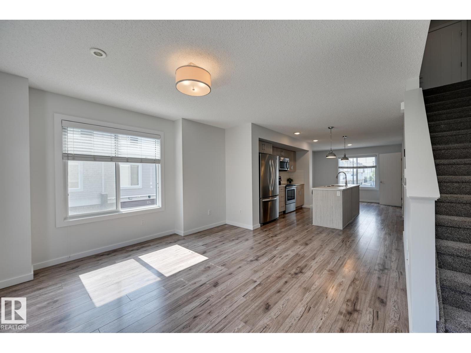 Welcome to this lovely townhouse in Laurel Landing! This is a perfect property for first-time home buyers & investors. This 2 bedroom/2.5 bath townhome is an END UNIT and boasts an open concept layout, ample natural light, & wide-plank flooring throughout the main level. The kitchen is spacious w/ stainless steel appliances, pantry, full height cabinetry, subway tile backsplash & large island. The upper level offers 2 bedrms and full bathroom. Primary bedroom includes a 4-pc ensuite bathroom with dual sinks. Single attached garage for convenience and security. Higher energy efficiency w/tankless hot water & heat recapture for a lower utility bill. This well maintained complex offers visitor parking & is walking distance to tons of amenities. Located close to shopping, a community playground, community league, newer rec centre, schools & public transit. (id:63190)