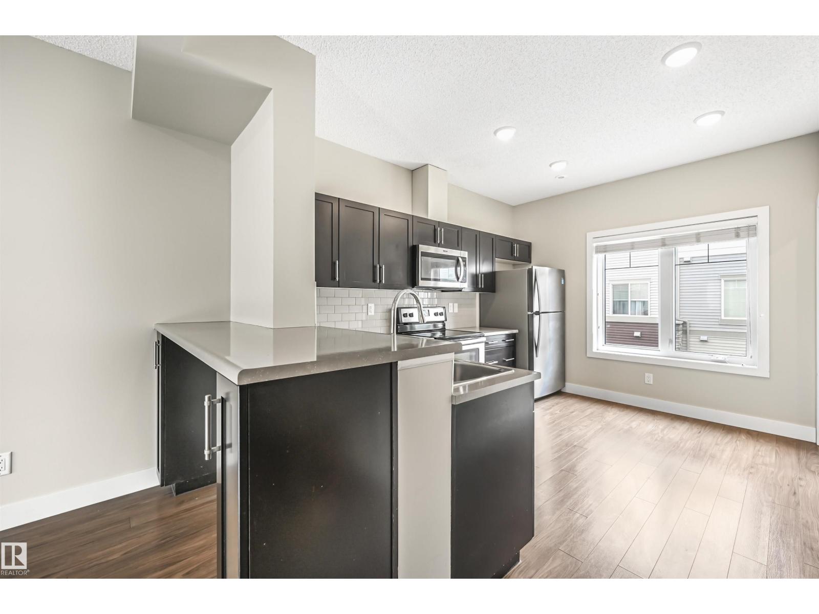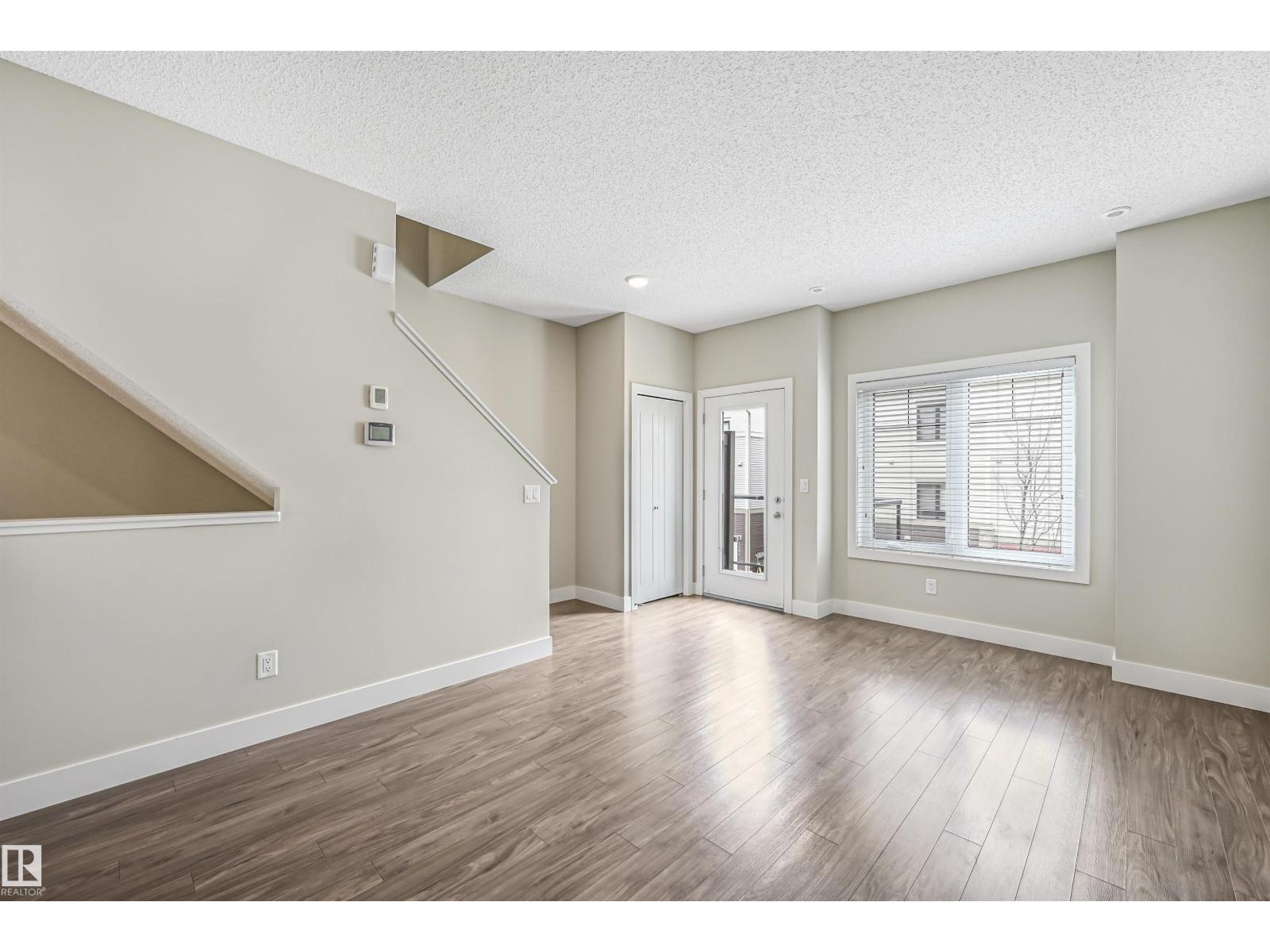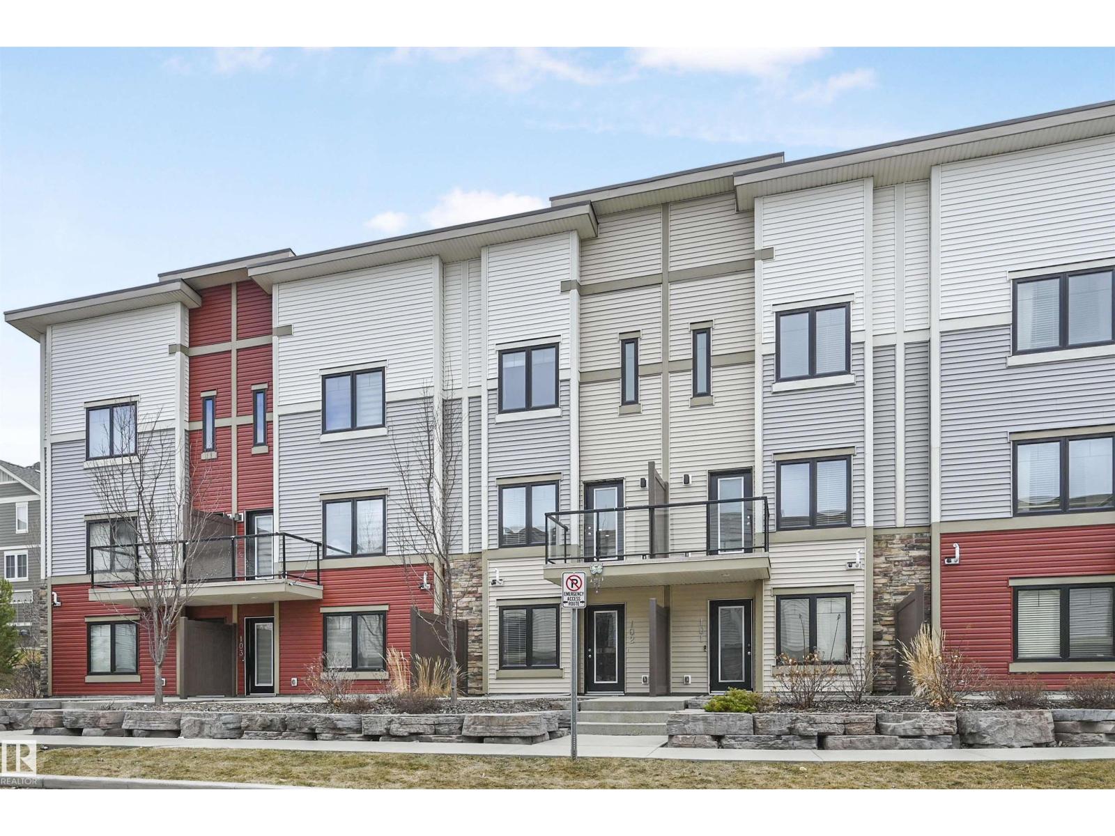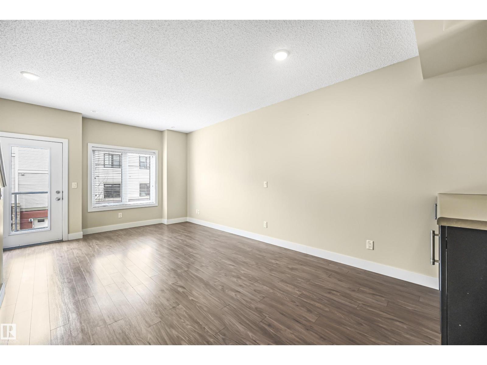 Welcome to this well-maintained spacious 2 bedroom/2.5 bath townhome in the desirable Walker. Main floor boasts a roomy open concept layout, 9' ceilings & quality finishings. The functional chef's kitchen includes S/S appliances, walk-in pantry & eating bar. Living room features an attached balcony to enjoy the fresh air & green space. The main level is equipped with a half bath & vinyl flooring. On the upper level, you'll find two well-sized bedrooms. Primary bedroom has 3pc ensuite & walk in closet. A second full bathroom and laundry closet complete the upper level. Flex room on ground level is perfect for a home office space or extra storage. Other features include a single attached garage and energy-efficient mechanical including tankless hot water for a lower utility bill. This well maintained complex offers visitor parking & is conveniently located close to shopping, walking trails & lake. Quick proximity to Anthony Henday, South Common, schools & public transportation. A must see! (id:63190)
