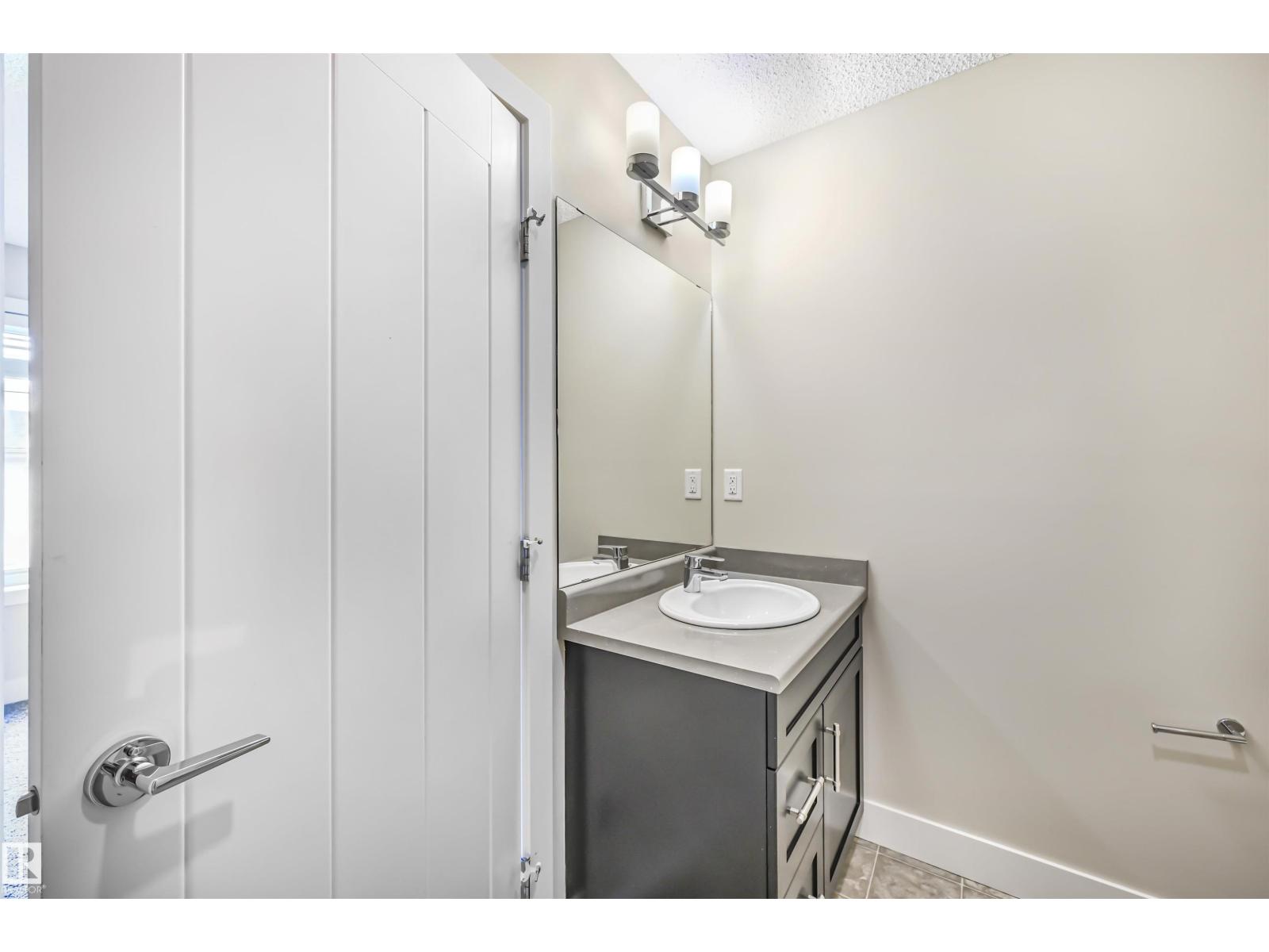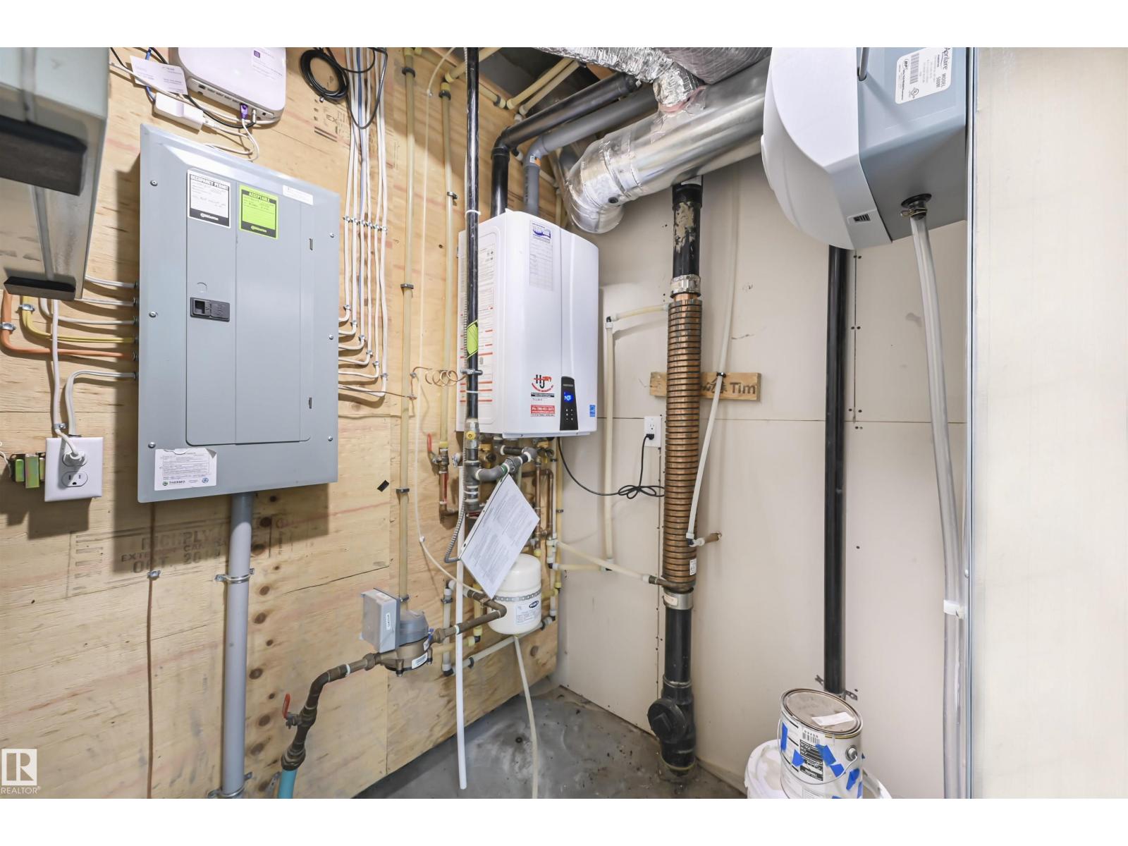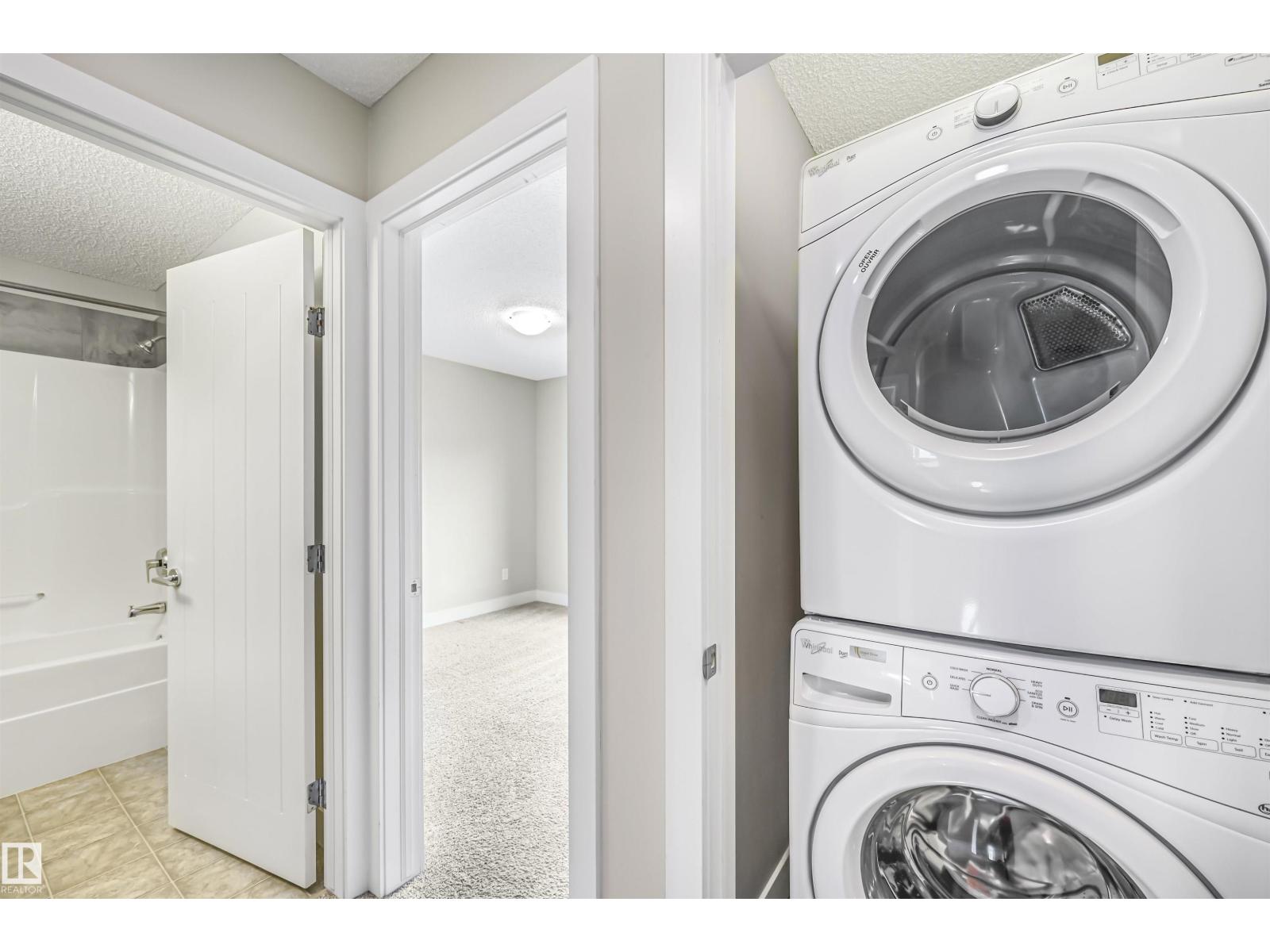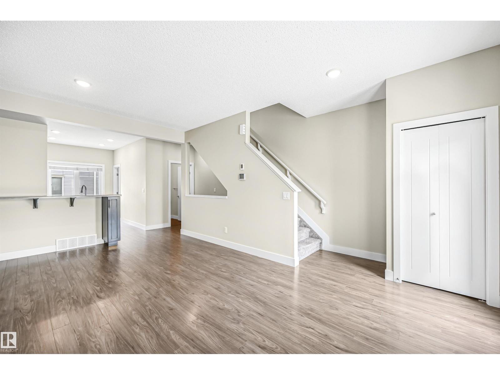 Welcome to this well-maintained spacious 2 bedroom/2.5 bath townhome in the desirable Walker. Main floor boasts a roomy open concept layout, 9' ceilings & quality finishings. The functional chef's kitchen includes S/S appliances, walk-in pantry & eating bar. Living room features an attached balcony to enjoy the fresh air & green space. The main level is equipped with a half bath & vinyl flooring. On the upper level, you'll find two well-sized bedrooms. Primary bedroom has 3pc ensuite & walk in closet. A second full bathroom and laundry closet complete the upper level. Flex room on ground level is perfect for a home office space or extra storage. Other features include a single attached garage and energy-efficient mechanical including tankless hot water for a lower utility bill. This well maintained complex offers visitor parking & is conveniently located close to shopping, walking trails & lake. Quick proximity to Anthony Henday, South Common, schools & public transportation. A must see! (id:63190)
