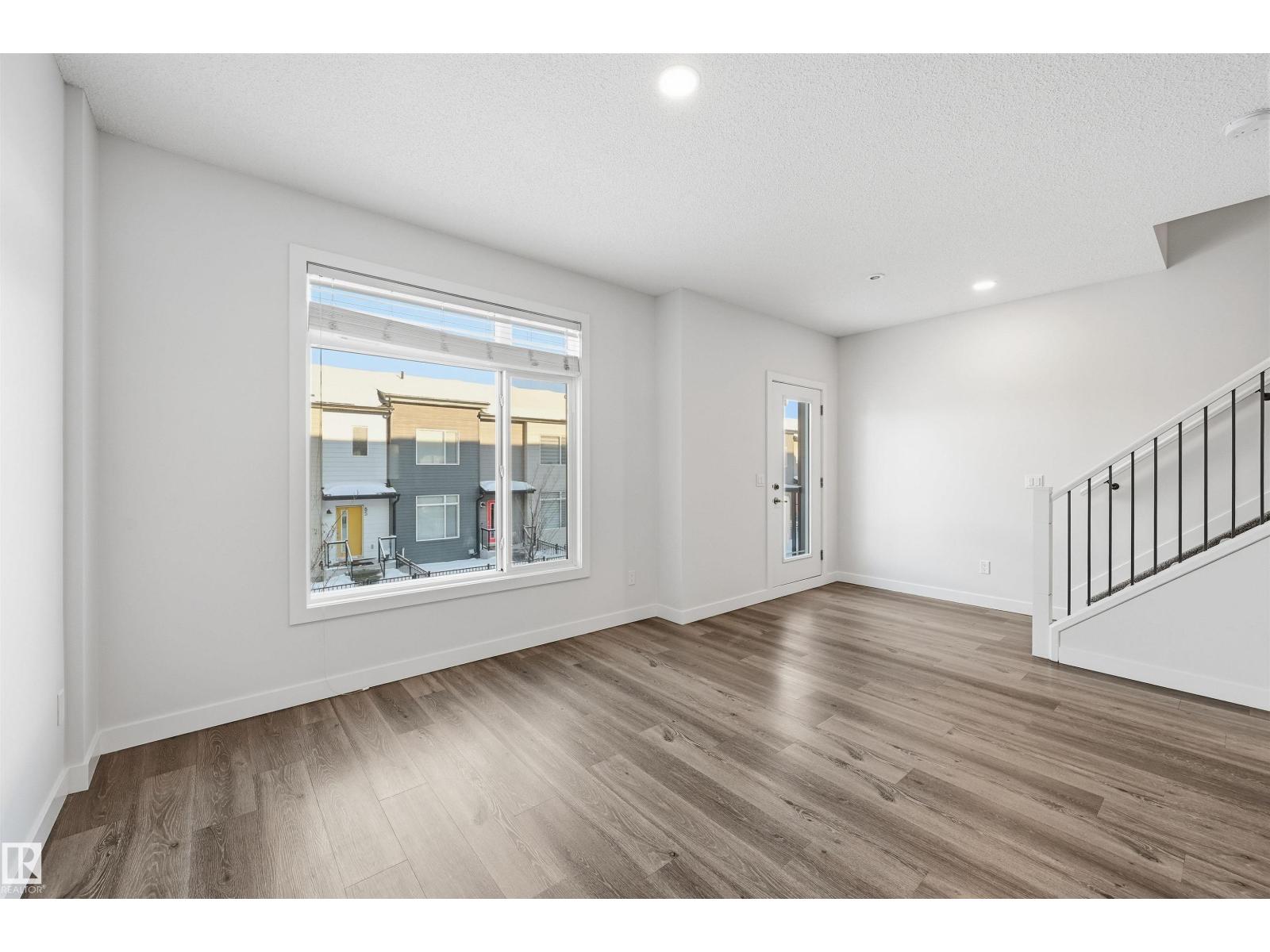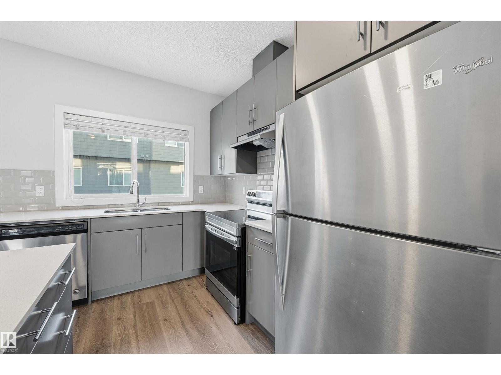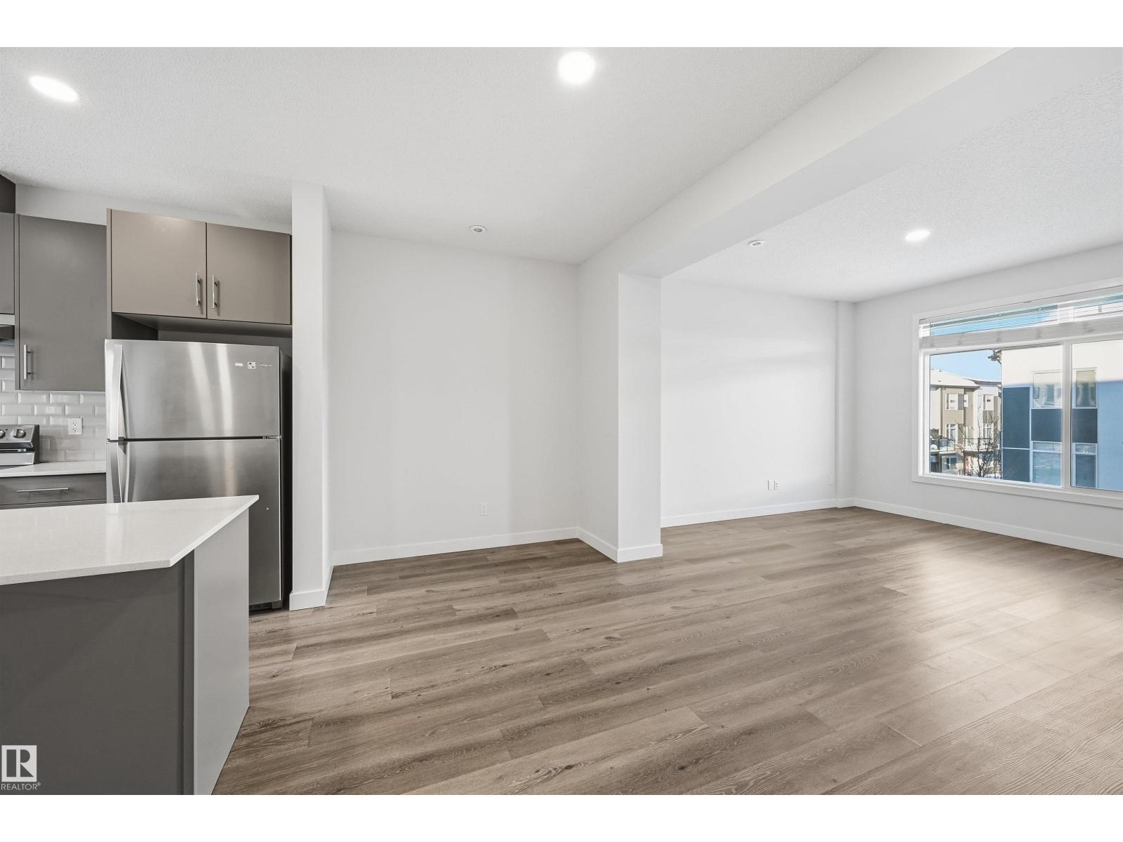 Bright, modern & spacious 3 bed/2.5 bath townhouse w/ double attached garage in the desirable Walker neighborhood. 1600 sf total living space. Perfect for 1st time home owners or investors! Main floor features 9' ceilings, vinyl plank floors & a roomy living rm filled with natural light. Kitchen offers a functional layout, stainless steel appliances, quartz countertops, tons of counter space, walk-in pantry, eating bar, & built in desk. Upper level also has 9' ceilings & large primary bedrm w/ 3pc ensuite & walk in closet. Two other well sized bedrms, 4 pc main bath & laundry complete this level. Ground floor flex room w/ large window is perfect for an office, play rm, exercise area, or extra storage space! Energy-efficient mechanical including HRV & tankless hot water for a lower utility bill. This well maintained complex offers visitor parking and nearby walking trails & lake. Conveniently close to shopping, schools & public transit. Quick access to commuter routes incl Henday! (id:63190)