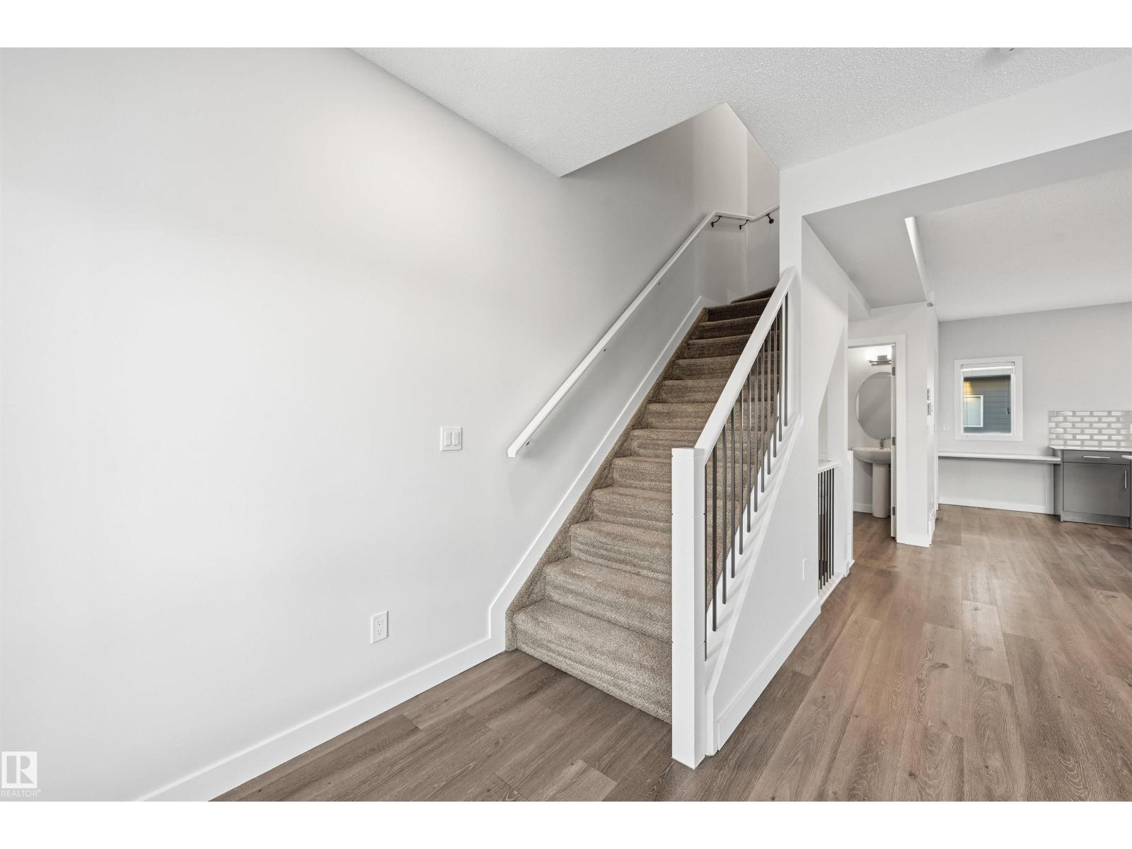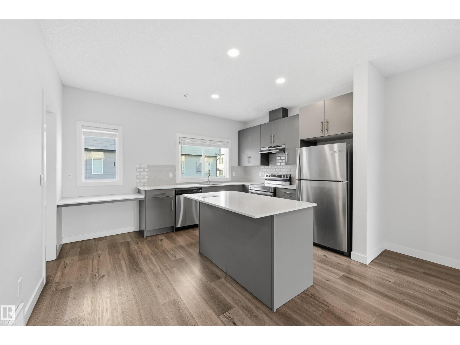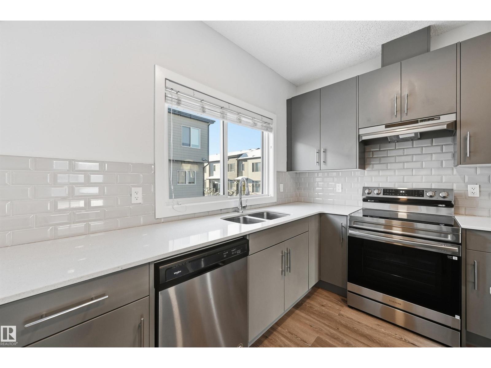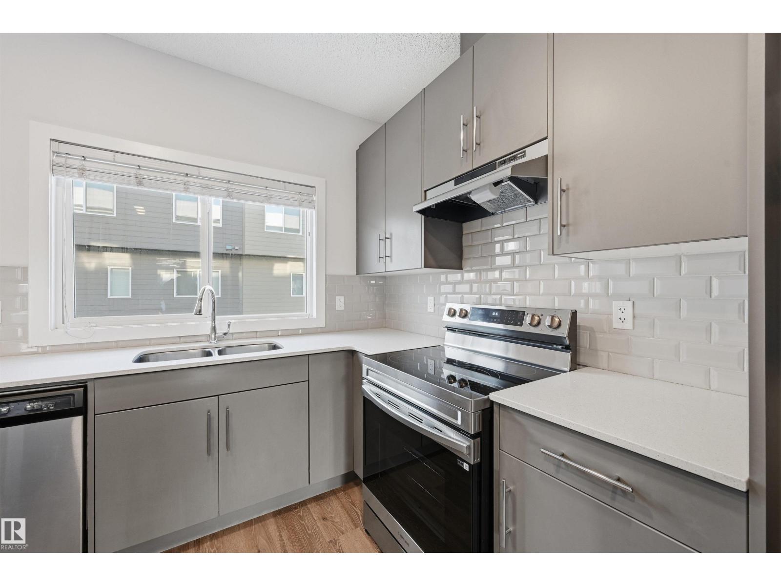 Bright, modern & spacious 3 bed/2.5 bath townhouse w/ double attached garage in the desirable Walker neighborhood. 1600 sf total living space. Perfect for 1st time home owners or investors! Main floor features 9' ceilings, vinyl plank floors & a roomy living rm filled with natural light. Kitchen offers a functional layout, stainless steel appliances, quartz countertops, tons of counter space, walk-in pantry, eating bar, & built in desk. Upper level also has 9' ceilings & large primary bedrm w/ 3pc ensuite & walk in closet. Two other well sized bedrms, 4 pc main bath & laundry complete this level. Ground floor flex room w/ large window is perfect for an office, play rm, exercise area, or extra storage space! Energy-efficient mechanical including HRV & tankless hot water for a lower utility bill. This well maintained complex offers visitor parking and nearby walking trails & lake. Conveniently close to shopping, schools & public transit. Quick access to commuter routes incl Henday! (id:63190)