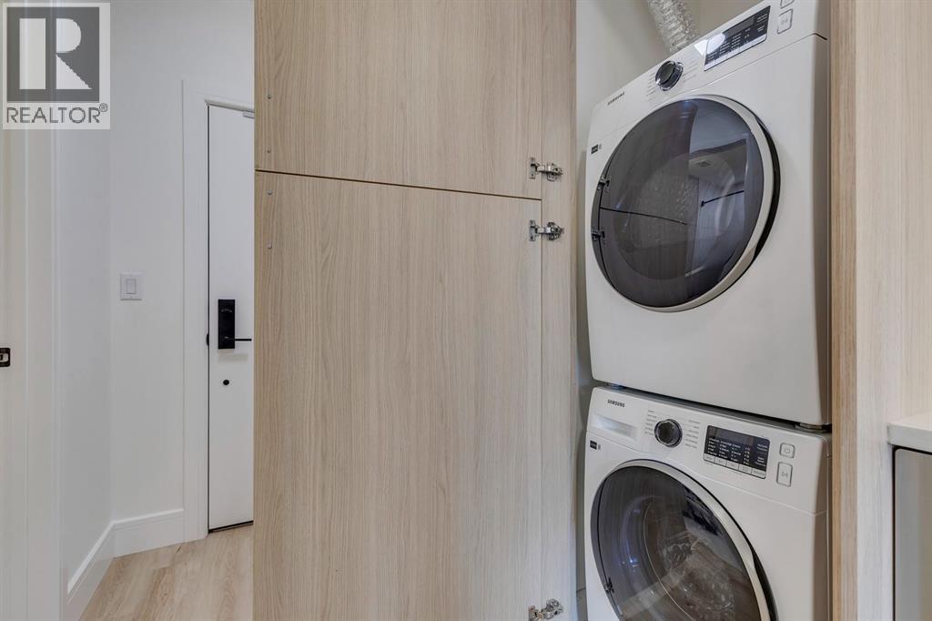 Welcome to The Rosa, a magazine-worthy corner unit condo in Dean's Landing that redefines modern living. This brand-new, never-occupied residence features 422.27 sq ft of thoughtfully designed space, boasting lofty 9' to 10' ceilings and an abundance of natural light from large windows. Step outside to your own private 56 sq ft balcony, perfect for hosting summer barbecues or enjoying a serene morning coffee. The chef-inspired kitchen offers ample countertops and a dedicated pantry, while the spacious bedroom accommodates a queen-size bed with ease, complemented by a large closet. Convenience is key with in-suite laundry facilities discreetly placed away from the living areas. The unit includes a titled parking stall, and the building is secured with heated underground parking, bicycle storage, and an electric charging stations. Nestled in Rohit's Deans Landing., The unit is just moments away from shopping and dining in the award-winning University District, as well as the University of Calgary,Market Mall, Children’s and Foothills Hospitals. Enjoy nearby parks, scenic pathways, schools, and recreation centers, making this the perfect home for students, professionals, and families alike. Experience the ultimate blend of style, comfort, and convenience in University District —your new place to call home awaits! Book to view! (id:63190)