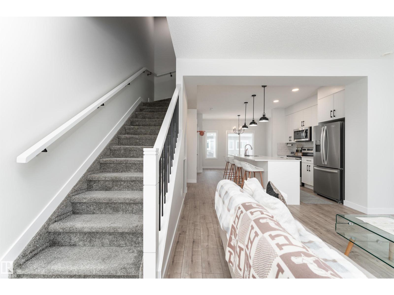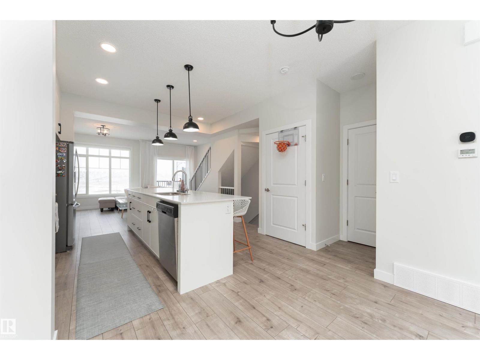 FIND YOUR PATH in one of the BEST LOCATIONS AND VIEWS in the complex. Tucked away on a quiet cul de sac with an open, unobstructed outlook, this 2023 Landmark Homes townhome is perfectly positioned to bring in natural light and a sense of space that’s hard to find. Offering 1,414 sq ft, this home features a DOUBLE ATTACHED GARAGE, 3 bedrooms, 2.5 bathrooms, and a versatile main floor den ideal for a home office or flex space. The modern kitchen showcases stainless steel appliances, while the second level offers 9 ft ceilings and upgraded metal stair railings. The spacious primary bedroom easily fits a California King plus a desk, complemented by two additional bedrooms and a 4 piece bath with upgraded tile. Steps to multiple schools, parks, daycare, and walking distance to shopping including Superstore, Shoppers, and future amenities. A rare opportunity to own a premium unit with a view you’ll appreciate every single day. (id:63190)