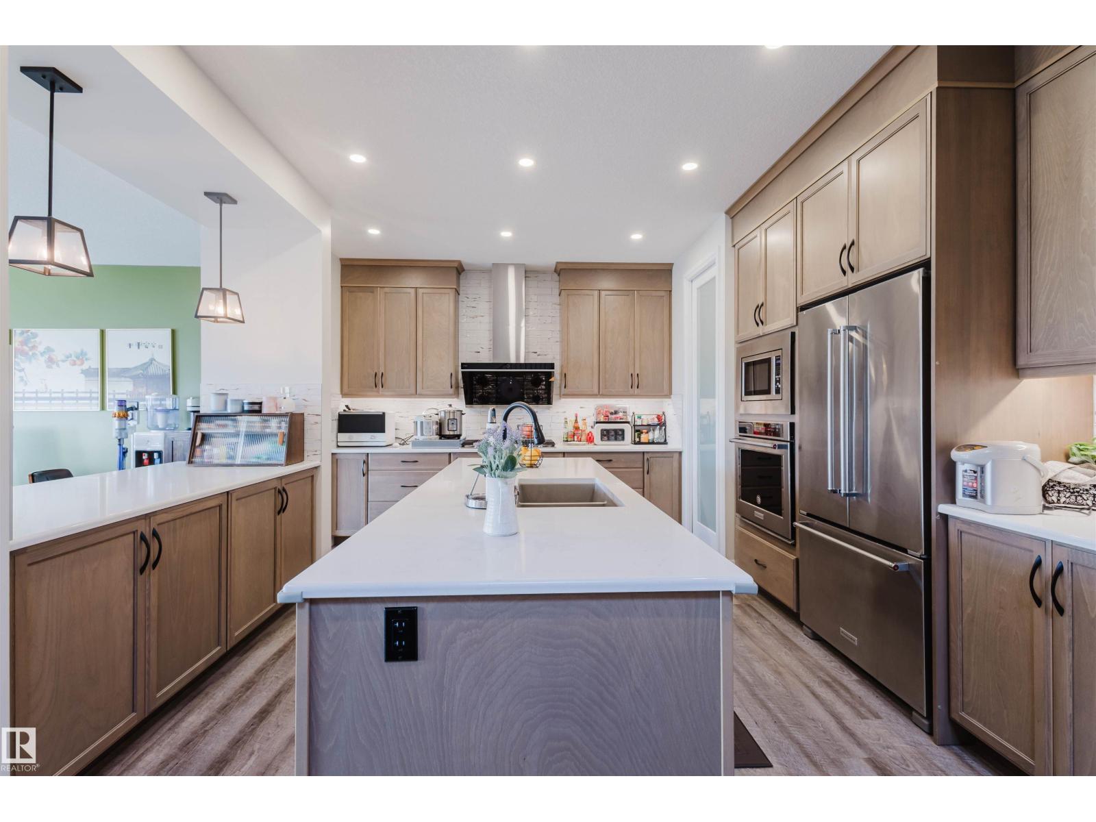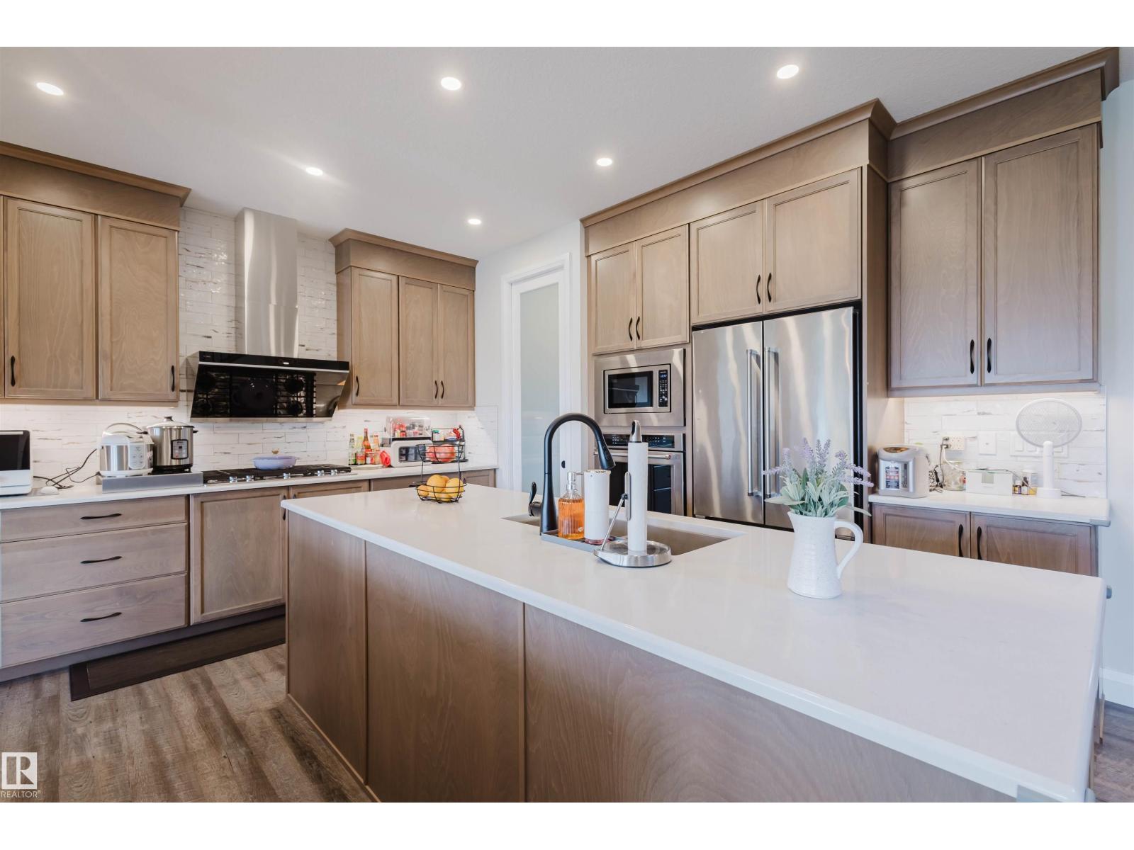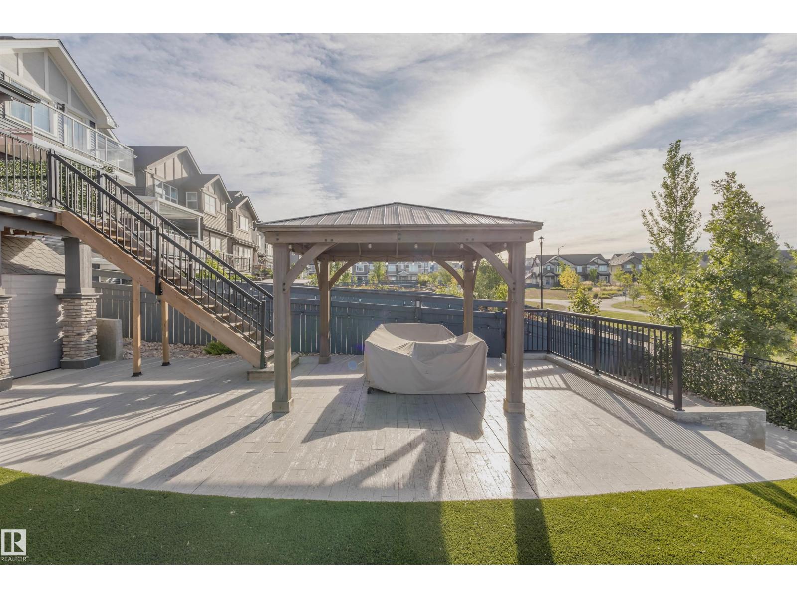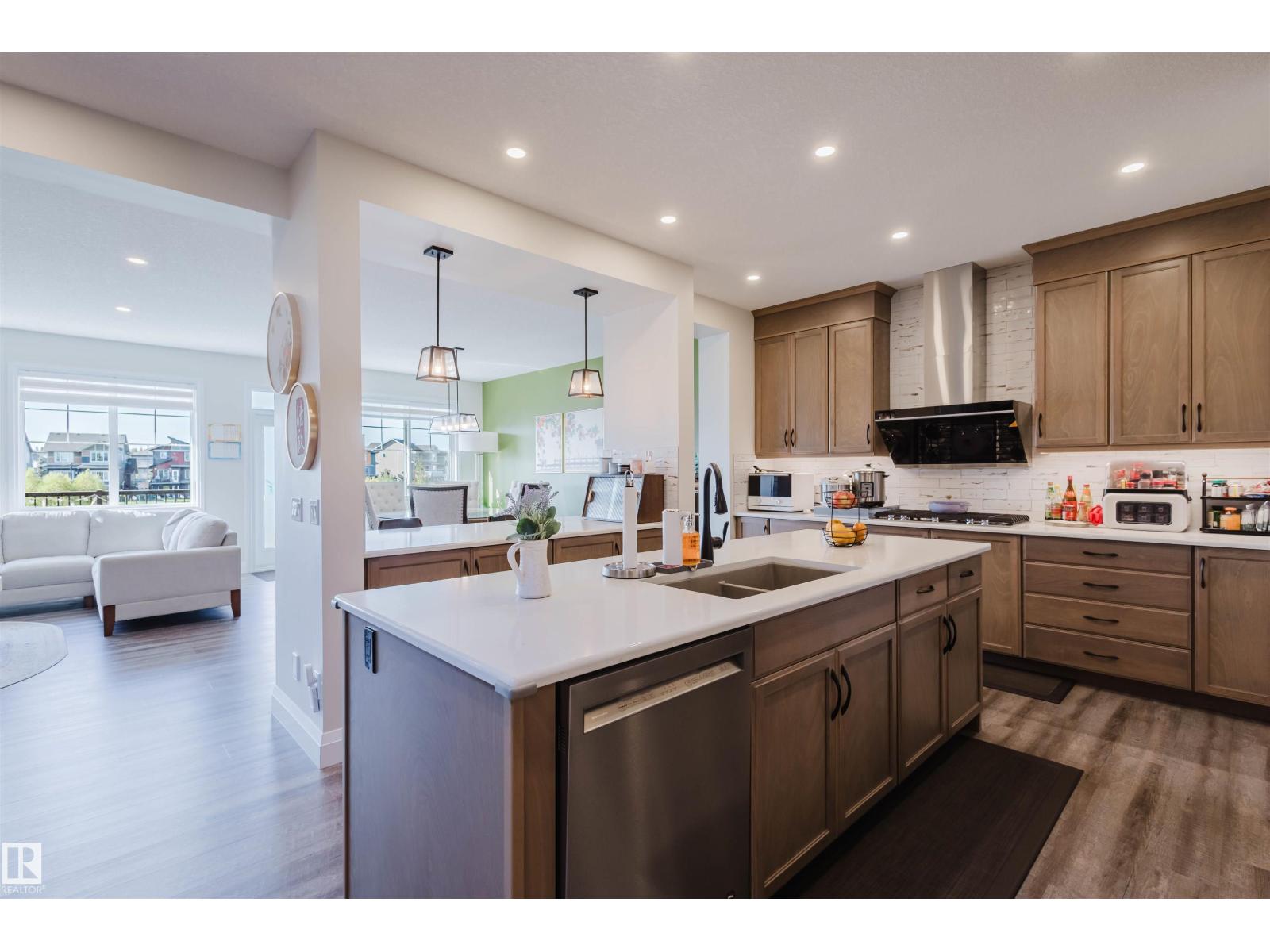 Welcome to this Jayman-built, fully finished 2-storey walkout family home in Desrochers! The main floor offers an open-concept layout with a chef’s kitchen featuring a large island, eating bar, quartz countertops, full-height cabinets, and an upgraded hood fan. From here, step onto the upgraded vinyl deck with unobstructed pond views. Upstairs, the primary retreat boasts a spa-inspired ensuite with dual vanities, a soaker tub, a separate shower, and two walk-in closets. Two additional bedrooms, a full bathroom, a bonus room, and laundry facilities complete the level. The walkout basement expands your living space with a flex room, a wet bar, and an additional bedroom with a walk-in closet. Outside, enjoy a maintenance-free backyard oasis with extensive concrete work and a custom pavilion. Additional upgrades: A/C, dual-zone furnace, heated garage, water softener, and a tankless water heater. Located just minutes from schools, this is truly a one-of-a-kind home you won’t want to miss! (id:63190)