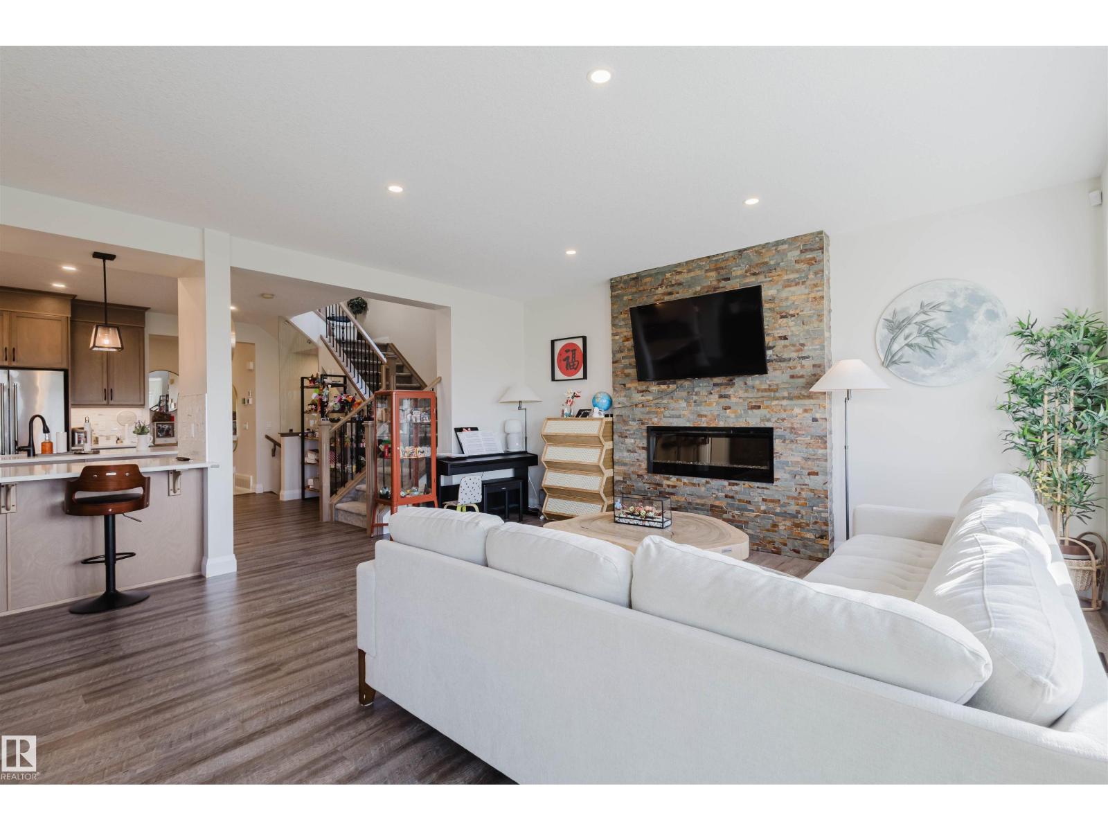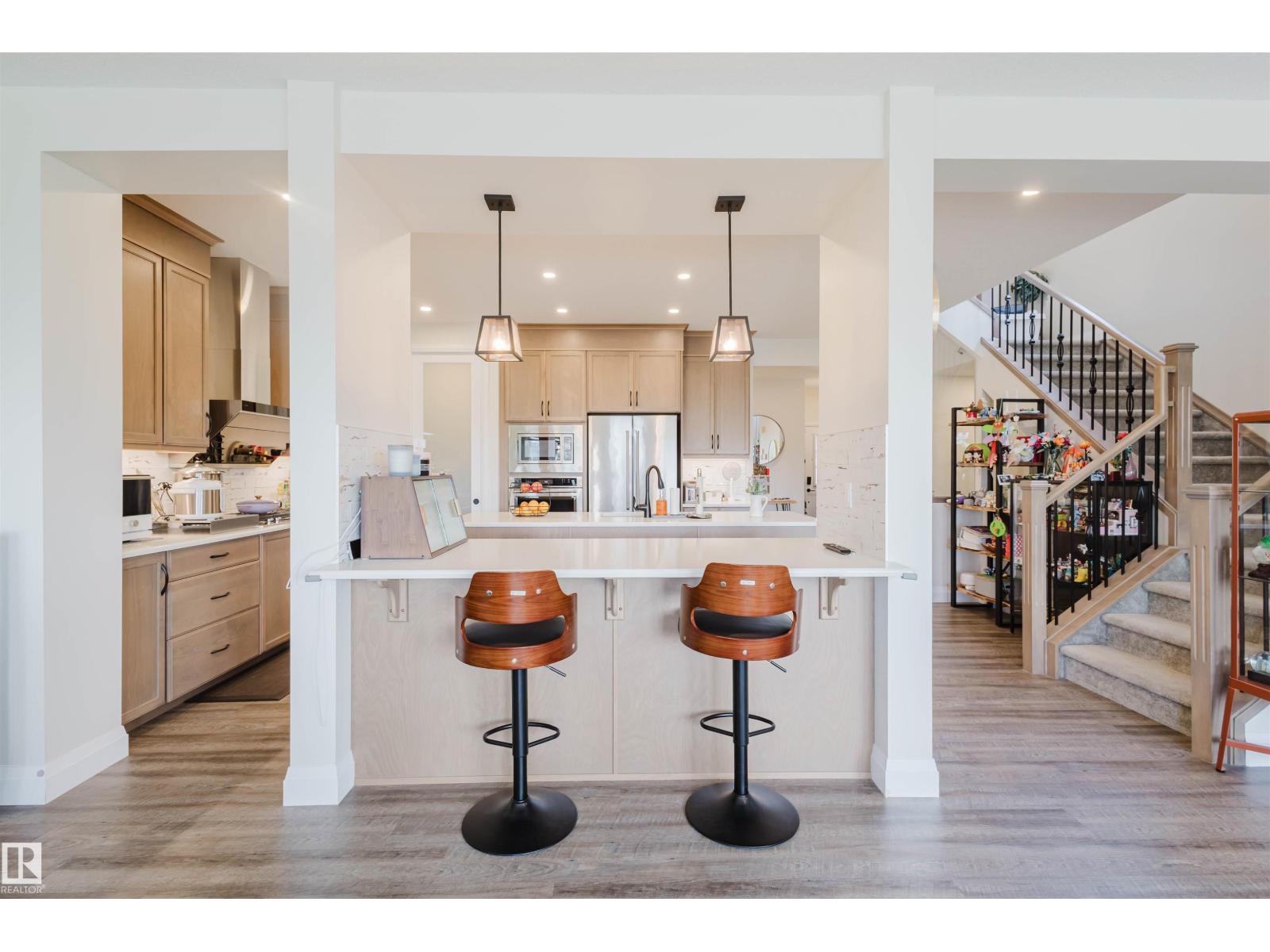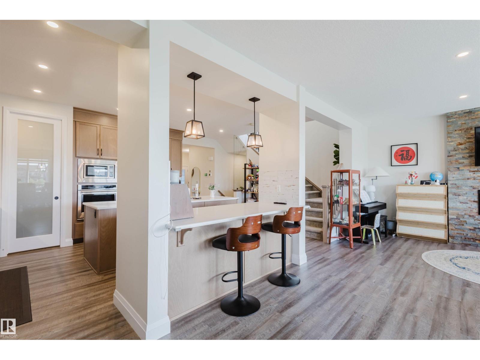 Welcome to this Jayman-built, fully finished 2-storey walkout family home in Desrochers! The main floor offers an open-concept layout with a chef’s kitchen featuring a large island, eating bar, quartz countertops, full-height cabinets, and an upgraded hood fan. From here, step onto the upgraded vinyl deck with unobstructed pond views. Upstairs, the primary retreat boasts a spa-inspired ensuite with dual vanities, a soaker tub, a separate shower, and two walk-in closets. Two additional bedrooms, a full bathroom, a bonus room, and laundry facilities complete the level. The walkout basement expands your living space with a flex room, a wet bar, and an additional bedroom with a walk-in closet. Outside, enjoy a maintenance-free backyard oasis with extensive concrete work and a custom pavilion. Additional upgrades: A/C, dual-zone furnace, heated garage, water softener, and a tankless water heater. Located just minutes from schools, this is truly a one-of-a-kind home you won’t want to miss! (id:63190)