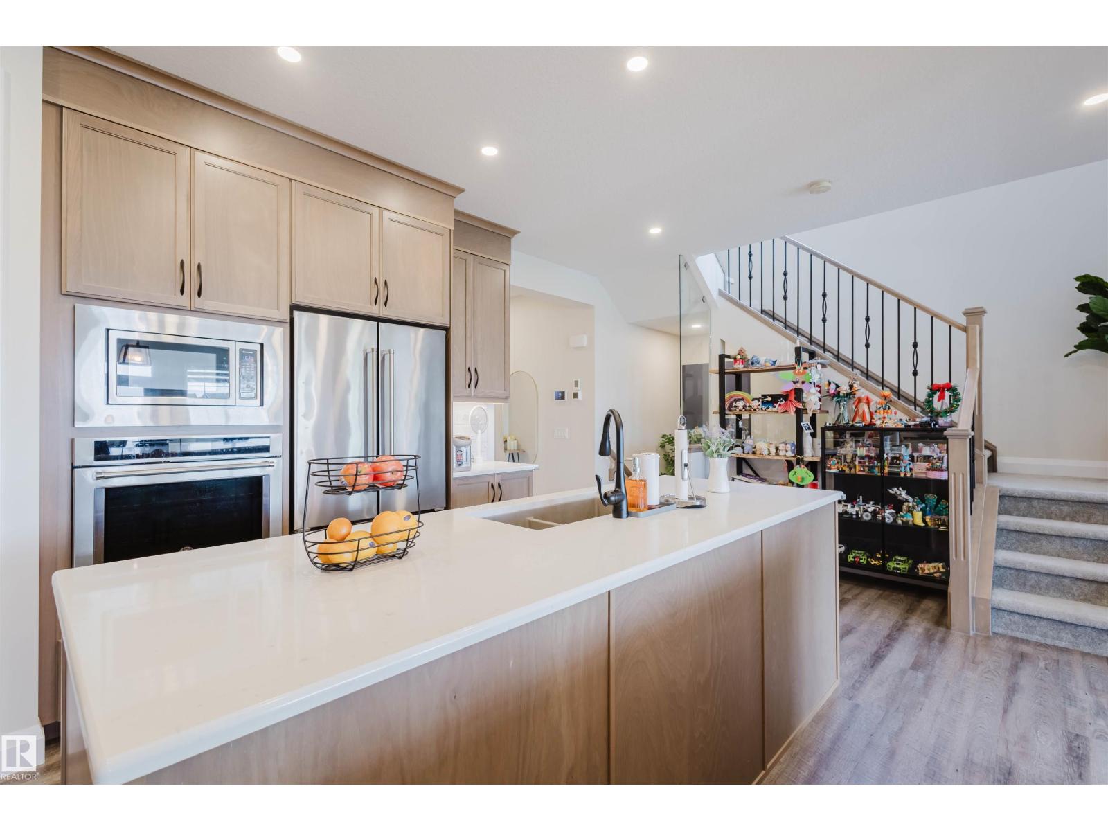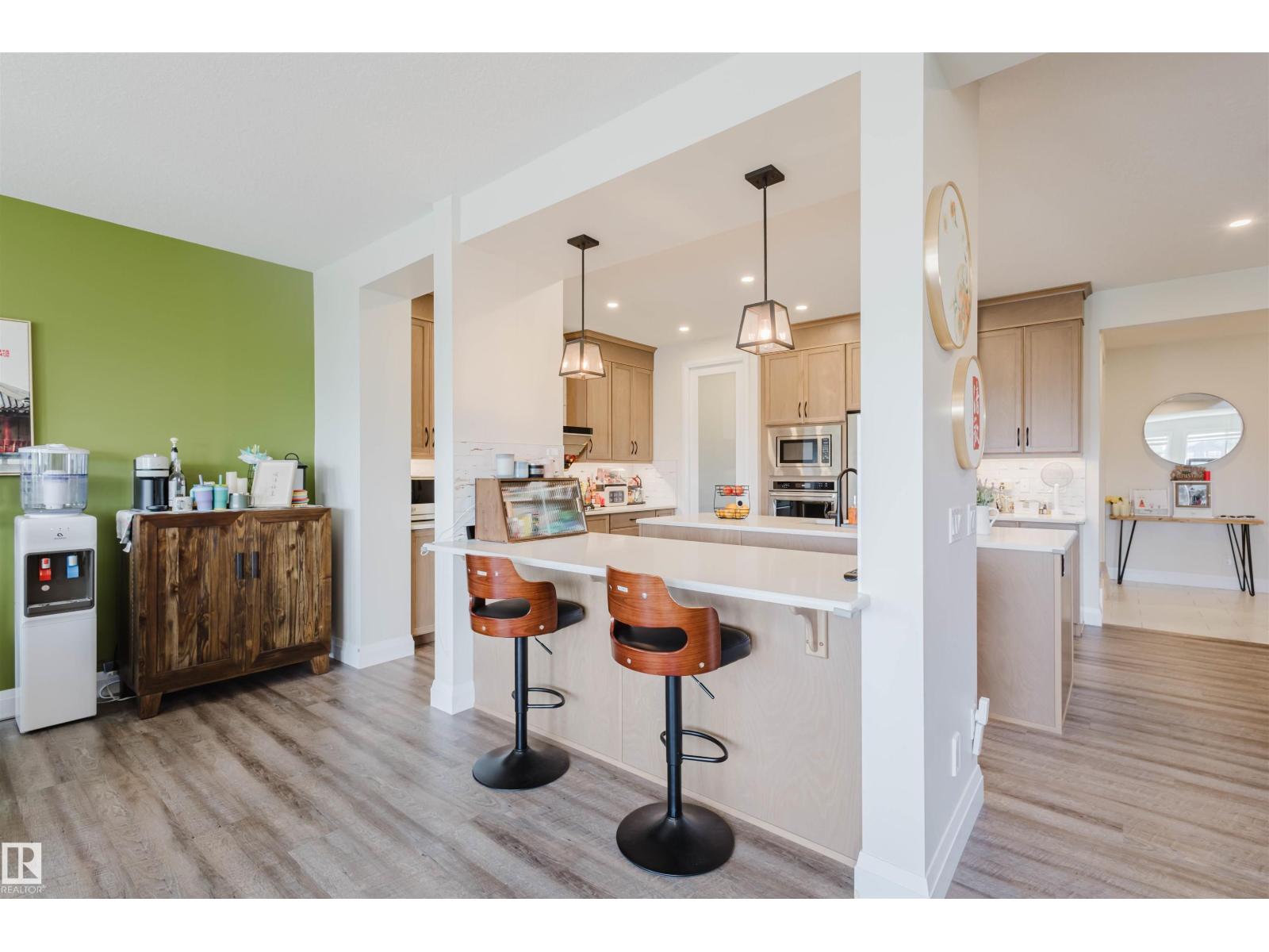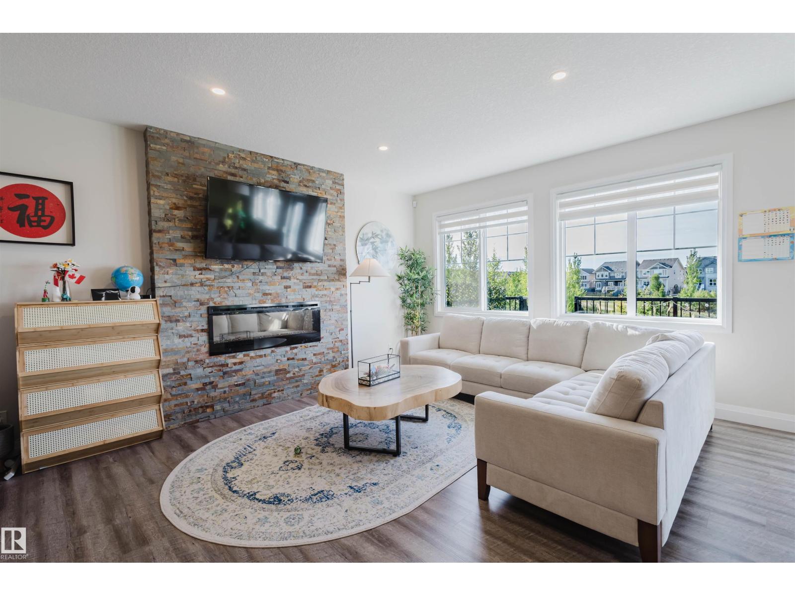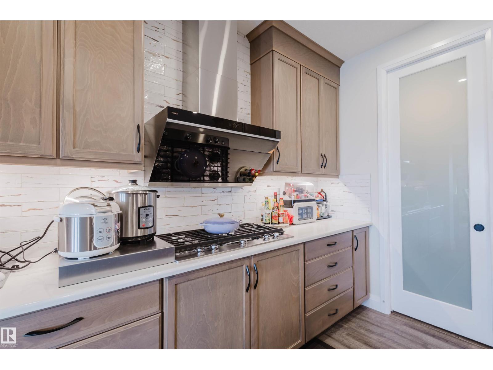 Welcome to this Jayman-built, fully finished 2-storey walkout family home in Desrochers! The main floor offers an open-concept layout with a chef’s kitchen featuring a large island, eating bar, quartz countertops, full-height cabinets, and an upgraded hood fan. From here, step onto the upgraded vinyl deck with unobstructed pond views. Upstairs, the primary retreat boasts a spa-inspired ensuite with dual vanities, a soaker tub, a separate shower, and two walk-in closets. Two additional bedrooms, a full bathroom, a bonus room, and laundry facilities complete the level. The walkout basement expands your living space with a flex room, a wet bar, and an additional bedroom with a walk-in closet. Outside, enjoy a maintenance-free backyard oasis with extensive concrete work and a custom pavilion. Additional upgrades: A/C, dual-zone furnace, heated garage, water softener, and a tankless water heater. Located just minutes from schools, this is truly a one-of-a-kind home you won’t want to miss! (id:63190)