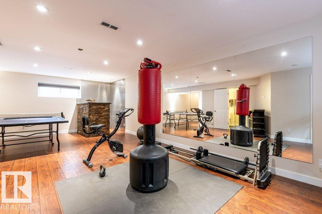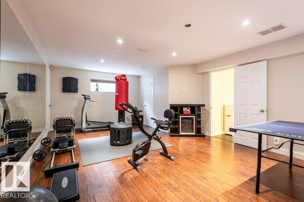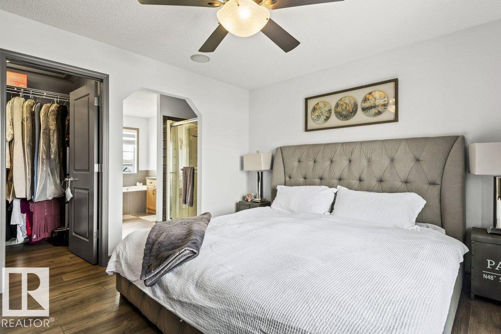 Welcome home to this beautiful FORMER SHOW HOME, located in the highly desirable community of McConachie, just steps away from schools, parks, shopping & amenities. This home offers 3 spacious bedrooms, an inviting bonus room with corner gas fireplace, and a fully finished basement complete with bar, gym, and bathroom. The chef-inspired kitchen features granite counters, premium appliances, and a bright nook overlooking the backyard. Enjoy year-round comfort with central air conditioning and a built-in speaker system throughout. Your private retreat awaits in the luxurious primary suite, boasting a spa-like ensuite with a relaxing soaker tub and oversized 4 ft shower. Outdoors, the home shines with a heated, insulated double garage, beautifully landscaped yard with fruit trees, firepit, and a rear deck with BBQ gas line, ideal for summer gatherings. This stunning property truly has it all, don’t miss your chance to call it home! (id:63190)