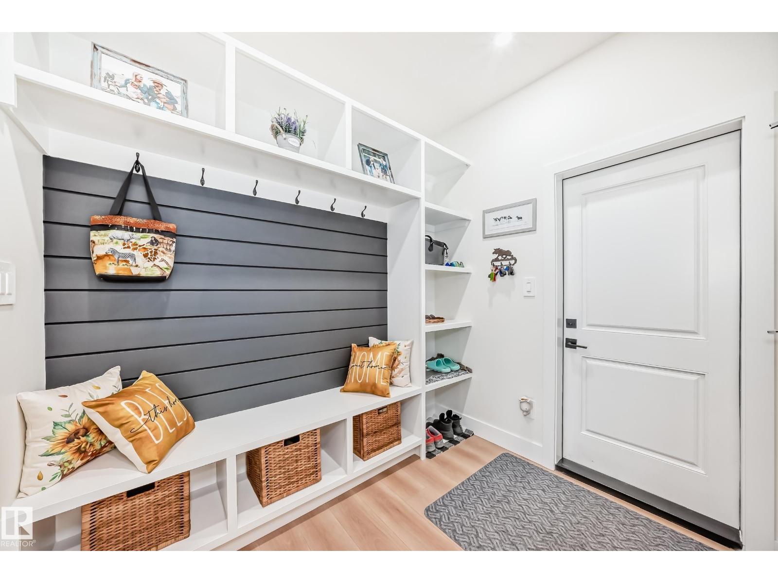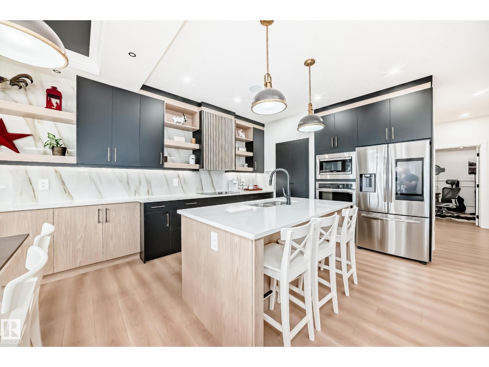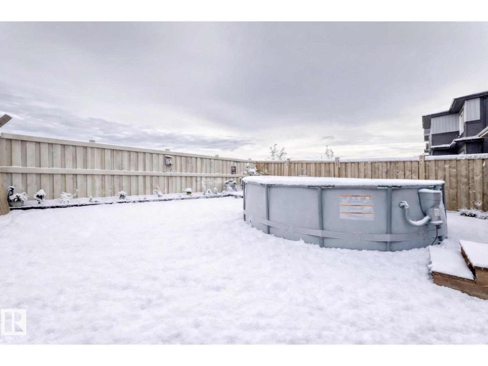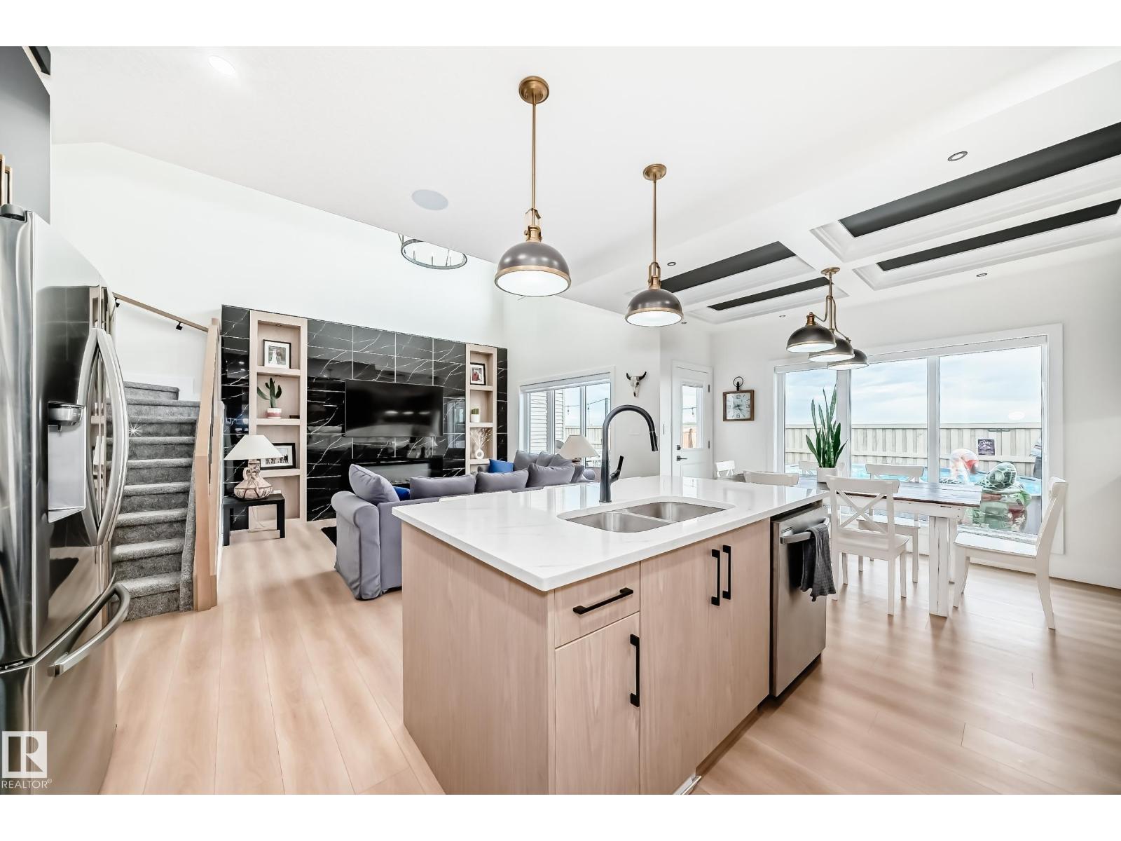 2023-built move-in ready home offering 2,000 sq.ft. of designed living space. The main floor features extended kitchen with quartz countertops, stunning island lighting, a walk-through pantry & access to the mudroom & double attached garage. A touch-screen Family Hub refrigerator & built-in Bluetooth speakers add modern convenience. Impressive open-to-above living room is filled with natural light from massive windows showcasing a striking fireplace feature wall. A main floor bedroom w custom wall detailing offers flexibility for guests or multi-generational living, along with a stylish half bath. Upstairs, the primary suite provides a private retreat w designer feature wall & spa-inspired ensuite with walk-through closet. 2 additional bedrooms, a full bath, bonus room & upper-level laundry complete the space. Enjoy added value of a separate side entrance to the basement, rough-in for central vacuum, finished deck, and a fully fenced yard. NO IMMEDIATE PLANS FOR ANY TYPE OF DEVELOPMENT AT BACK OF PROPERTY (id:63190)