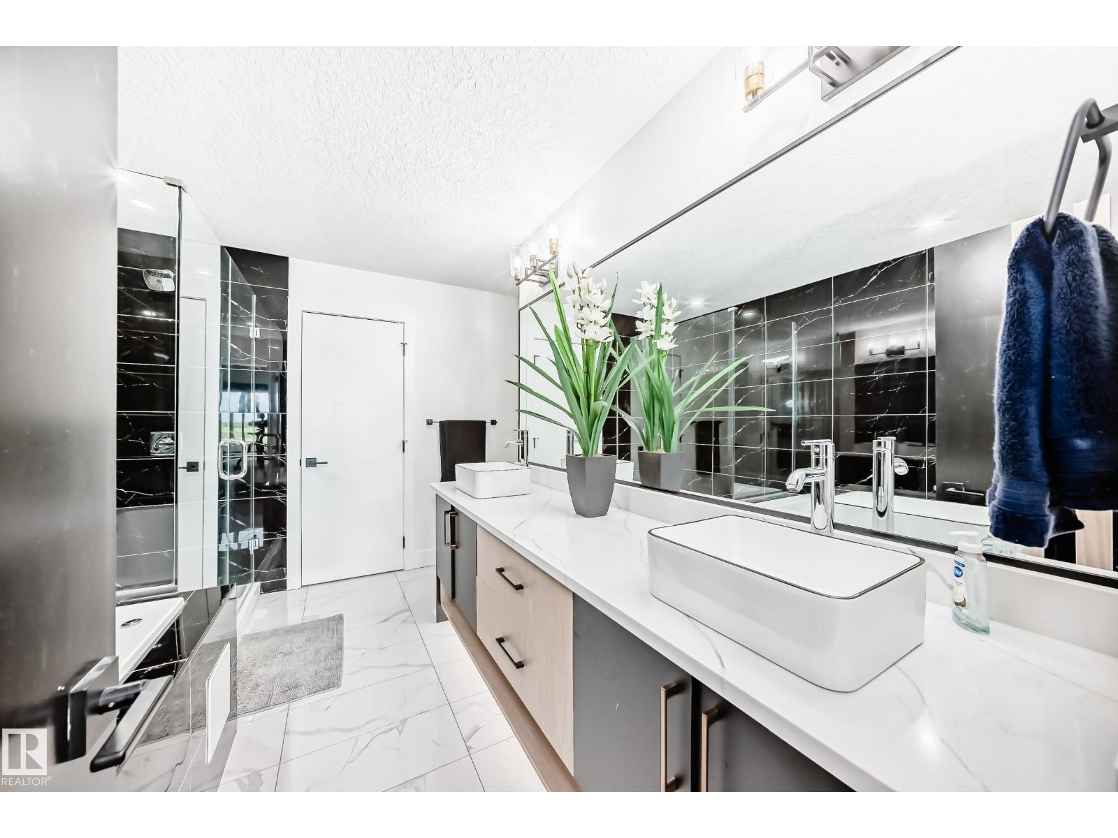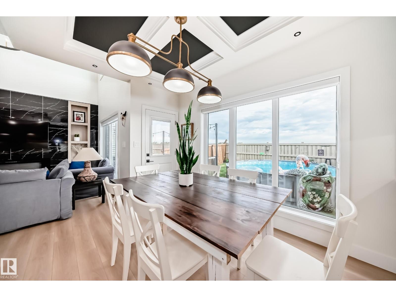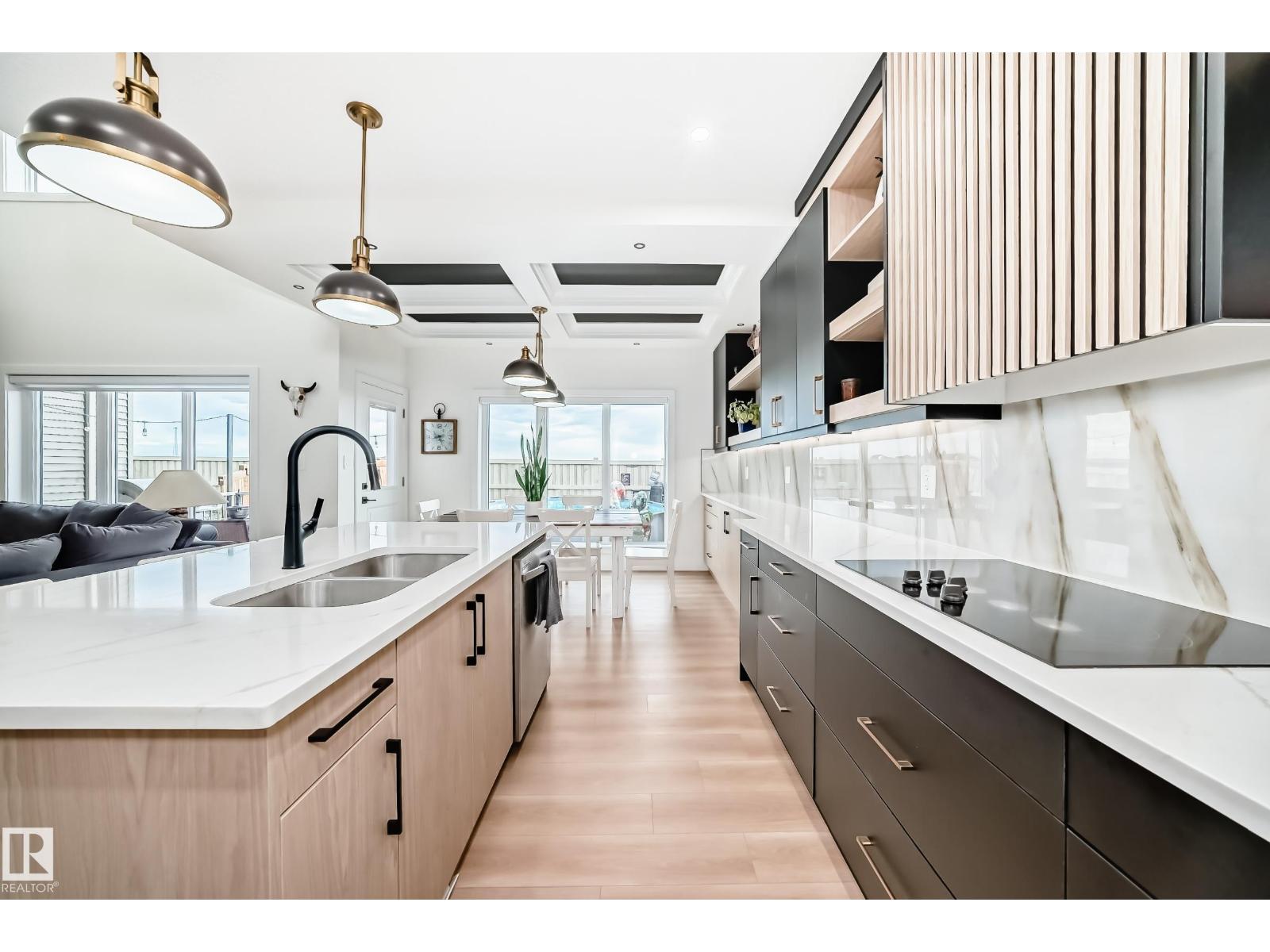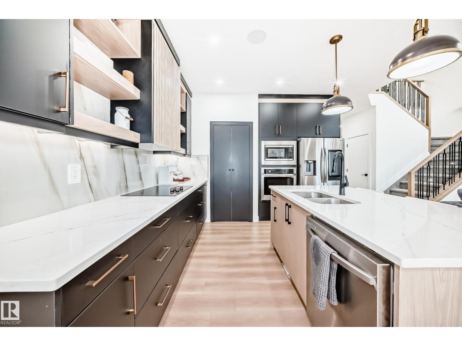 2023-built move-in ready home offering 2,000 sq.ft. of designed living space. The main floor features extended kitchen with quartz countertops, stunning island lighting, a walk-through pantry & access to the mudroom & double attached garage. A touch-screen Family Hub refrigerator & built-in Bluetooth speakers add modern convenience. Impressive open-to-above living room is filled with natural light from massive windows showcasing a striking fireplace feature wall. A main floor bedroom w custom wall detailing offers flexibility for guests or multi-generational living, along with a stylish half bath. Upstairs, the primary suite provides a private retreat w designer feature wall & spa-inspired ensuite with walk-through closet. 2 additional bedrooms, a full bath, bonus room & upper-level laundry complete the space. Enjoy added value of a separate side entrance to the basement, rough-in for central vacuum, finished deck, and a fully fenced yard. NO IMMEDIATE PLANS FOR ANY TYPE OF DEVELOPMENT AT BACK OF PROPERTY (id:63190)