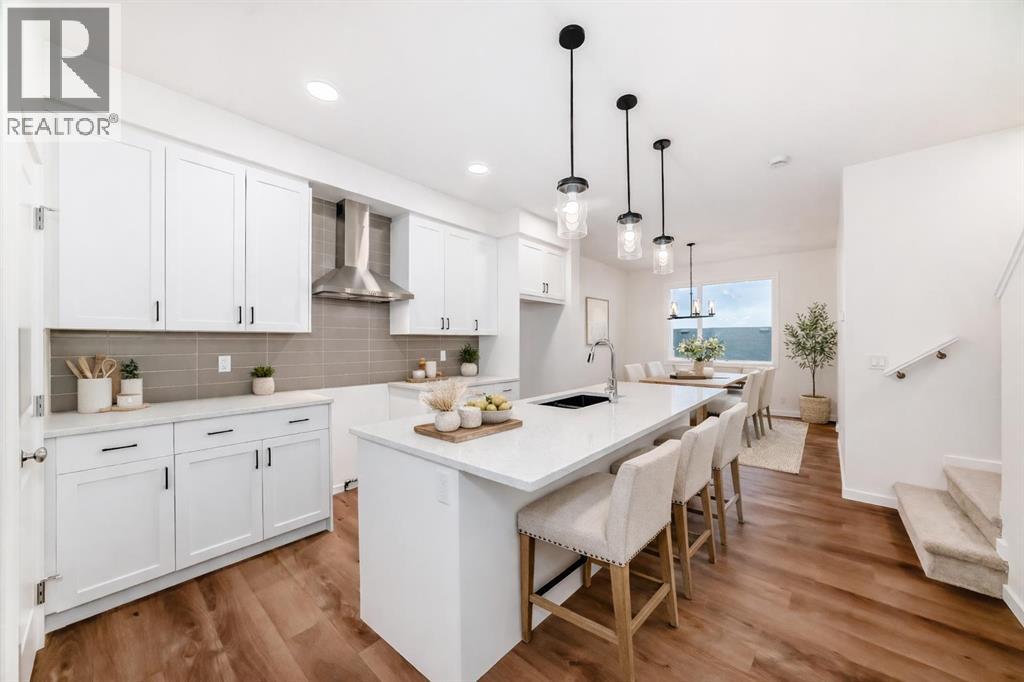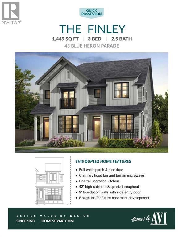 STARTING OUT IN REAL ESTATE IS A LOT MORE FUN WHEN THE HOUSE IS ALREADY THINKING A FEW STEPS AHEAD.This Finley model from Homes by Avi keeps things efficient in the best possible way. At 1,449 SQ FT ABOVE GRADE, the layout focuses on the spaces you actually use instead of padding the floor plan with rooms that sound good on paper but rarely earn their keep.The main floor is centred around a kitchen designed for real daily life. QUARTZ COUNTERTOPS, 42" UPPER CABINETRY, a CHIMNEY HOOD FAN, and a BUILT-IN MICROWAVE keep the space functional and clean-lined, while the island becomes the natural landing spot for coffee, laptops, groceries, and the conversations that happen in between. The dining and living areas flow easily from there, creating a main floor that feels open without wasting square footage.Upstairs keeps the same practical approach. Three bedrooms, two full bathrooms, and upper laundry give the home a layout that works the way most households actually live. The PRIMARY BEDROOM includes a WALK-IN CLOSET and PRIVATE ENSUITE, while the secondary bedrooms offer flexibility for family, guests, or a dedicated home office.Where this home quietly sets itself apart is downstairs. The 9’ BASEMENT WITH A SEPARATE SIDE ENTRY is already set up for the future with plumbing rough-ins, laundry rough-ins, and a bar sink rough-in in place. Behind the scenes, the mechanical planning goes even further with 200-AMP ELECTRICAL SERVICE, an EV CHARGER ROUGH-IN, and a SOLAR CONDUIT running from the mechanical room to the attic—infrastructure decisions that make a home far more capable over time.Outside, a REAR DECK and TWO-CAR PARKING PAD off the lane keep things simple and functional today while leaving room for whatever the next phase looks like.Set in Rangeview, a southeast Calgary community planned around tree-lined pathways, connected parks, and calm residential streets, with quick access to Seton, Mahogany, Deerfoot Trail, and Stoney Trail. If you’re stepping in to the market for the first time—or looking for a property that makes long-term sense as a rental—this one is worth seeing in person. Ready to call home in April!• PLEASE NOTE: Photos are of a DIFFERENT spec home of the same model – fit and finish may differ. Interior selections and floorplans shown in photos. (id:63190)