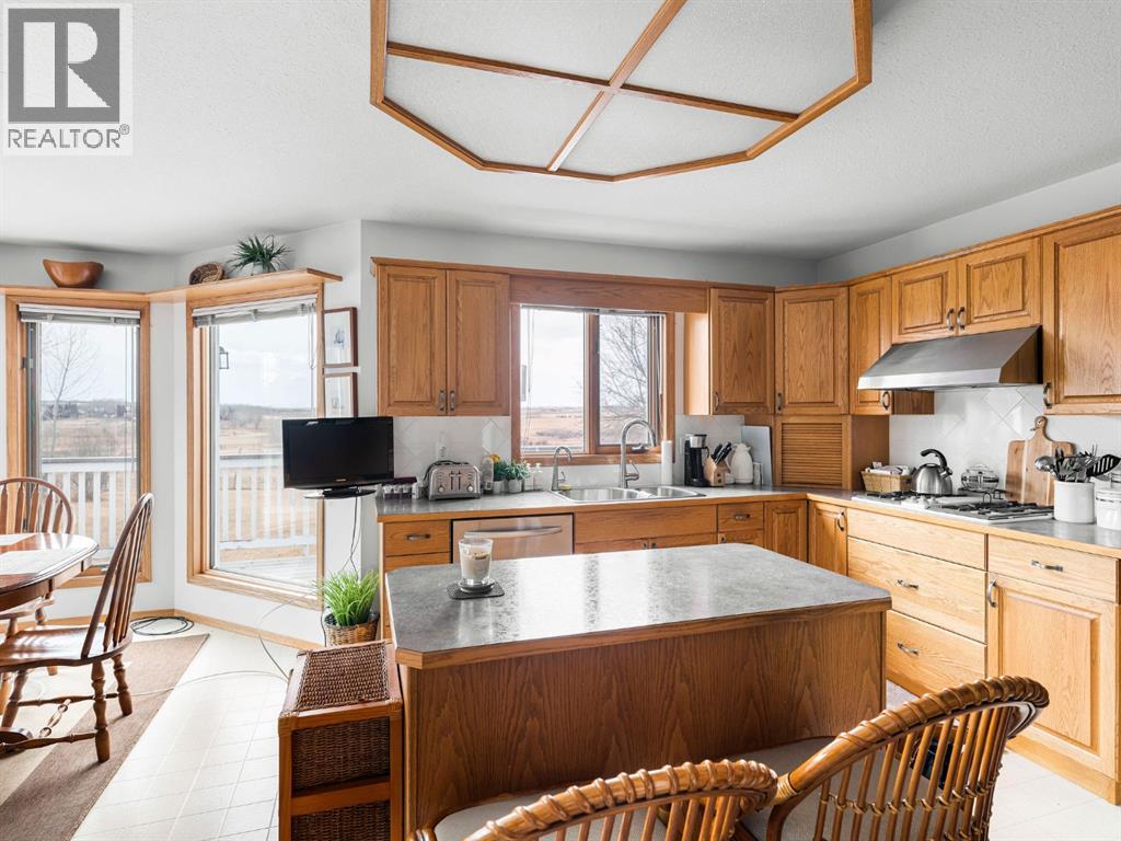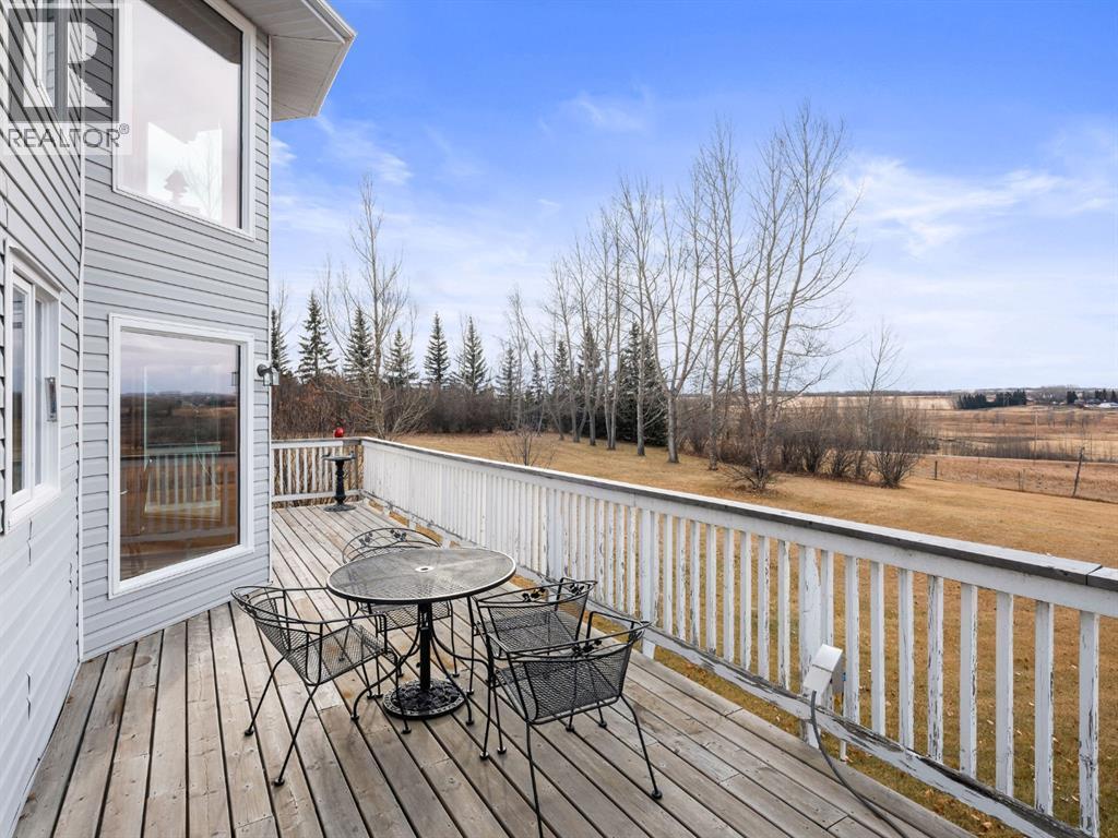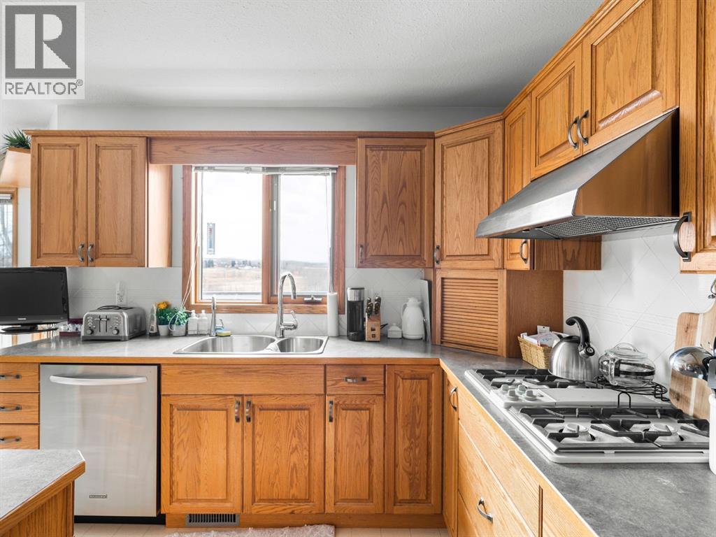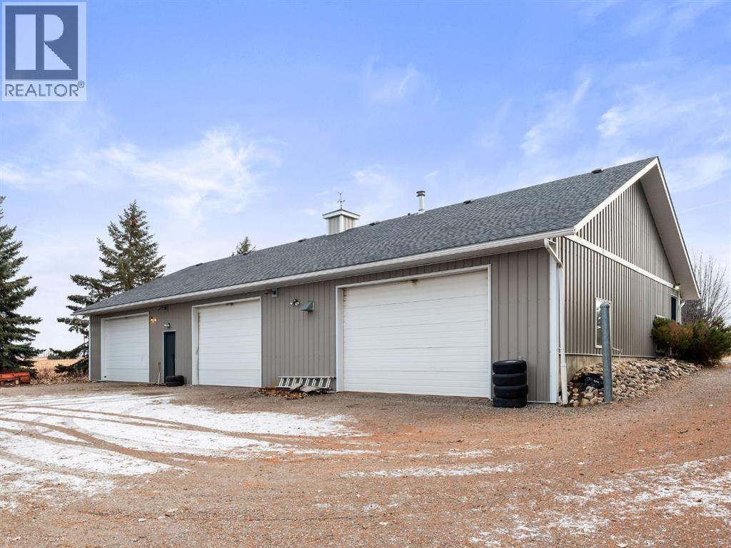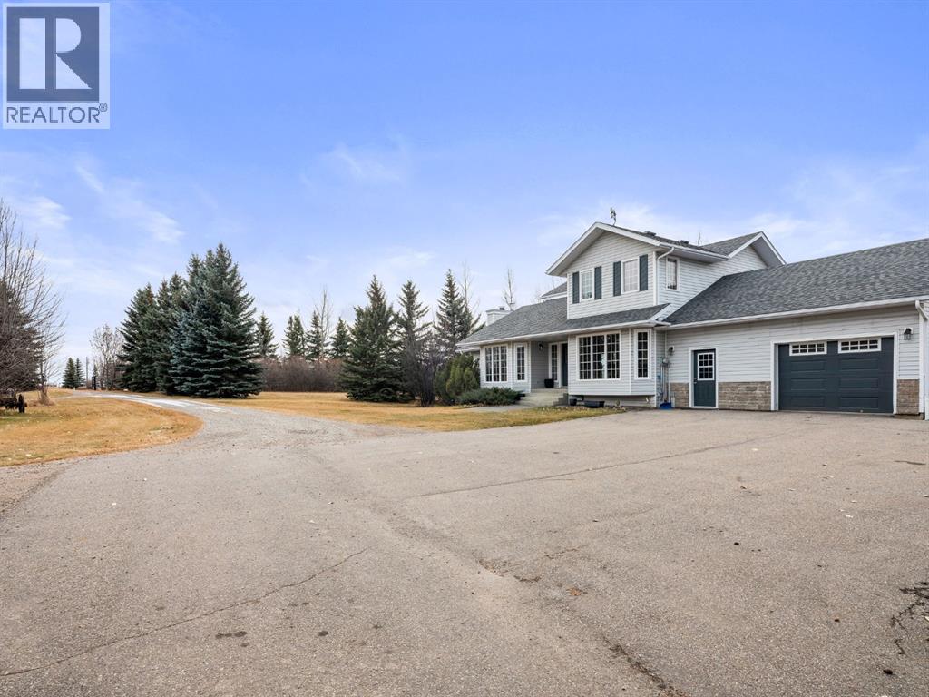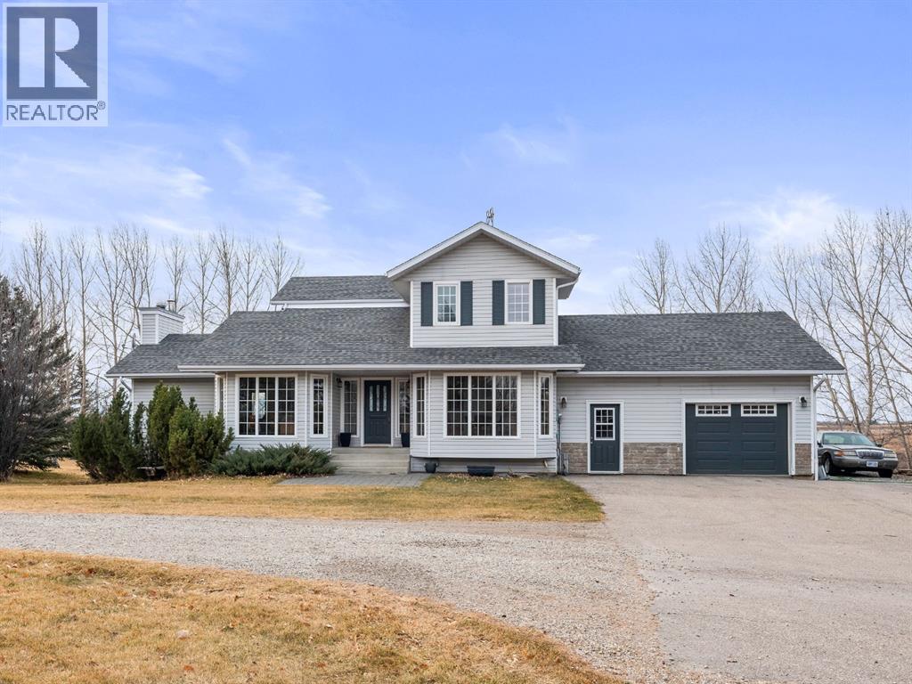 Easily zoned back to COMMERCIAL. Lovingly cared for home on private acreage just west of Carstairs and on a paved road. 2019 sq ft above grade and another 980 on the lower level. This home is well laid out and in extremely good condition. Jenn-Air gas stovetop. Mountain view from many rooms. Well is 12 gpm. The Master bedroom is on the 2nd level and includes a well-proportioned ensuite with a jetted tub, his-and-hers sinks, and a walk-in closet. Other room(s) - Den, Office, or dining room could transition to bedrooms if your family needs the space. The fully developed walk-out basement includes a family room with a fireplace, an office, a bedroom, and a full bathroom. Lots of light and nice views. Newer Hunter Douglas blinds. The shop is a car buff's dream and easily parks 6, but could likely park 9. It is 40 feet by 80 feet with 12' high ceilings. It has 3 bays with doors measuring 10' high. 1 door is 14' wide, the other 2 are 16' wide. One bay is heated with in-floor heating; the other two bays are heated with overhead radiant heat. Floor drains are in each bay. There is a 3-piece bathroom inside the shop. It also has a washer and dryer, fridge, and stove. All equipment will stay with the shop: welder, chop saws, air compressor, etc. (id:63190)