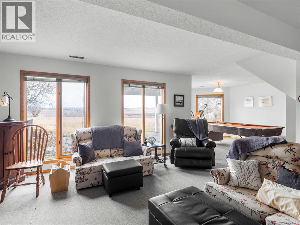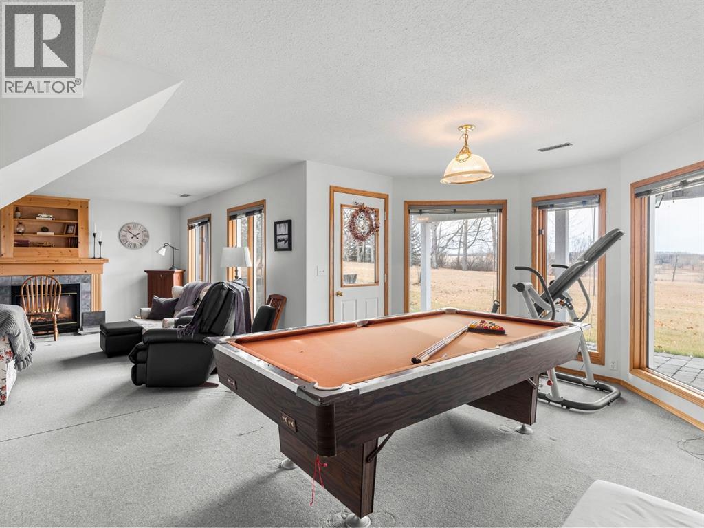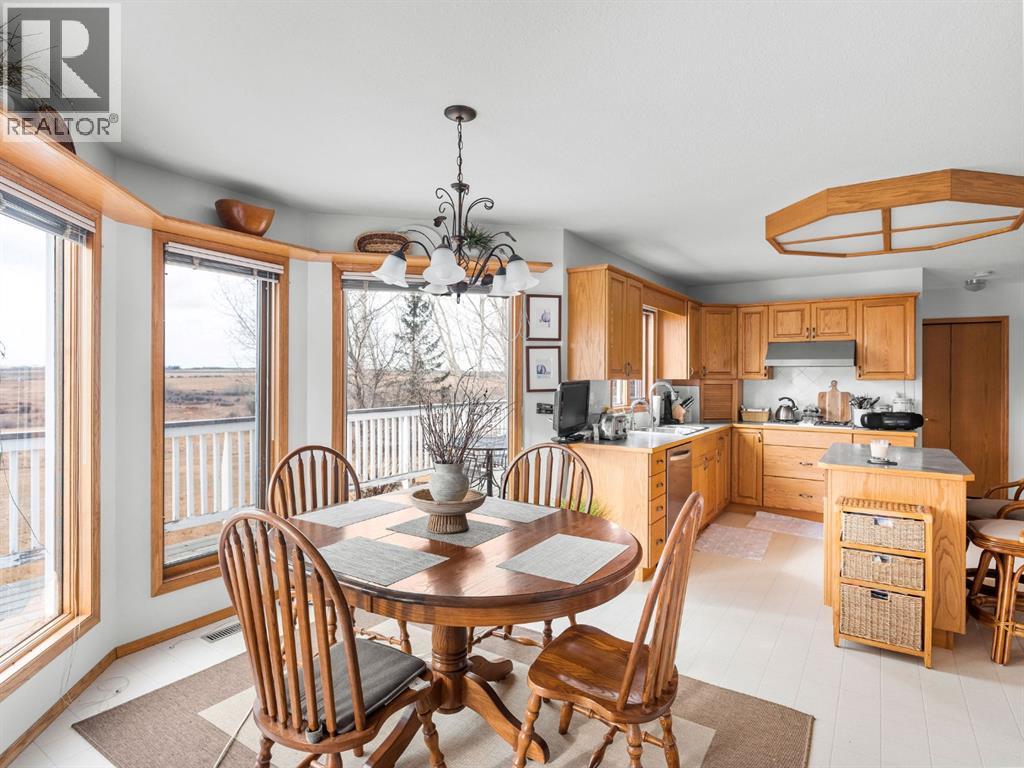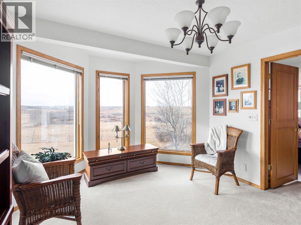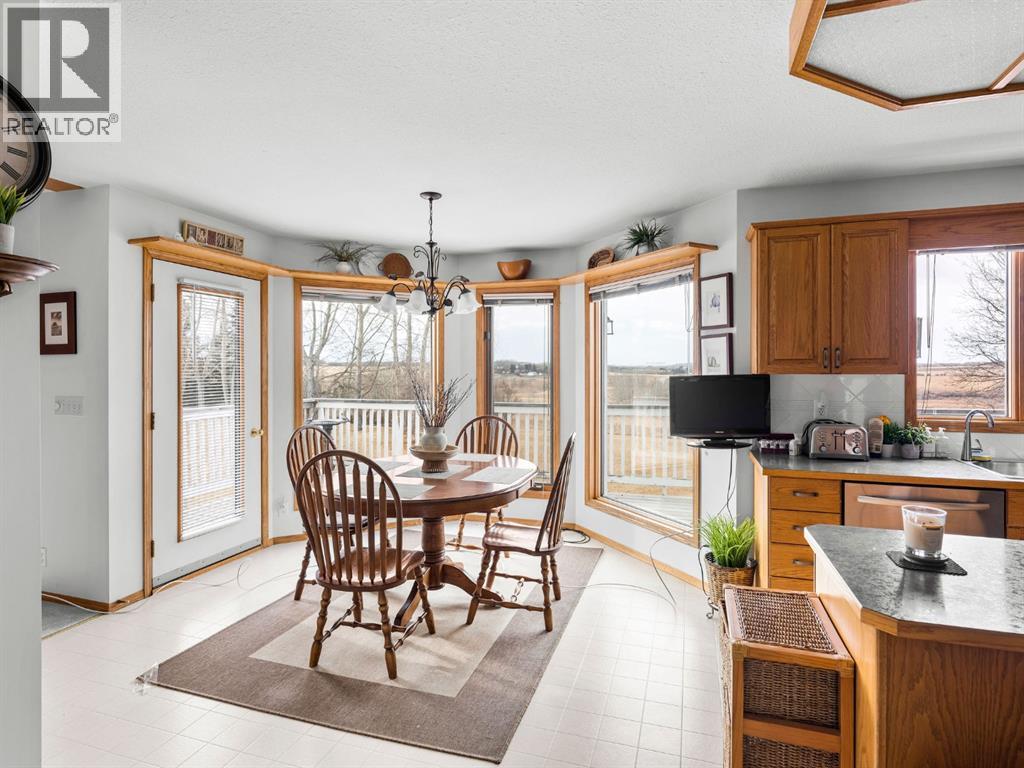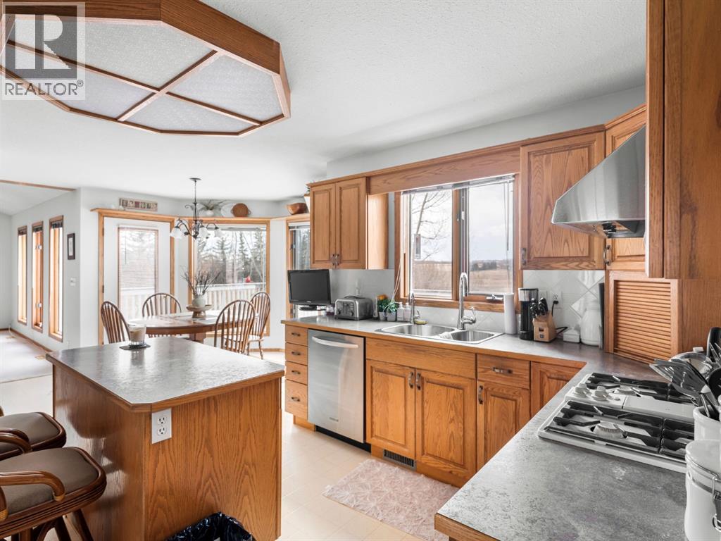 Easily zoned back to COMMERCIAL. Lovingly cared for home on private acreage just west of Carstairs and on a paved road. 2019 sq ft above grade and another 980 on the lower level. This home is well laid out and in extremely good condition. Jenn-Air gas stovetop. Mountain view from many rooms. Well is 12 gpm. The Master bedroom is on the 2nd level and includes a well-proportioned ensuite with a jetted tub, his-and-hers sinks, and a walk-in closet. Other room(s) - Den, Office, or dining room could transition to bedrooms if your family needs the space. The fully developed walk-out basement includes a family room with a fireplace, an office, a bedroom, and a full bathroom. Lots of light and nice views. Newer Hunter Douglas blinds. The shop is a car buff's dream and easily parks 6, but could likely park 9. It is 40 feet by 80 feet with 12' high ceilings. It has 3 bays with doors measuring 10' high. 1 door is 14' wide, the other 2 are 16' wide. One bay is heated with in-floor heating; the other two bays are heated with overhead radiant heat. Floor drains are in each bay. There is a 3-piece bathroom inside the shop. It also has a washer and dryer, fridge, and stove. All equipment will stay with the shop: welder, chop saws, air compressor, etc. (id:63190)