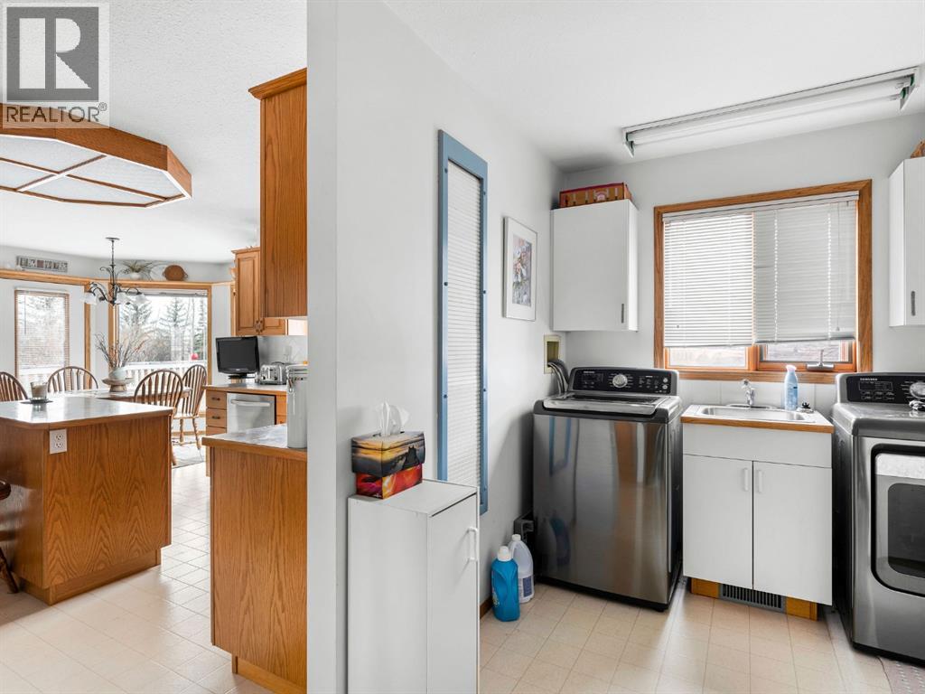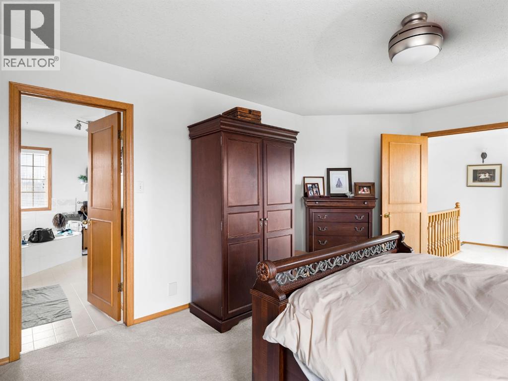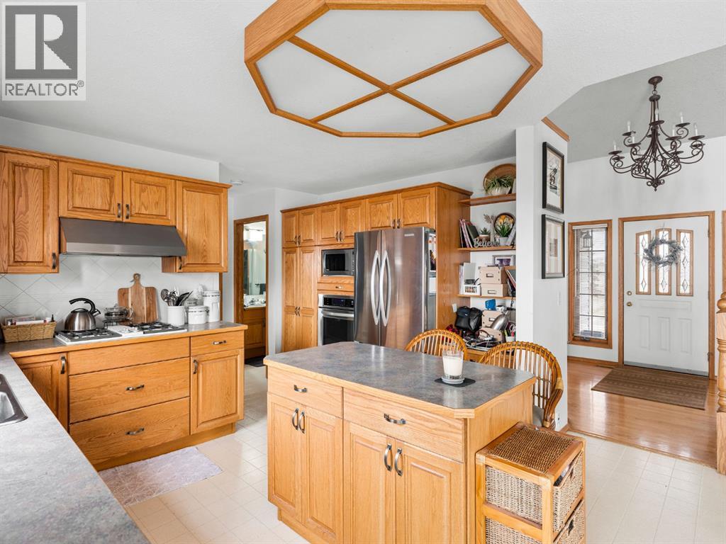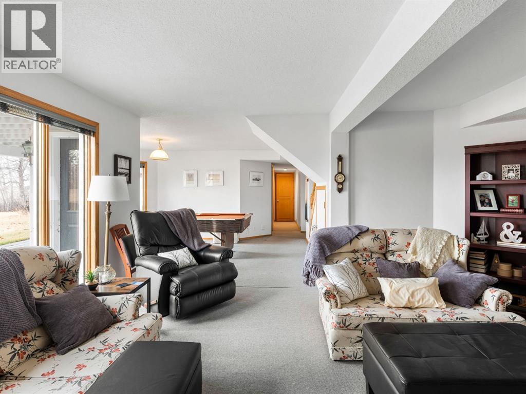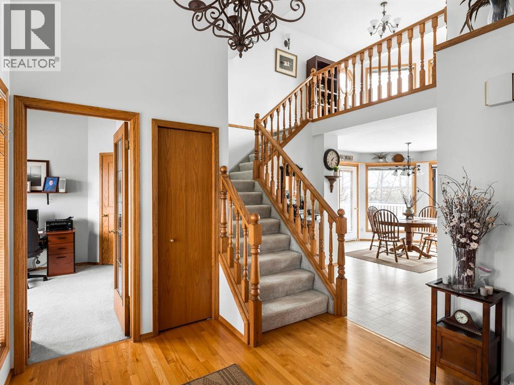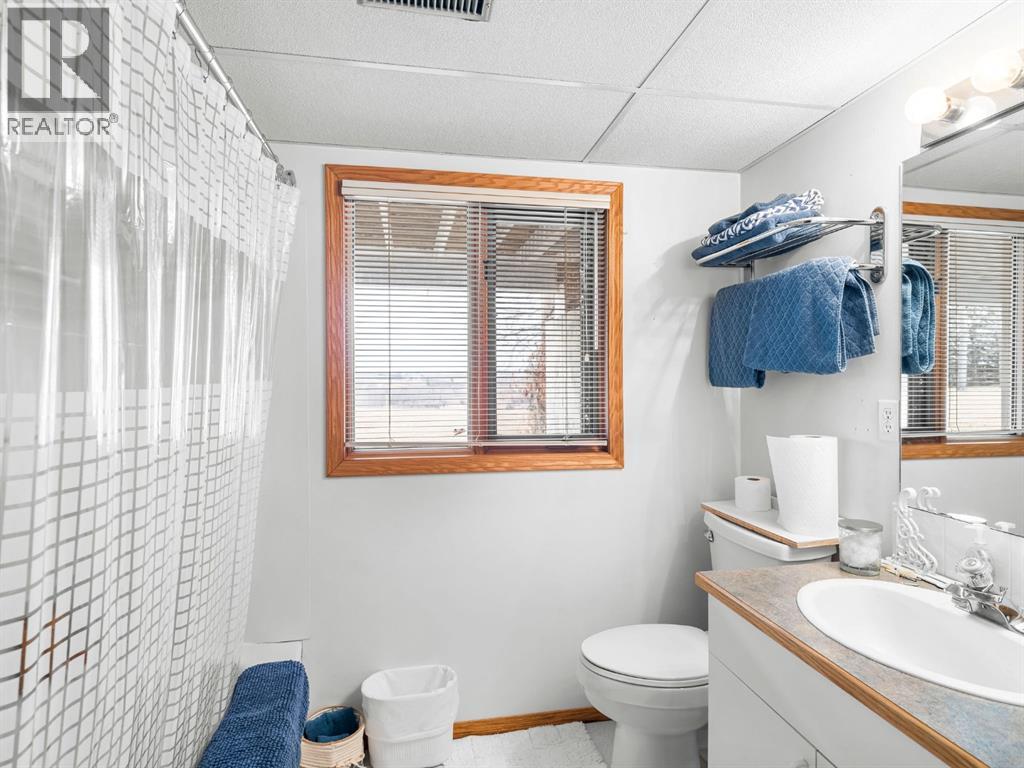 Easily zoned back to COMMERCIAL. Lovingly cared for home on private acreage just west of Carstairs and on a paved road. 2019 sq ft above grade and another 980 on the lower level. This home is well laid out and in extremely good condition. Jenn-Air gas stovetop. Mountain view from many rooms. Well is 12 gpm. The Master bedroom is on the 2nd level and includes a well-proportioned ensuite with a jetted tub, his-and-hers sinks, and a walk-in closet. Other room(s) - Den, Office, or dining room could transition to bedrooms if your family needs the space. The fully developed walk-out basement includes a family room with a fireplace, an office, a bedroom, and a full bathroom. Lots of light and nice views. Newer Hunter Douglas blinds. The shop is a car buff's dream and easily parks 6, but could likely park 9. It is 40 feet by 80 feet with 12' high ceilings. It has 3 bays with doors measuring 10' high. 1 door is 14' wide, the other 2 are 16' wide. One bay is heated with in-floor heating; the other two bays are heated with overhead radiant heat. Floor drains are in each bay. There is a 3-piece bathroom inside the shop. It also has a washer and dryer, fridge, and stove. All equipment will stay with the shop: welder, chop saws, air compressor, etc. (id:63190)