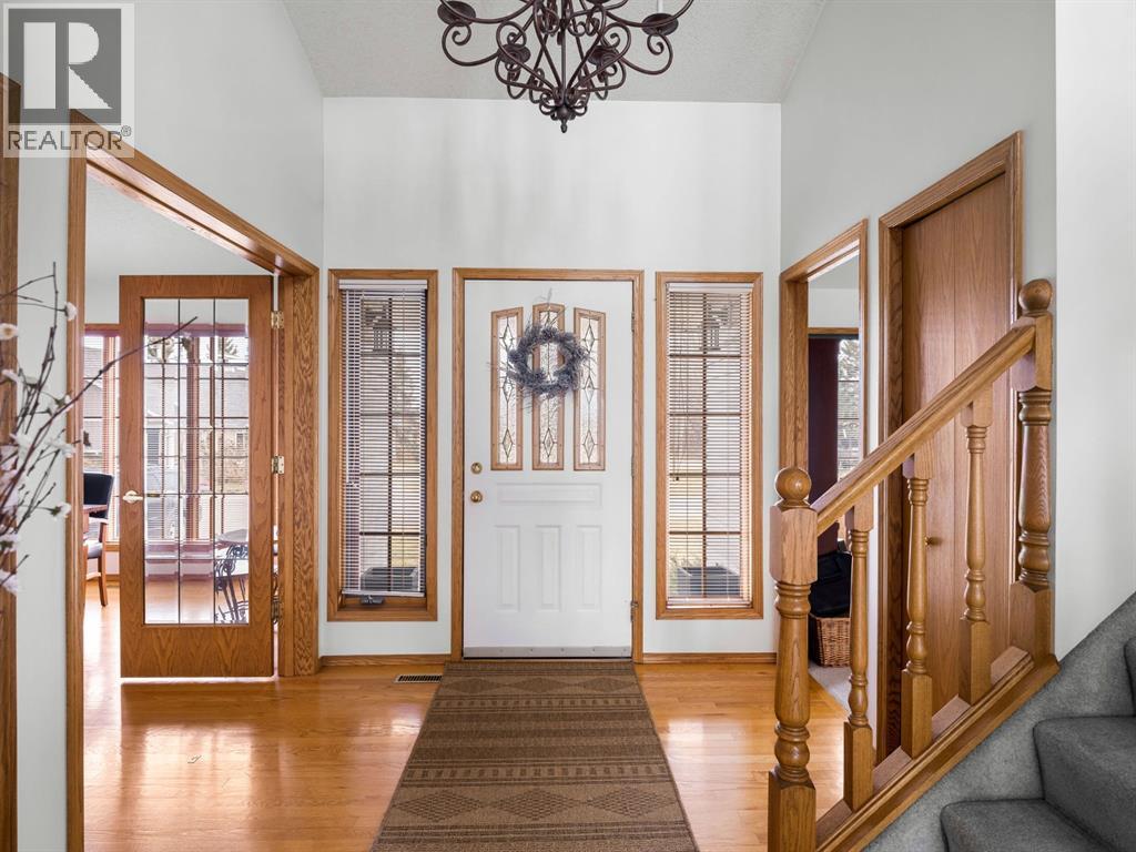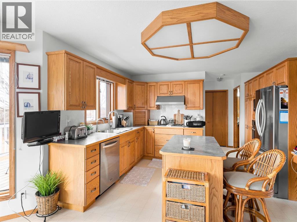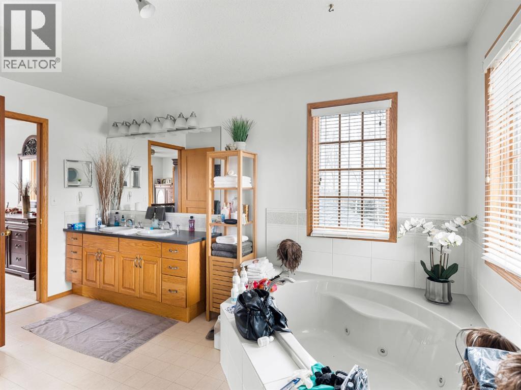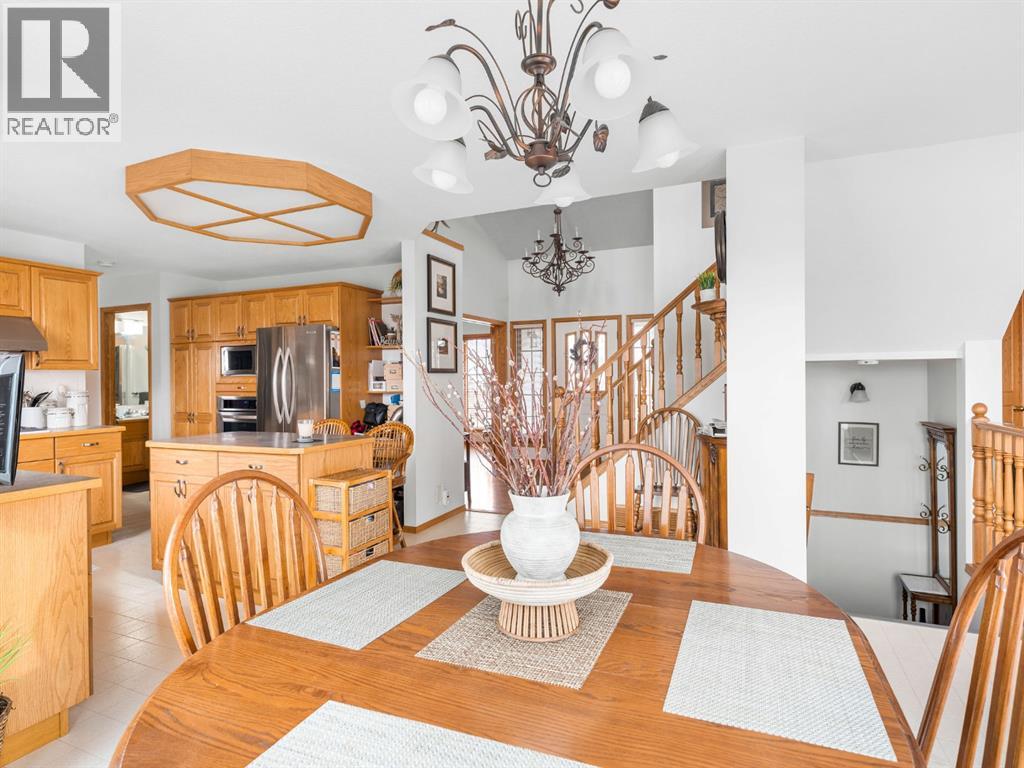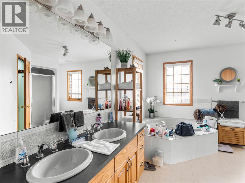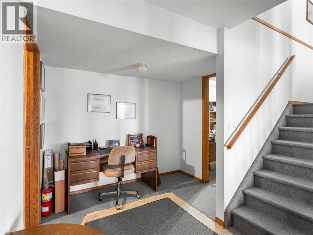 Easily zoned back to COMMERCIAL. Lovingly cared for home on private acreage just west of Carstairs and on a paved road. 2019 sq ft above grade and another 980 on the lower level. This home is well laid out and in extremely good condition. Jenn-Air gas stovetop. Mountain view from many rooms. Well is 12 gpm. The Master bedroom is on the 2nd level and includes a well-proportioned ensuite with a jetted tub, his-and-hers sinks, and a walk-in closet. Other room(s) - Den, Office, or dining room could transition to bedrooms if your family needs the space. The fully developed walk-out basement includes a family room with a fireplace, an office, a bedroom, and a full bathroom. Lots of light and nice views. Newer Hunter Douglas blinds. The shop is a car buff's dream and easily parks 6, but could likely park 9. It is 40 feet by 80 feet with 12' high ceilings. It has 3 bays with doors measuring 10' high. 1 door is 14' wide, the other 2 are 16' wide. One bay is heated with in-floor heating; the other two bays are heated with overhead radiant heat. Floor drains are in each bay. There is a 3-piece bathroom inside the shop. It also has a washer and dryer, fridge, and stove. All equipment will stay with the shop: welder, chop saws, air compressor, etc. (id:63190)