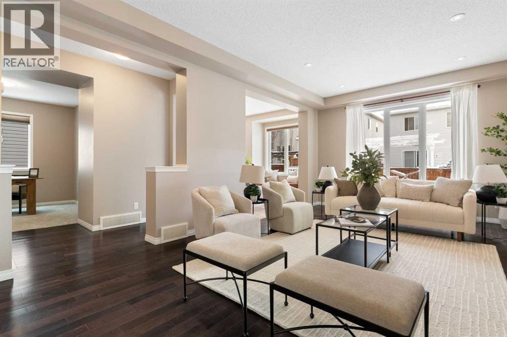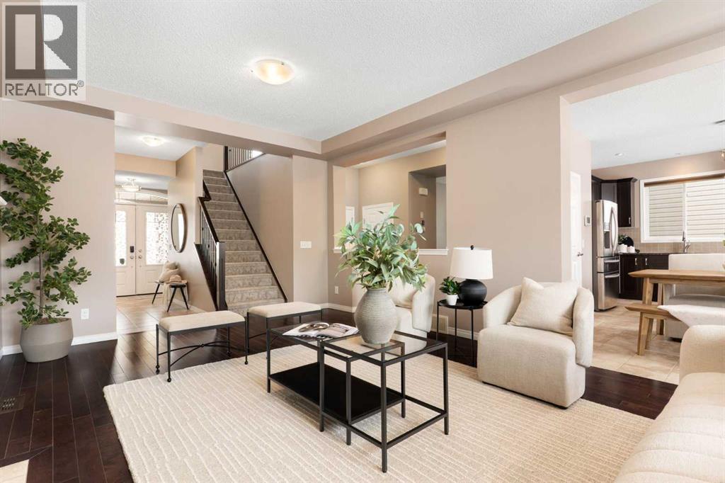 Hello, Gorgeous! Welcome to this well-maintained 3 bedroom, 2.5 bathroom home offering over 2,100 sq ft of above-grade living space in the family-friendly community of Windsong in Airdrie. Ideally located close to schools, parks, walking paths, and nearby amenities including a splash park and skate park, this home is perfectly positioned for growing families.The main floor features an open-concept layout with a bright and spacious living room, functional kitchen with pantry, and a dining area with direct access to the backyard deck. A dedicated main-floor office provides a separate workspace or study area, while the attached double garage adds everyday convenience.Upstairs includes a large bonus room, upper-floor laundry, and three bedrooms, including a spacious primary suite with a walk-in closet and a 5-piece ensuite. Two additional bedrooms and a full 4-piece bathroom complete the upper level.The unfinished basement offers approximately 772 sq ft of space and is ready for future development.Recent upgrades include new paint and carpet, upgraded attic insulation (R60), and updated bathroom vent fans (2025). Additional features include central air conditioning, tankless hot water system, water softener, and Gemstone exterior lighting (2023). The landscaped and fully fenced backyard includes garden boxes and a large deck with sunshades. (id:63190)